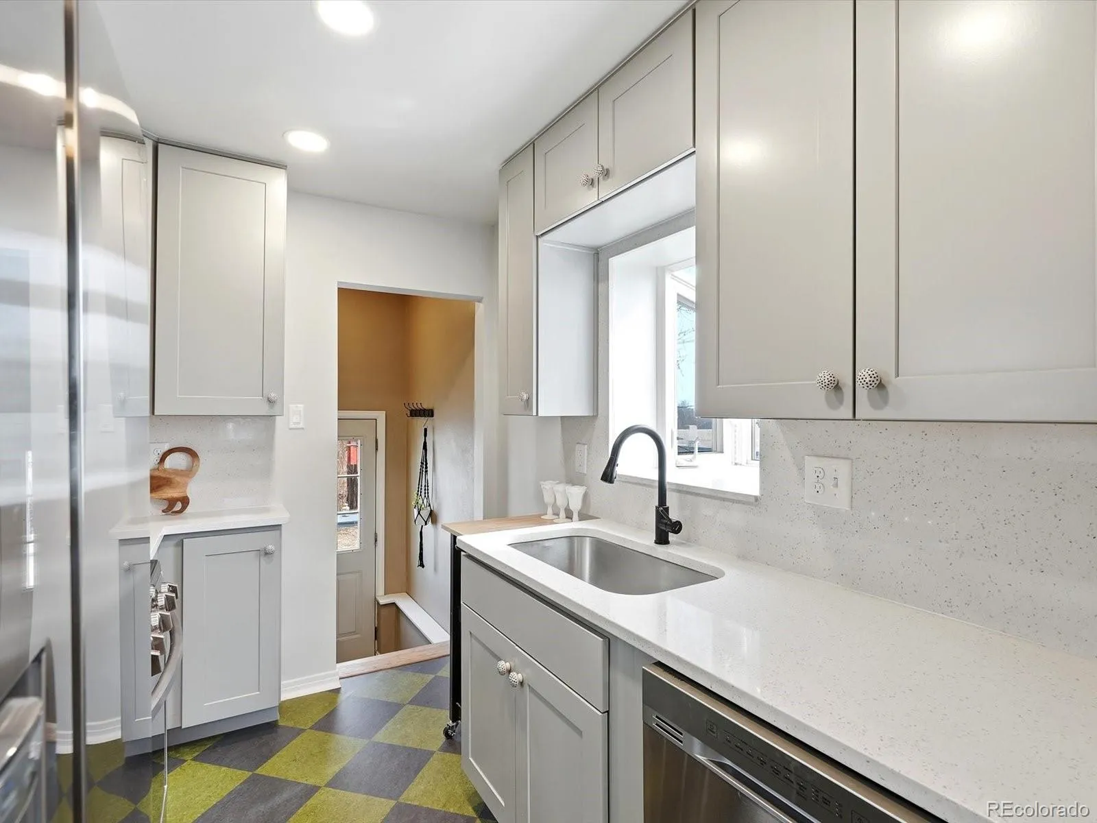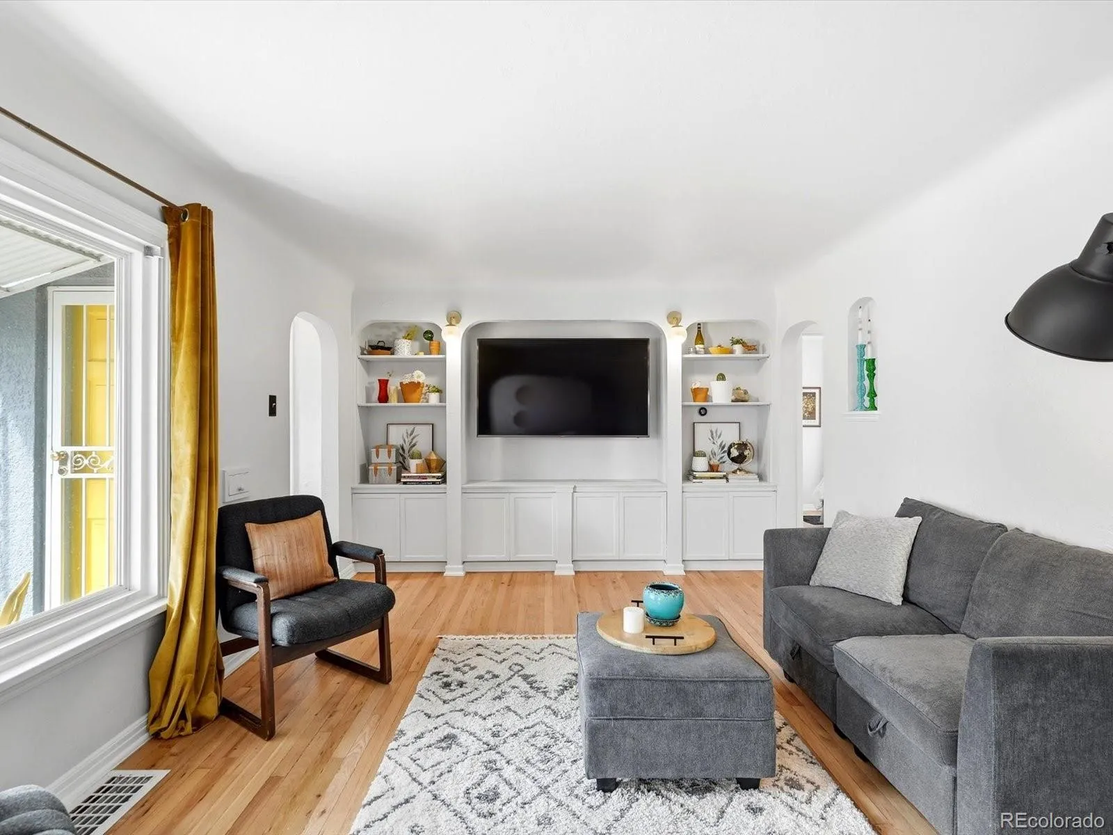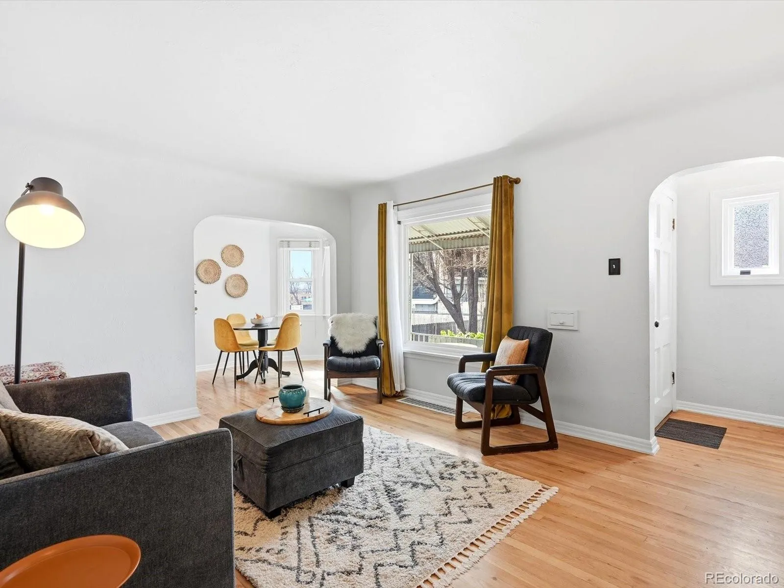 **Our preferred lender is offering a 1% credit that can be applied towards closing costs or a rate buydown—see flyer for details! Additionally, the Seller is offering a 1 year buydown!! AND a brand new A/C is to be installed prior to closing!!** Move-in ready charm in an unbeatable location – just minutes to Sloan’s Lake, Highlands Square, and all the best Edgewater amenities. This 1946 beauty effortlessly blends timeless character with thoughtful updates and flexible living space inside and out. The covered front porch sets a warm, welcoming tone and becomes a true extension of your living space – perfect for slow mornings, evening wine, or catching up with neighbors as the sun sets. Inside, you’ll find a spacious living room with high ceilings, charming archways, original hardwood floors, classic built-ins, and incredible natural light throughout. The cozy dining area flows seamlessly into the freshly remodeled kitchen featuring quartz counters and backsplash, stainless steel appliances, gas stove, picture window above the sink, durable Marmoleum floors, and updated light fixtures. Two main-level bedrooms offer generous closets, including a primary with double closets, plus a full updated bathroom. Downstairs, the finished basement nearly doubles your living space with a massive third non-conforming bedroom, updated 3/4 bath, laundry area with utility sink, and a large storage and utility room. Out back is where this home truly shines: an expansive freshly painted deck, hot tub, built-in fire pit, established garden area, storage shed, and a fully fenced private yard designed for year-round Colorado living. The detached studio includes electricity, insulation, heat AND cooling – ideal for a home office, gym, art studio, or hobby space. An attached one-car garage plus significant off-street driveway parking adds everyday convenience. The property is also zoned for an ADU (Buyer to verify). Character. Flexibility. Location. This one has it all.