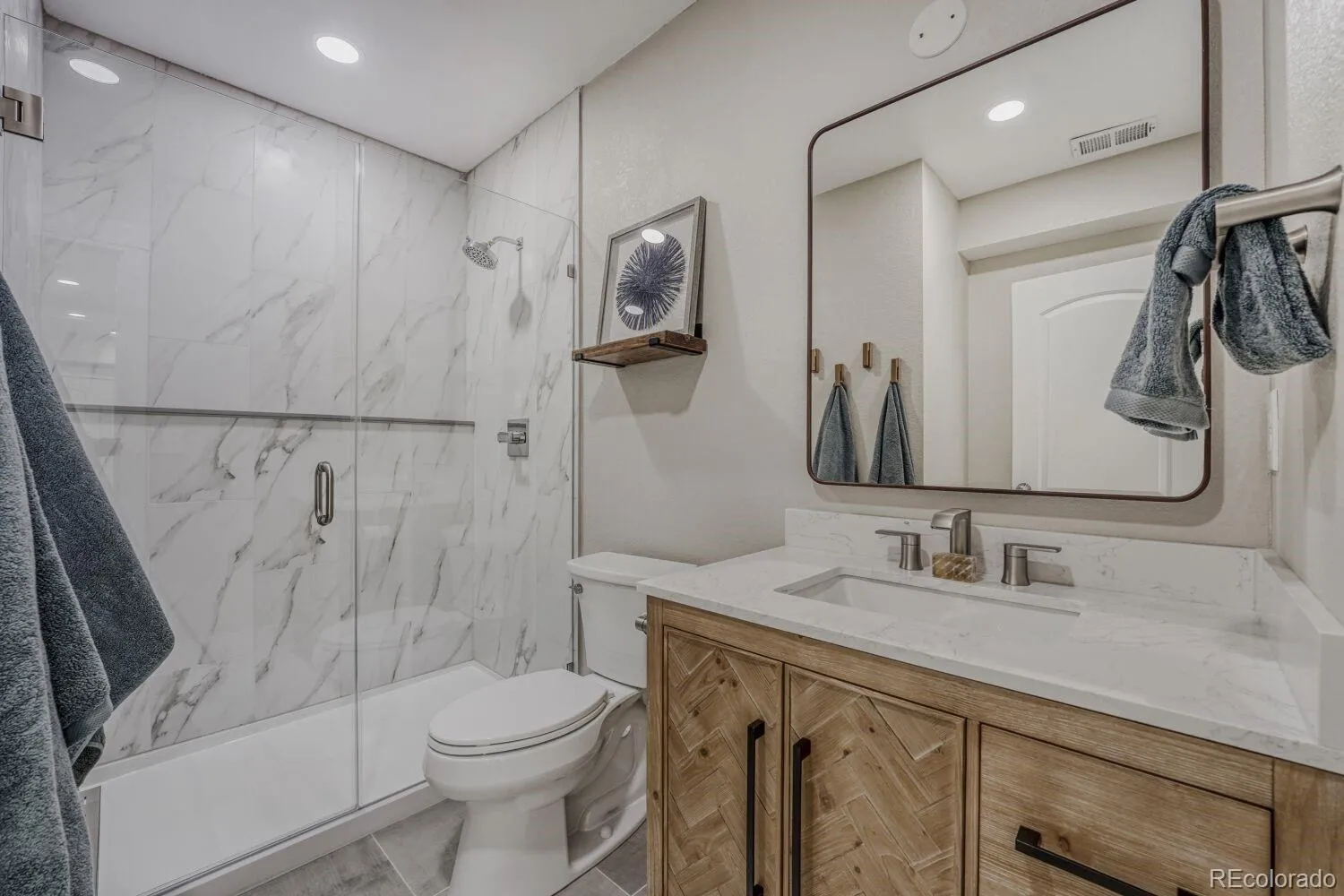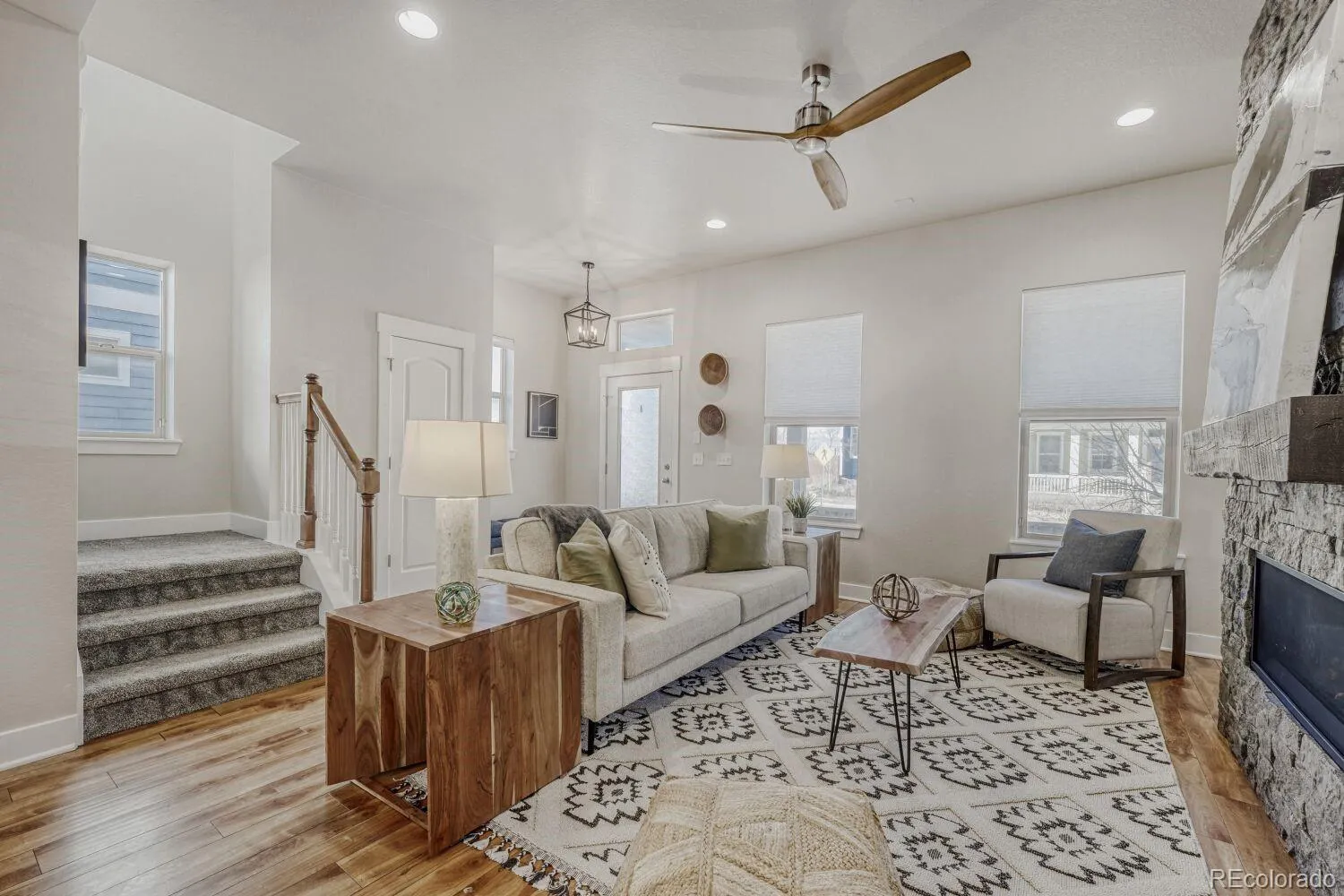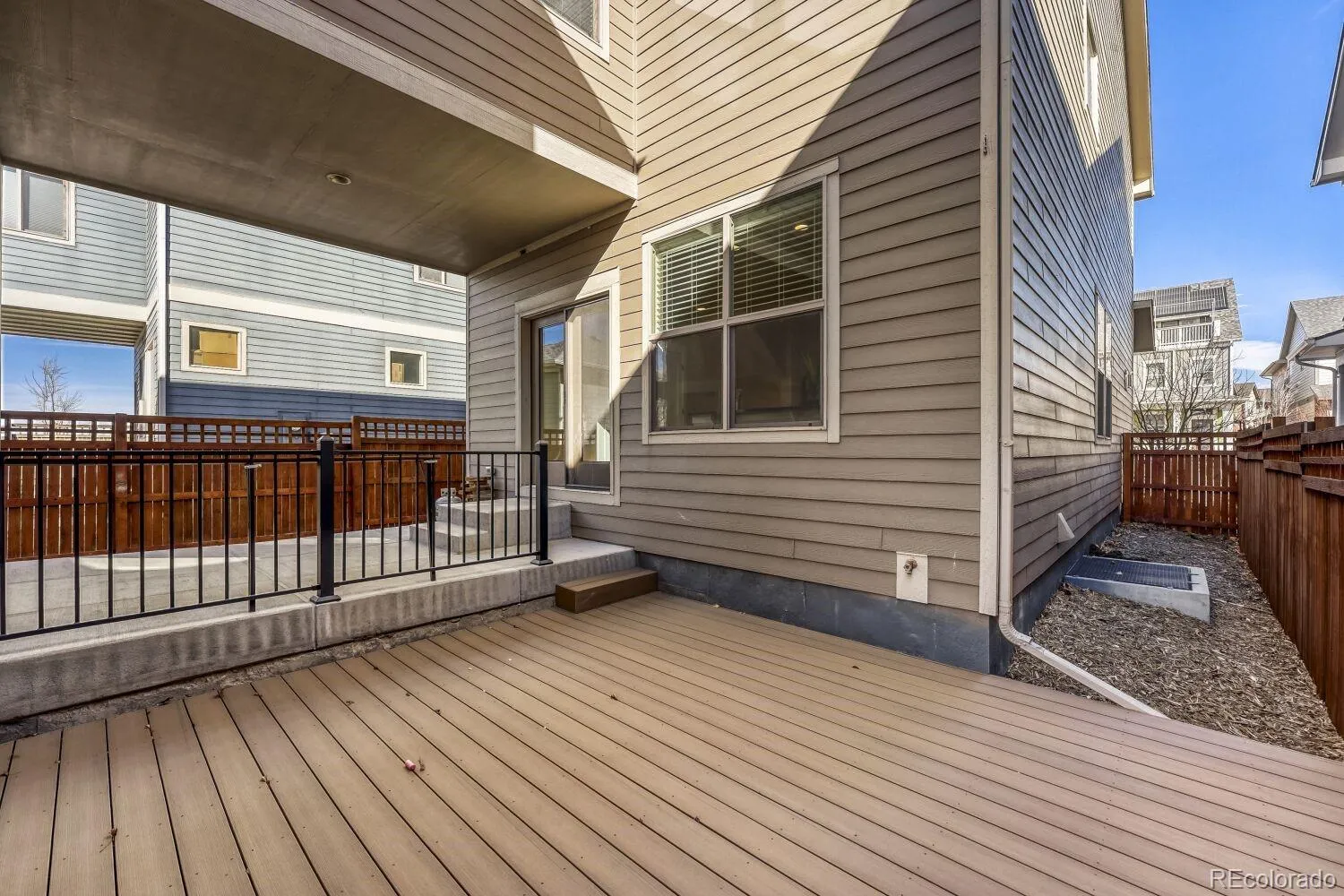 Join the beloved Central Park community with this exquisite, updated two-story home with finished basement. Conveniently located near shops, a Nature Preserve and up the street from a highly-rated elementary school. This updated single-family home offers space and privacy without the endless upkeep. Tall ceilings and large windows makes every space welcoming, while the floorplan makes entertaining and every day life easy. Once inside, you’ll immediately notice the inviting flow between the living, dining, and kitchen spaces—ideal for both quiet nights in and hosting lively gatherings. Recent neutral updates to the interior paint and carpet provide a bright, clean foundation for your personal style. The kitchen’s granite counters and stainless steel appliances make for a timeless space while the peninsula seating and an island provide space for entertaining and food prep. Updated lighting warms the space. The entire main level features solid wood floors. A cozy gas fireplace with a stone-style surround and wood mantel adds both comfort and style. Outside, a recently added low-maintenance deck transforms the backyard into a private haven—perfect for morning coffee, quiet reading or weekend parties without the upkeep and tiring yardwork. Upstairs, the primary suite offers a relaxing retreat with a five-piece bath and large walk-in closet. Two additional bedrooms and a loft provide flexibility for guests, office space or hobbies. The laundry room is upstairs adjacent to the bedrooms for your convenience. The recently finished basement adds room for guests and daily living with a large rec/media room, bedroom and beautifully updated bathroom with shower. With a newer roof and updated fixtures in key spaces, this home blends the confidence of modern updates with the charm of an established area. You’re moments from trails, parks and the A-Line train station—making commutes downtown or to the airport a breeze. This community embodies inclusion, gathering and recreation.