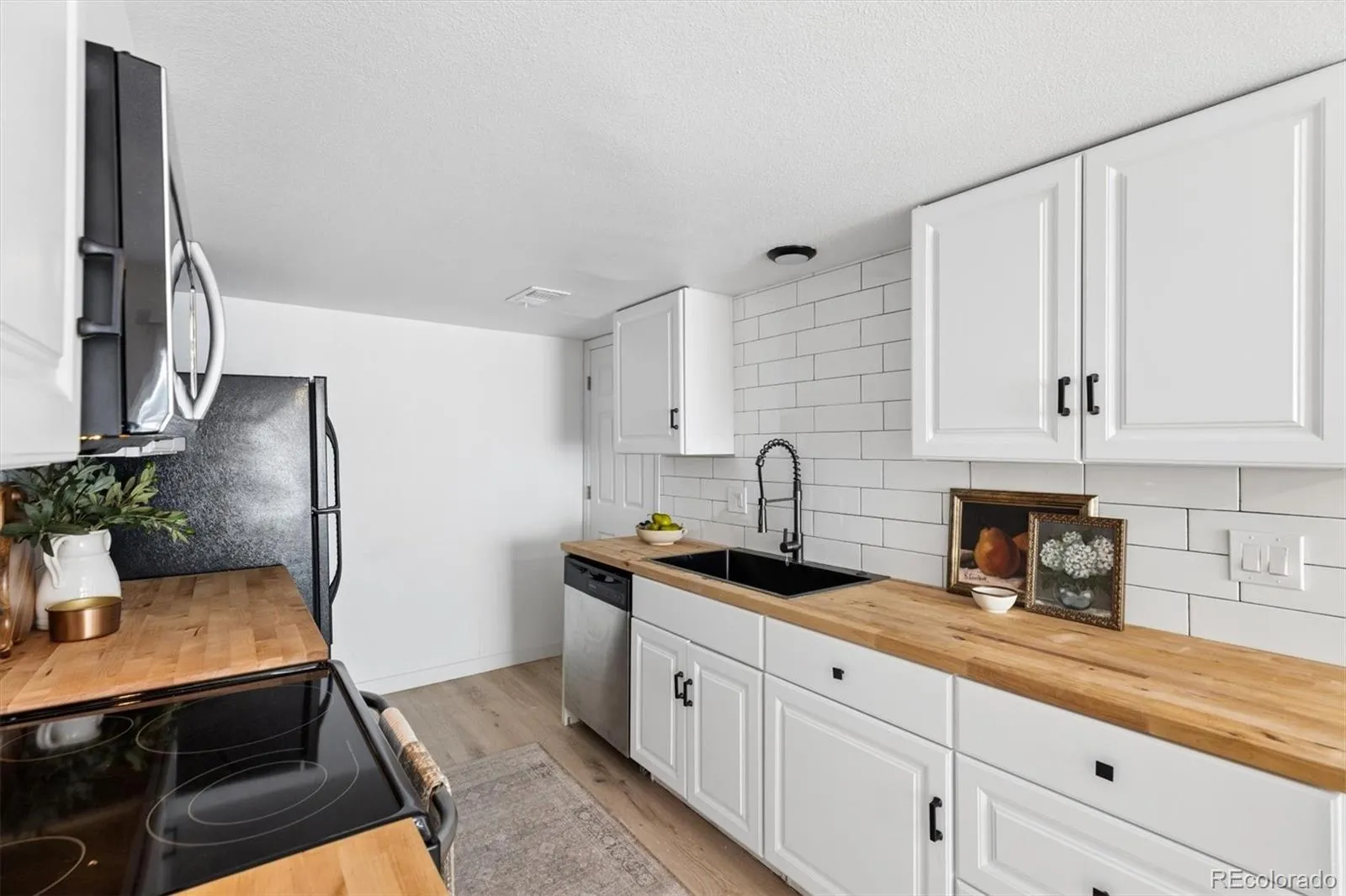 Welcome to 14524 E 13th, a fully remodeled 3 bedroom, 2 bathroom townhouse in Aurora where modern updates and thoughtful design create a move-in ready home. Sunlight fills the updated living room, which flows seamlessly into the dining area and connects to a renovated kitchen featuring sleek cabinetry, block countertops, and new appliances which is perfect for cooking, entertaining, or simply enjoying everyday life. A main-level half bath adds convenience, and a small patio just off the kitchen offers a quiet outdoor spot to get some fresh air.
