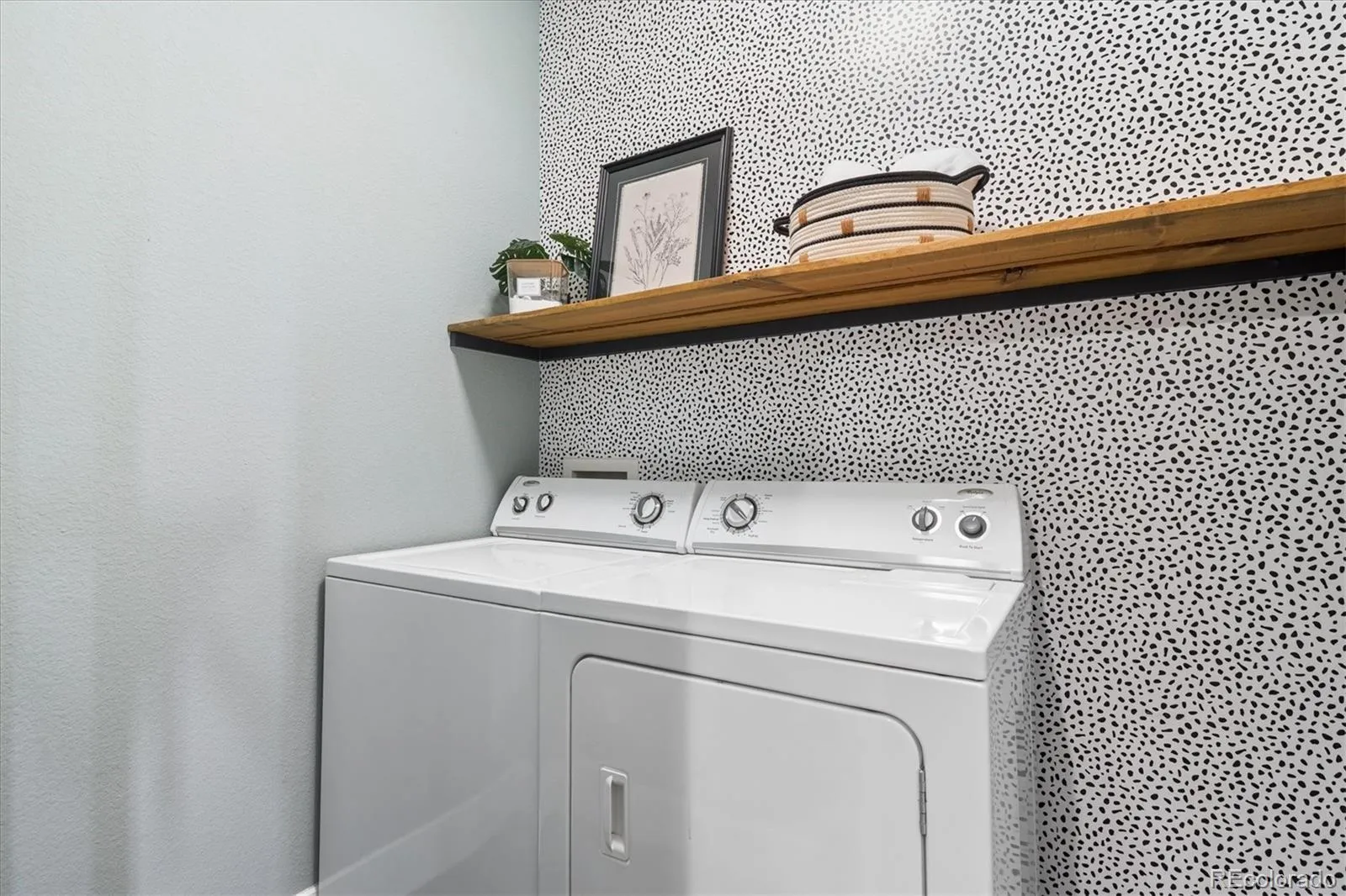 The main level features soaring vaulted ceilings in the primary suite, abundant natural light, and a warm, cozy living room centered around a fireplace and designer accent wall — the perfect place to unwind or entertain. The kitchen is truly the heart of the home, offering an extraordinary amount of counter and cabinet space, stainless steel appliances, and seamless flow into the dining and living areas. A dedicated main-floor laundry room adds everyday convenience.