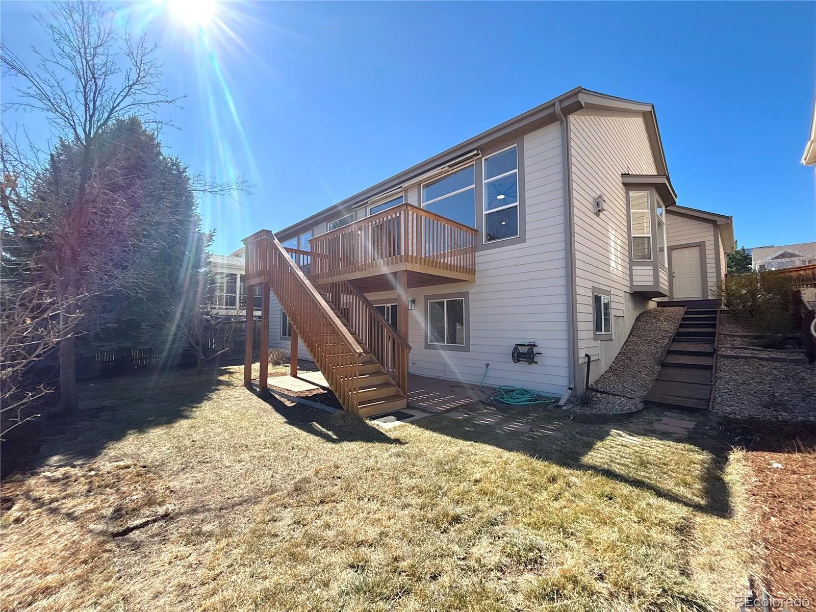 Welcome to this charming single-family home in Highlands Ranch. This updated 4-bedroom, 3-bathroom home offers the perfect blend of modern elegance and comfort. Featuring fresh, vibrant paint and upgraded lighting throughout, this home creates a welcoming atmosphere from the moment you step inside. The gorgeous hardwood flooring flows seamlessly through the main level, while brand-new carpet adds a cozy touch to the Basement. The kitchen is a true highlight with beautiful wood cabinetry, luxurious quartz countertops, and stainless-steel appliances. – perfect for cooking and entertaining. The bathrooms have been meticulously updated with stylish designer tile. Beautiful deck overlooking open space! Located in a fantastic neighborhood. This home is ready for you to move in and start making memories. Don’t miss your chance to see this amazing home – it’s waiting for you!