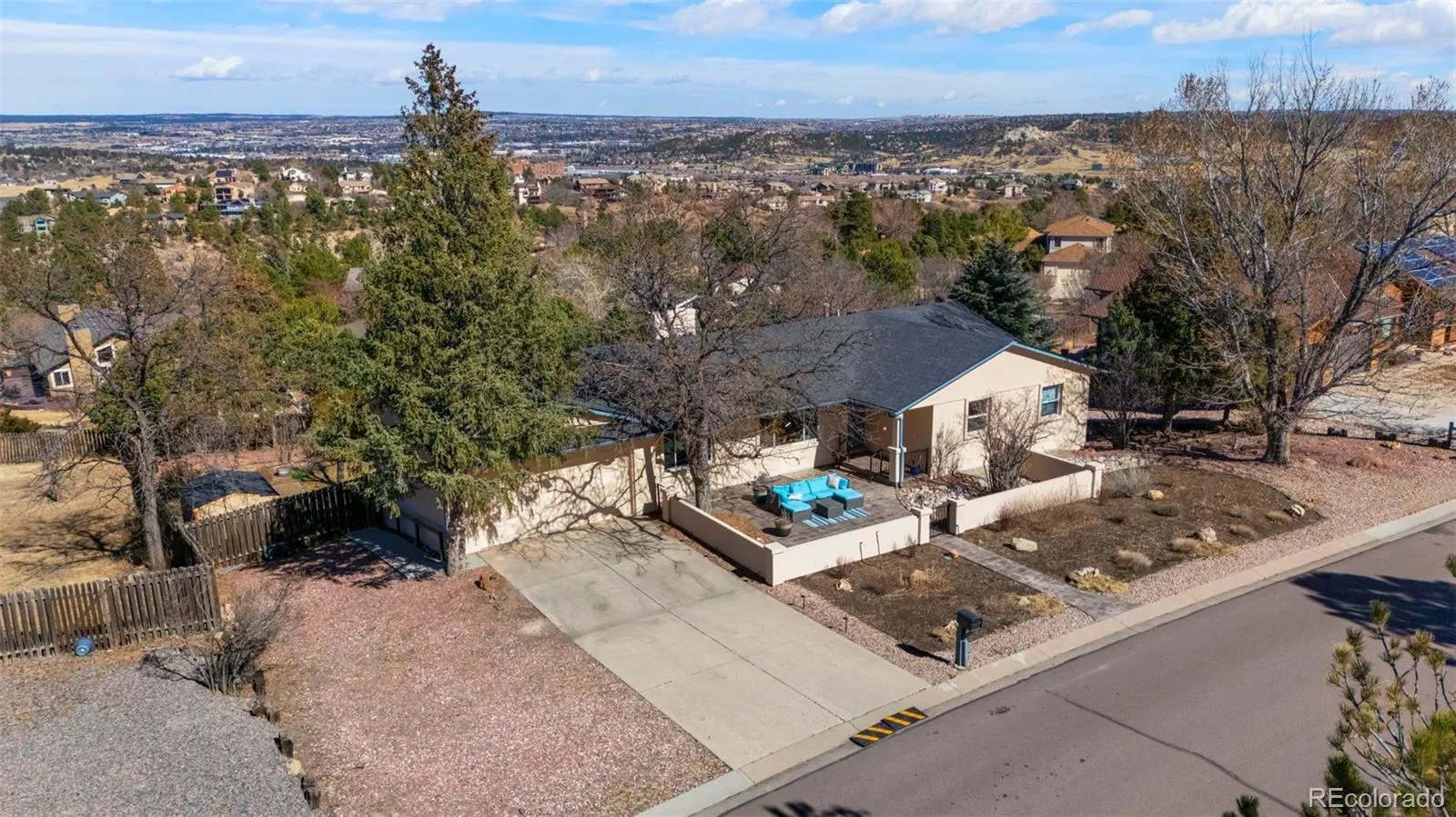 AMAZING VIEWS!!! This gorgeous home has been recently updated, located in Pincecliff and School District 20. Welcome family and friends from the private and gated courtyard. Step inside to the great room that boasts stunning hardwood flooring, soaring vaulted ceilings and unmatched 360 views. Open concept living, dining and kitchen. The kitchen with updated cabinetry, quartz counter tops, gas range, huge island and walk out to NEW deck! There are two main level bedroom suites with attached baths and walk in closets. The finished basement with a sprawling family room that walks out to a fully fenced back yard. There are 2 additional bedrooms in the basement with 3/4 bath and laundry room. This home boasts unmatched views, stunning finishes throughout, beautiful outdoor living spaces with easy access to all that Colorado Springs has to offer.