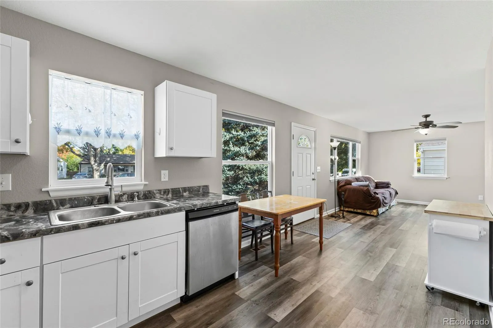 Just minutes from UNC, downtown Greeley, and Hwy 34, this bright and efficient home pairs comfort with Colorado charm-and an assumable FHA loan at just 4.375% makes it even more attractive. Completely rebuilt in 2022, meaning all appliances and major systems are only 3 years old! Native xeriscaping adds year-round beauty with low maintenance, while solar panels and new energy-efficient windows keep utility costs low. Inside, durable LVP flooring connects open living spaces, a stylish kitchen with stainless appliances, and a movable island ready for meal prep or mingling. The fenced backyard features raised garden beds, a covered patio for sunny-day lounging, and a thriving blackberry bush. With high-speed fiber internet, a Honeywell thermostat, and a spacious primary retreat, this home is as practical as it is inviting.