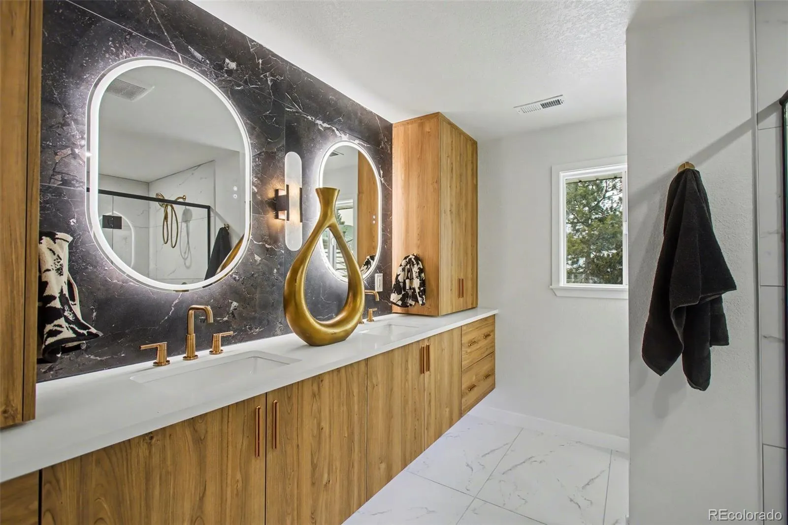 Welcome to this extraordinary home in the highly desirable Southmoor Park neighborhood. Masterfully renovated with upscale finishes, this property blends elegance & modern comfort. Every detail has been thoughtfully designed, from beautifully crafted bathrooms to new windows that enhance the home’s ambiance. Each bathroom features intricate tilework and finely crafted cabinetry with under-cabinet lighting, creating a spa-like retreat. The main level showcases brand-new engineered hardwood floors and a breathtaking gourmet kitchen with a striking waterfall island, quartz countertops, stainless steel appliances, a gas range with a pot filler, a wine fridge, a concealed walk-in pantry, & ample storage. A breakfast nook with built-in seating is perfect for casual meals, while the formal dining room offers an elegant gathering space. The living room features a built-in electric fireplace with a sophisticated tile surround. A well-organized mudroom adds extra storage & a cubby for everyone in the home. The main floor has a bedroom with an attached three-quarter bath, great for guests. A dedicated office & a stylish half bath complete the main level. Upstairs, the primary suite is a true retreat, featuring a fireplace, walk-in closet, an ensuite bathroom with an oversized shower, dual shower heads, dual sinks with ample storage, & a mirror with built-in lighting & a defogger. A laundry room with a utility sink & cabinetry adds functionality to the upper level. Each of the two additional bedrooms has its own beautifully appointed en-suite bathroom. The basement is designed for entertainment, with a bar featuring a refrigerator, open shelving, & cabinetry. The open layout allows space for a game area & media room. Two additional bedrooms share a full bathroom, while a separate half bath & second laundry room provide extra convenience. The backyard is a private oasis with a deck & a custom concrete path leading to a fire pit area. A rare chance to own this custom luxury home.