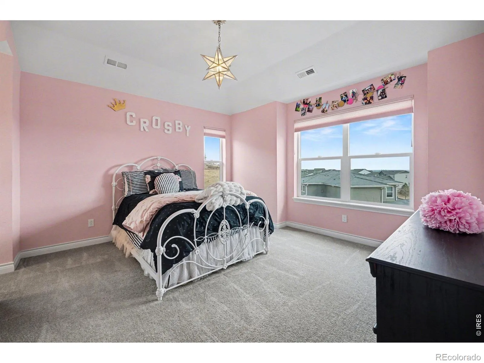 This exceptional residence in Skyview at Candelas delivers elevated Colorado luxury at every turn. Ultra-rare 5-car tandem garage. Panoramic mountain & city views. Former Remington model with extensive designer upgrades. Rich hardwood floors, custom built-ins, & expansive windows frame sweeping views across the main level. At the heart of the home, the chef’s kitchen is designed for both daily living & upscale entertaining, featuring full-extension dovetail Tharp cabinetry, quartz countertops, stainless steel appliances, 5-burner gas range, instant hot water, statement backsplash, & generous walk-in pantry. The main level features a vaulted family room with fireplace flowing seamlessly into formal & casual dining spaces with views, complemented by a main-level office or guest suite, powder bath, mudroom, & expansive custom storage. A 15′ x 8′ infinity sliding door opens to the covered deck, creating true indoor-outdoor living. Upstairs, 4 bedrooms include a luxurious primary retreat positioned to capture panoramic views, complete with a spa-inspired 5-piece bath & oversized walk-in closet. Secondary bedrooms feature attached baths & walk-in closets, while an expansive laundry room adds convenience. The finished walk-out basement is built for entertaining, anchored by an 8-seat custom wet bar with bronze sink, leathered granite, built-in ice maker, dishwasher, & a striking steampunk liquor display. A guest suite with en-suite bath, spacious living area with custom shelving & fireplace, & covered patio complete the space. Additional highlights include: custom window coverings, custom and mature landscaping, additional unfinished space for workout room or storage, expanded driveway, and located within window view of local K-8 school bus stop. Generous corner lot that sides and fronts to open space plus access to trails and top commuter routes, this home offers a rare combination of panoramic views, model home level enhancements, and luxury finishes in Northwest Arvada.