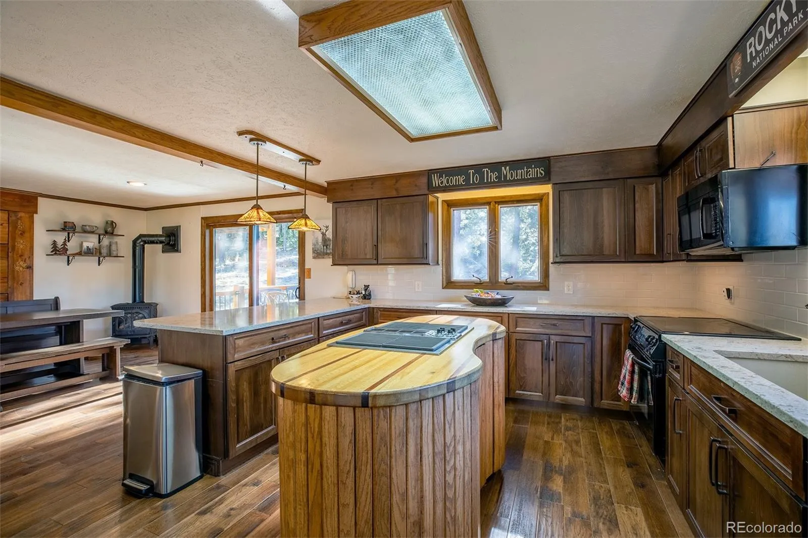 This 4-bedroom, 5-bath home offers over 4,000 finished square feet and multiple decks perfectly positioned to soak in sweeping mountain scenery and fresh alpine air. Inside, you’ll find warm custom woodwork, a classic wood-burning fireplace for snowy evenings, and multiple gas stoves that make the entire home feel like a welcoming mountain lodge.