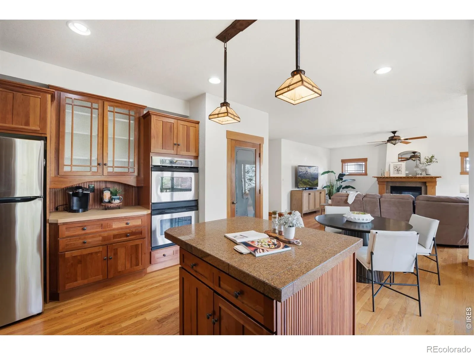 **Back on market-no fault of the home. Buyer unable to secure financing.** Step onto the welcoming front porch and let the charm of this Craftsman style home nestled in Southwest Fort Collins greet you. Inside, the timeless Craftsman design of this former model home creates an inviting atmosphere. The front door opens to a spacious and versatile floorplan, featuring a flexible front room that works beautifully as a sitting area or private study. The main floor showcases gleaming hardwood floors throughout. The kitchen is a standout, complete with a large island, gas cooktop, double ovens, and abundant counter space. Upstairs you’ll find four bedrooms along with the convenience of an upper-level laundry room. The luxurious primary bedroom offers a 5-piece bath, and large walk-in closet. The finished garden-level basement expands the home’s livability with an additional bedroom, dedicated bar area, media/projector room, and generous storage. Outdoor living is just as appealing, backing to greenbelt with a fully fenced backyard and an east-facing covered deck, perfect for morning coffee, entertaining, pets, or relaxing on warm summer evenings. Recent upgrades, including a newer roof, furnace, exterior paint, and sliding glass door, provide added comfort and peace of mind. Tucked away on a quiet cul-de-sac on Fort Collins’ desirable west side, Gates at Woodridge is known for its mature trees, spacious homes, and convenient access to schools, parks, trails, shopping, and the foothills, an ideal location for enjoying the Colorado lifestyle.