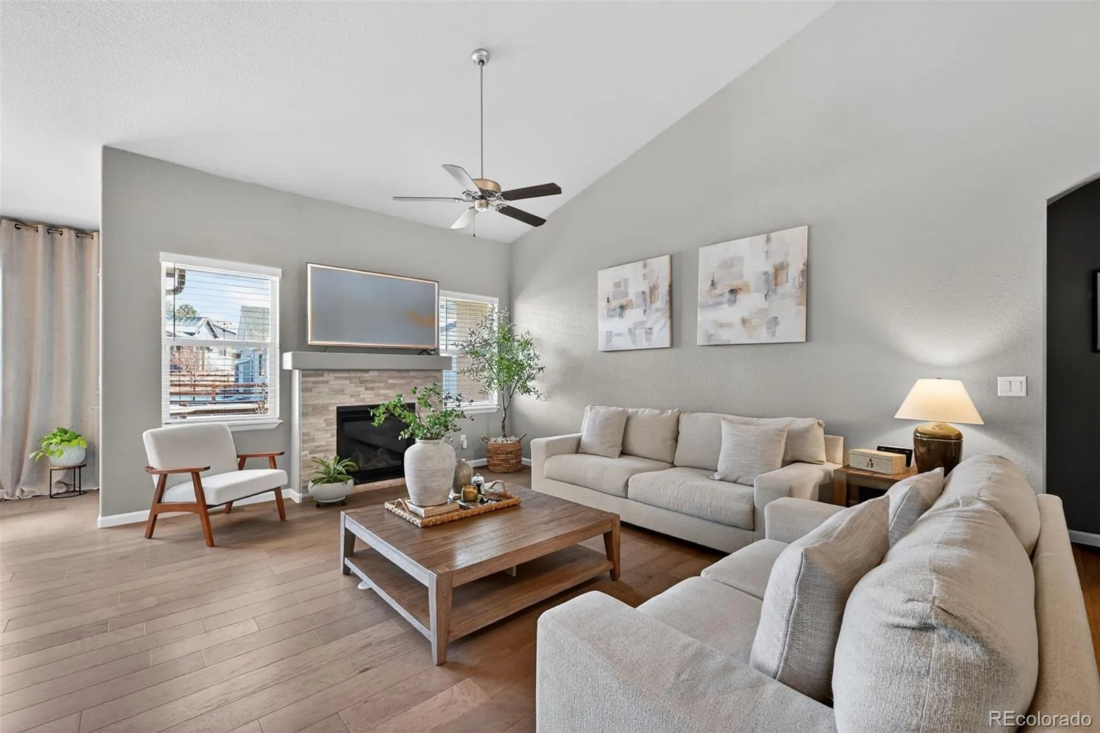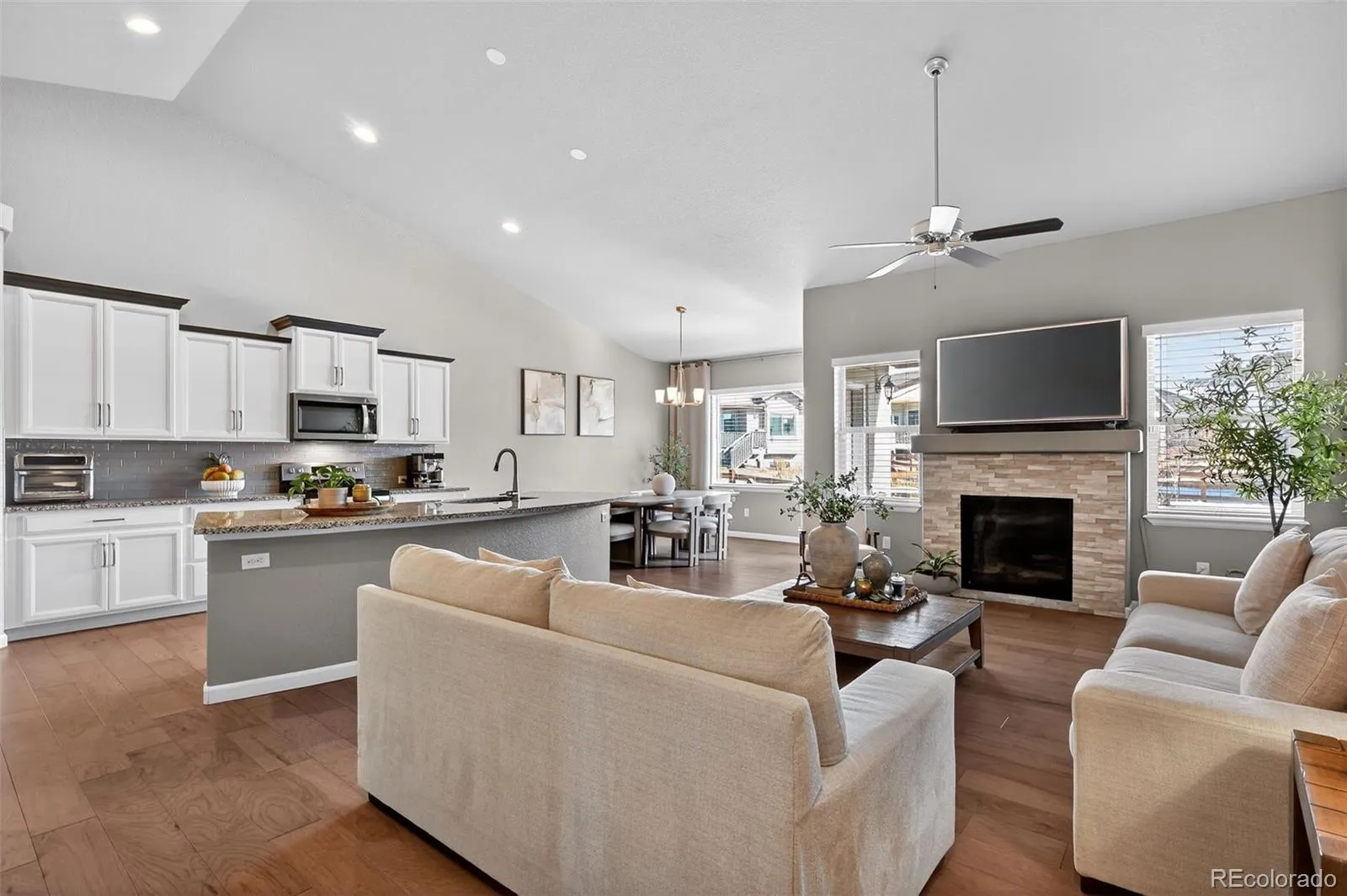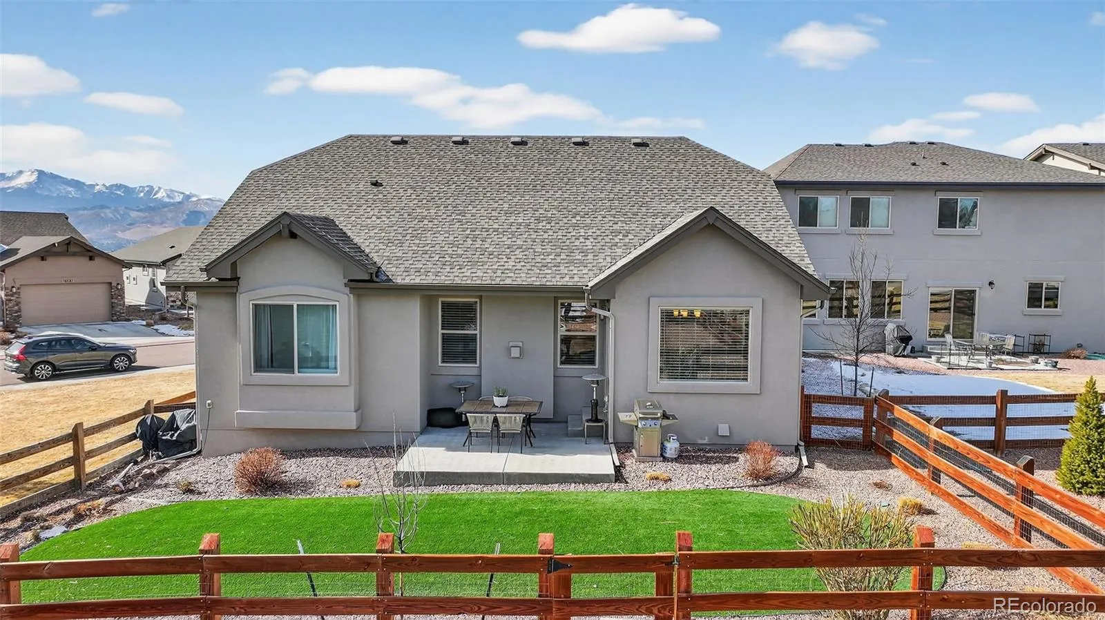 Immaculate and elegantly appointed, this modern ranch-style residence is nestled within one of North Colorado Springs’ most sought-after communities. Offering 4 bedrooms, 3 bathrooms, and 3,337 square feet of beautifully curated living space, this home delivers a refined balance of sophistication, comfort, and effortless living. The main level showcases rich hardwood flooring, beautiful kitchen and bathroom granite countertops, stainless steel appliances, and a light-filled open-concept design ideal for both intimate gatherings and upscale entertaining. Thoughtful architectural flow and quality finishes create a timeless yet contemporary atmosphere throughout. The finished basement extends the living experience with two generously sized bedrooms, a full bath, and an expansive recreation area—perfect for hosting guests, creating a private retreat, or designing a custom media or fitness space. Exceptional storage options enhance both function and organization. Outside, enjoy the open space adjacent to the home, a long driveway for added convenience, and a meticulously maintained exterior enhanced by artificial turf in the backyard for year-round beauty. HOA services include front and back yard maintenance, snow removal, and gated community entrance—allowing for truly low-maintenance luxury living. Ideally located just minutes to I-25, premier shopping, dining, and entertainment this exceptional home offers an elevated lifestyle in a prime North Colorado Springs setting.