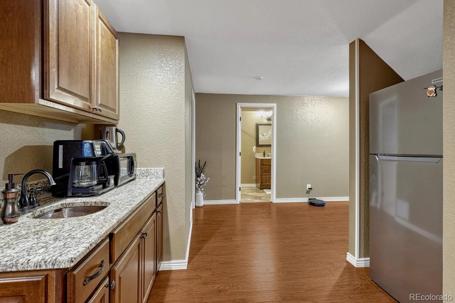 This beautiful cul-de-sac home is located in the Southridge Crossing neighborhood, with easy access to shopping, restaurants, walking trails, parks and all that Highlands Ranch has to offer! When you walk in, you’ll immediately notice the high ceilings, refinished wood floors and grand staircase. The updated, eat-in kitchen has an island, pantry, stainless steel appliances and granite countertops. It’s open to the family room, with a cozy gas fireplace and access to the patio and private, landscaped backyard. An office, living room, dining room with built-in cabinetry, powder room and large laundry room complete the main floor. Upstairs, you’ll find a spacious primary suite with sitting area, vaulted ceilings and an updated en suite bathroom with double vanity, large shower and separate tub. There are 3 secondary bedrooms and a full hallway bathroom. The full, finished basement has a large rec space with kitchenette, an additional guest bedroom and bathroom. Lots of windows make this home bright. Plenty of storage. Built-in speaker system. 3-car garage with shelving and cabinets. Curb appeal with covered front porch. Fenced in backyard with large patio and built-in raised garden planters so you enjoy our beautiful Colorado weather. Highly sought after Douglas County schools. Access to all 4 Highlands Ranch Rec Centers, which includes pools, pickleball, fitness centers, courts, fields and much, much more!