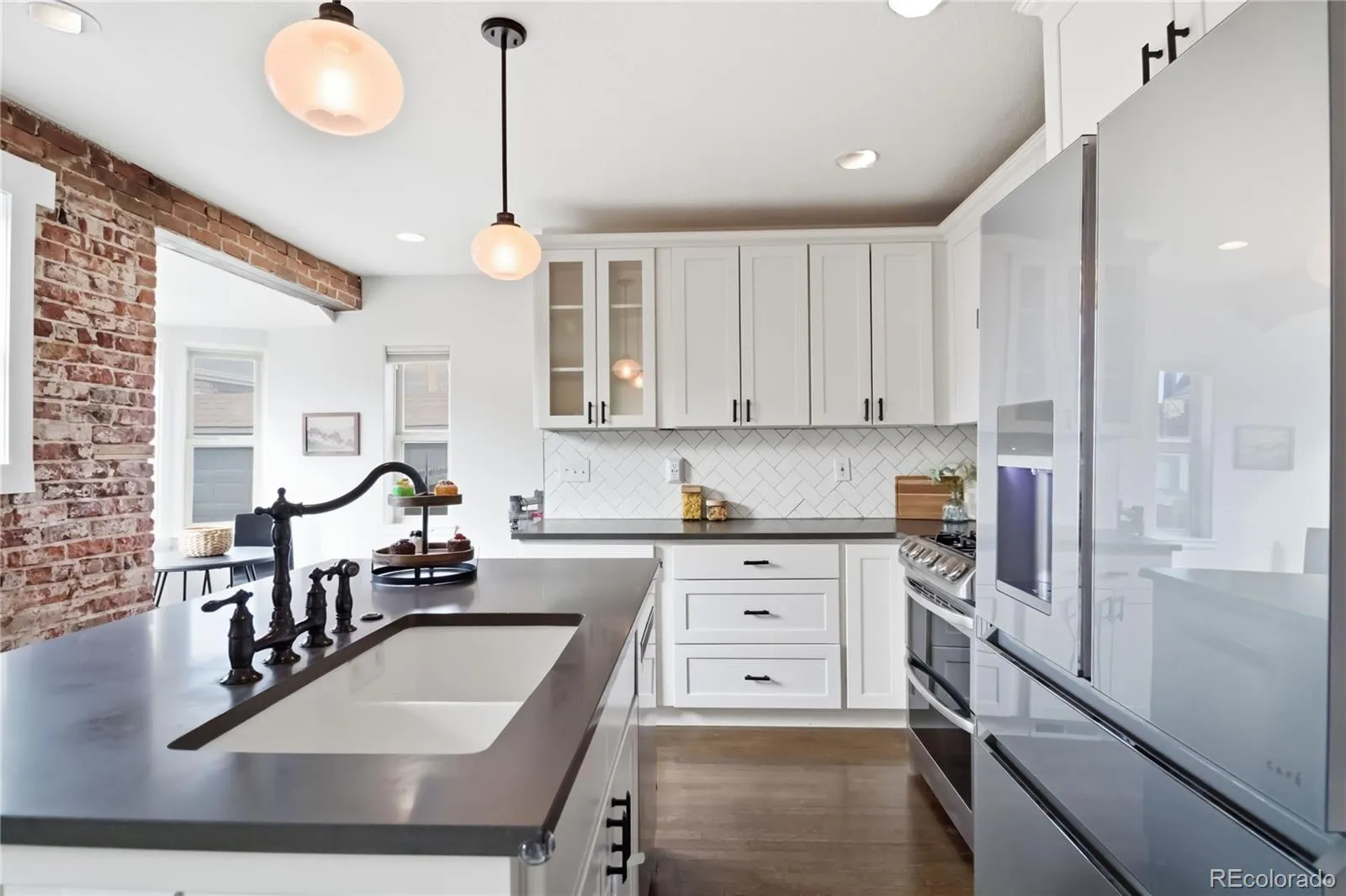 Classic Park Hill Tudor with the character intact and the updates already done. Arched doorways, crown molding, and hardwood floors set the tone on the main level, while a fully remodeled kitchen brings it into the present — white shaker cabinets, quartz counters, herringbone tile backsplash, stainless appliances, center island, and an exposed brick accent wall that earns every compliment. The adjacent dining room opens to the patio through a sliding glass door, and the living room anchors the front of the home with a gas fireplace. Two main floor bedrooms share a remodeled hall bath with double sinks; one bedroom includes a murphy bed, making it an instant guest room and office in one. The fully finished basement adds a generous 1,241 sq ft of living space. A large family room centered on a wood-burning fireplace gives the lower level its own identity, and the bonus room works equally well as a gym, workshop, or dedicated storage. Two additional non-conforming bedrooms, a remodeled ¾ bath, and laundry with washer and dryer included round it out. Outside, a private fenced yard with deck, patio, and hot tub creates a genuine outdoor living space from day one — and the detached 2-car garage keeps everything organized. Central air conditioning and forced air heat keep the home comfortable in every season. All appliances are included — refrigerator, dishwasher, oven, washer, and dryer — so there’s nothing to figure out. The location puts City Park, the Denver Zoo, the Museum of Nature & Science, the City Park Golf Course, and summer evenings at City Park Jazz all within biking distance. Colfax Avenue dining is nearby, and downtown Denver is about ten minutes by car. For buyers who want this much house in this neighborhood, this home is worth a close look. Schedule your showing today!