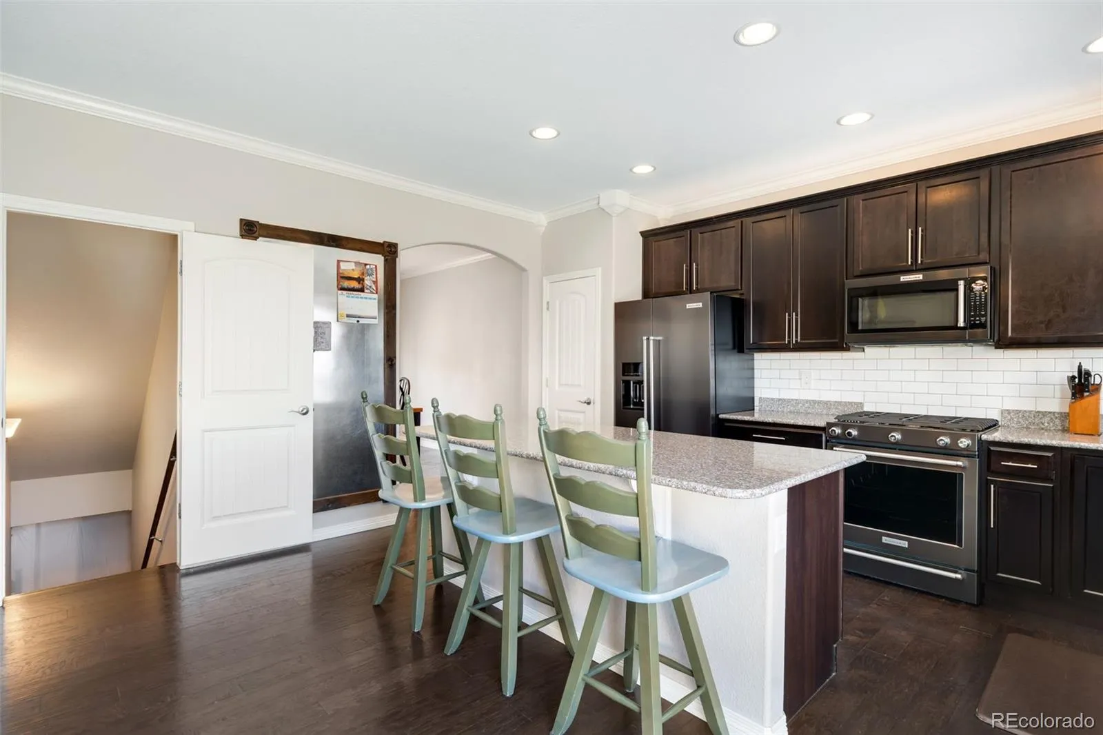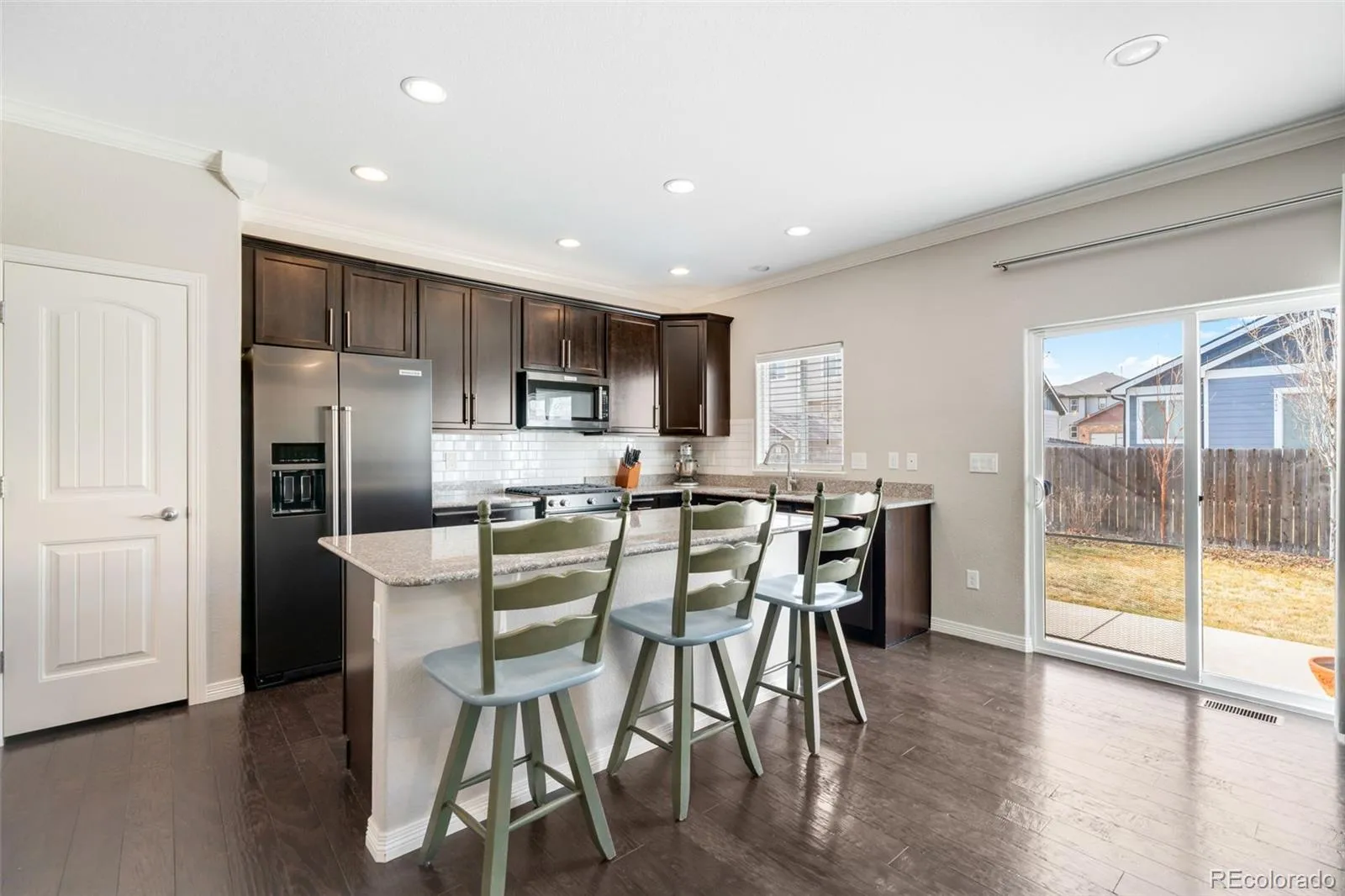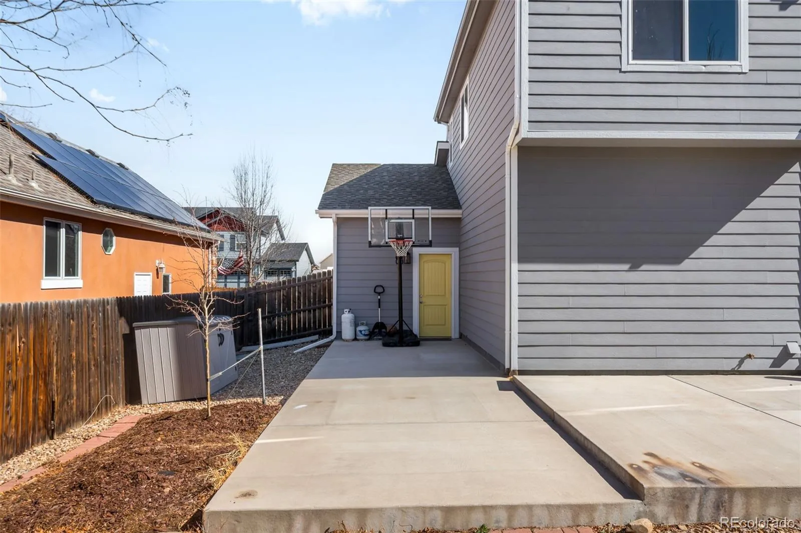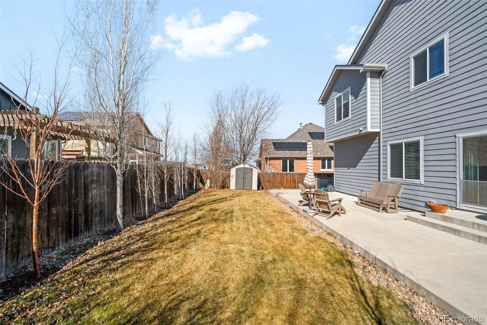 Charming 3-bedroom, 3-bath home featuring an incredible oversized 4-car garage that offers exceptional space for vehicles, storage, hobbies, and projects. As you enter, you’re welcomed by beautiful hardwood floors and an open floor plan with well-defined living spaces that feel both spacious and inviting. The entry flows seamlessly into the formal dining area, creating an ideal layout for gathering and entertaining. The gourmet kitchen is a chef’s dream, showcasing upgraded matte black KitchenAid stainless steel appliances, rich espresso cabinetry, granite countertops, a large island with bar seating, and abundant natural light — perfect for both everyday living and hosting. The cozy living room provides a comfortable place to relax, and a convenient powder bath completes the main level. Upstairs, the spacious primary suite offers a luxurious 5-piece ensuite bath and a walk-in closet. Two additional bedrooms, a full bathroom, laundry room, and a versatile loft area complete the upper level. The enclosed loft provides excellent flexibility for a home office, media space, or additional living area. The unfinished basement is filled with natural light and offers excellent potential for future expansion, recreation space, hobbies, or additional storage. Step outside to a truly impressive backyard oasis designed for relaxation and enjoyment, featuring extensive patio space, a storage shed, and plenty of room for entertaining. With easy access to local parks and recreational amenities, this home offers the perfect balance of comfort and convenience — and best of all, no HOA, low Weld County taxes, and no metro district. Enjoy close proximity to Carbon Valley Regional Library, Frederick Skate Park, Milavec Lake, and Bella Rosa Golf Course.