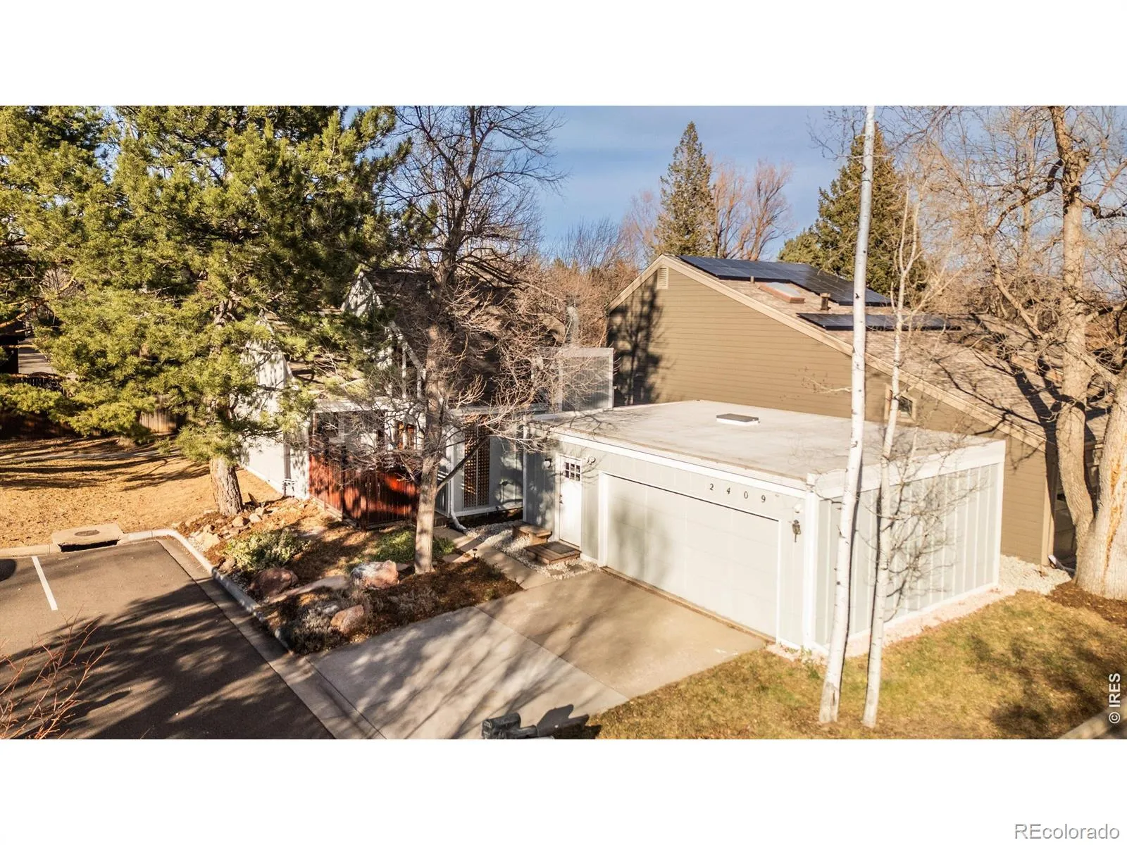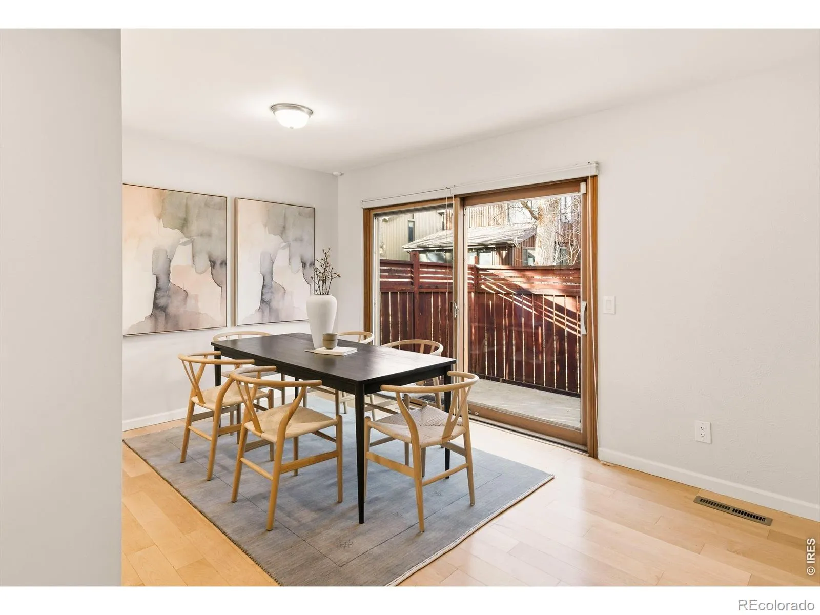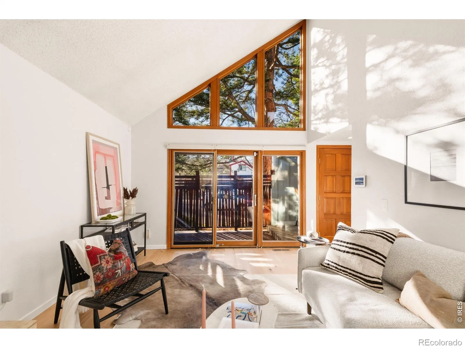 Discover a charming, recently refreshed 2-bedroom residence offering exceptional flexibility with a versatile loft and detached studio, nestled in a quaint + tranquil enclave bordering Parkside Park, just steps from 28th and Iris. This serene retreat offers the perfect blend of convenience and quiet, tucked away on a private cul-de-sac within the community while being walkable to an array of local restaurants and amenities, with Pearl Street + scenic hiking trails just moments away. Parkside Park is one of Boulder’s loveliest, boasting a playground, shaded picnic areas, inviting walking paths with mountain views among towering trees and a seasonal stream, providing a place of respite just steps from your door. Enter through a private courtyard entry into an inviting interior where maple floors and vaulted ceilings create an airy yet intimate feel. The freshly painted living room features a pellet stove and direct deck/yard access for seamless indoor-outdoor living; the outdoor space here is enhanced with complete privacy. The renovated kitchen delights with alder cabinets, quartz countertops, and a premium dual fuel Jenn-Aire range, flowing into a dining area opening to a private patio-perfect for al fresco meals. The main level includes 2 bedrooms, with the primary suite offering a generous walk-in closet and direct access to a beautifully updated bathroom with Kohler and Delta fixtures, travertine tile, a deep soaking tub, and private fenced backyard entry. Upstairs, the versatile loft-style area and a freshly renovated (2025) 3/4 bathroom add convenience and functionality. A standout feature is the detached studio featuring American Clay walls, a waiting area, and 1/2 bath – ideal for a home office, guest suite, or creative space. This thoughtfully updated home combines modern elegance with timeless warmth and charm in one of Boulder’s most sought-after locations.