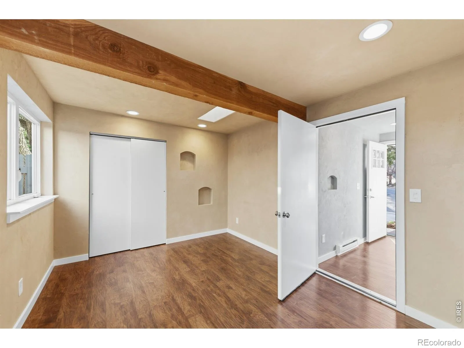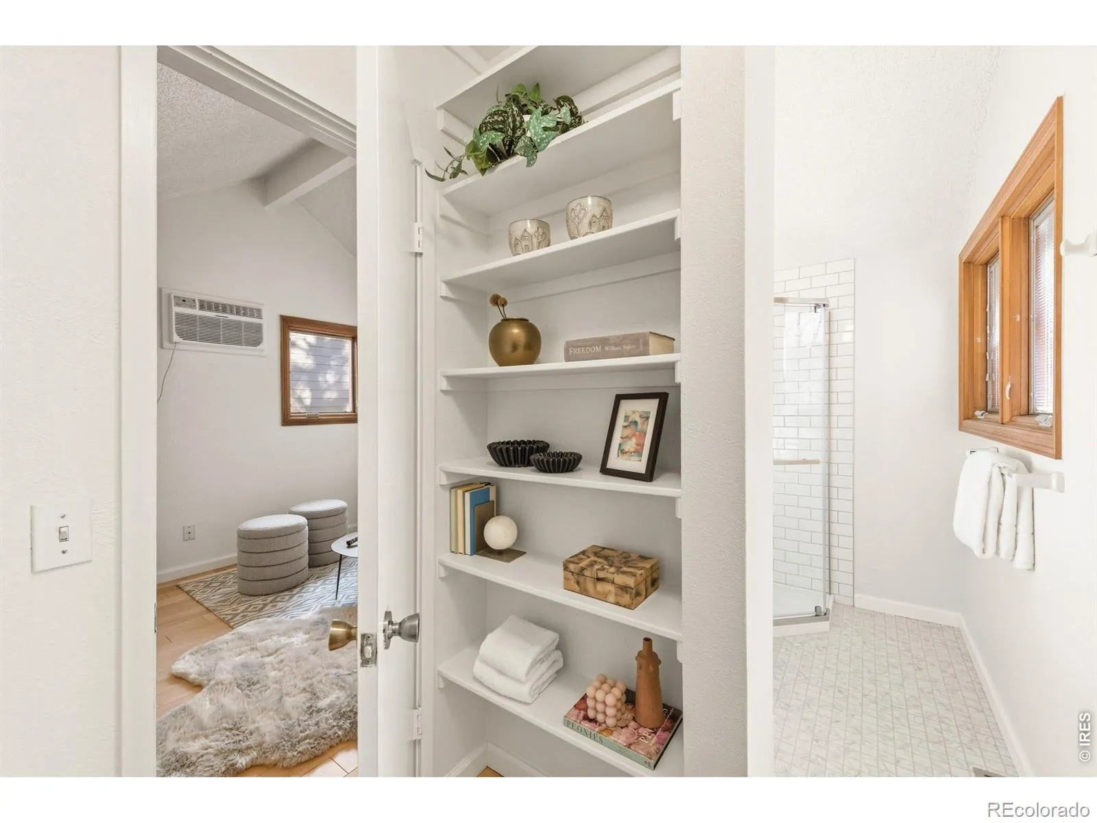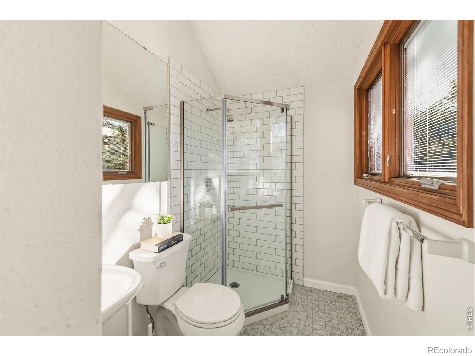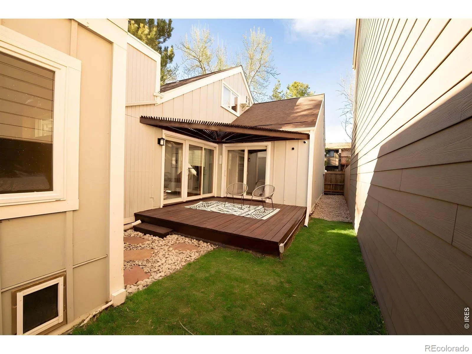Discover a charming, recently refreshed 2-bedroom residence offering exceptional flexibility with a versatile loft and detached studio, nestled in a quaint + tranquil enclave bordering Parkside Park, just steps from 28th and Iris. This serene retreat offers the perfect blend of convenience and quiet, tucked away on a private cul-de-sac within the community while being walkable to an array of local restaurants and amenities, with Pearl Street + scenic hiking trails just moments away. Parkside Park is one of Boulder’s loveliest, boasting a playground, shaded picnic areas, inviting walking paths with mountain views among towering trees and a seasonal stream, providing a place of respite just steps from your door. Enter through a private courtyard entry into an inviting interior where maple floors and vaulted ceilings create an airy yet intimate feel. The freshly painted living room features a pellet stove and direct deck/yard access for seamless indoor-outdoor living; the outdoor space here is enhanced with complete privacy. The renovated kitchen delights with alder cabinets, quartz countertops, and a premium dual fuel Jenn-Aire range, flowing into a dining area opening to a private patio-perfect for al fresco meals. The main level includes 2 bedrooms, with the primary suite offering a generous walk-in closet and direct access to a beautifully updated bathroom with Kohler and Delta fixtures, travertine tile, a deep soaking tub, and private fenced backyard entry. Upstairs, the versatile loft-style area and a freshly renovated (2025) 3/4 bathroom add convenience and functionality. A standout feature is the detached studio featuring American Clay walls, a waiting area, and 1/2 bath – ideal for a home office, guest suite, or creative space. This thoughtfully updated home combines modern elegance with timeless warmth and charm in one of Boulder’s most sought-after locations.