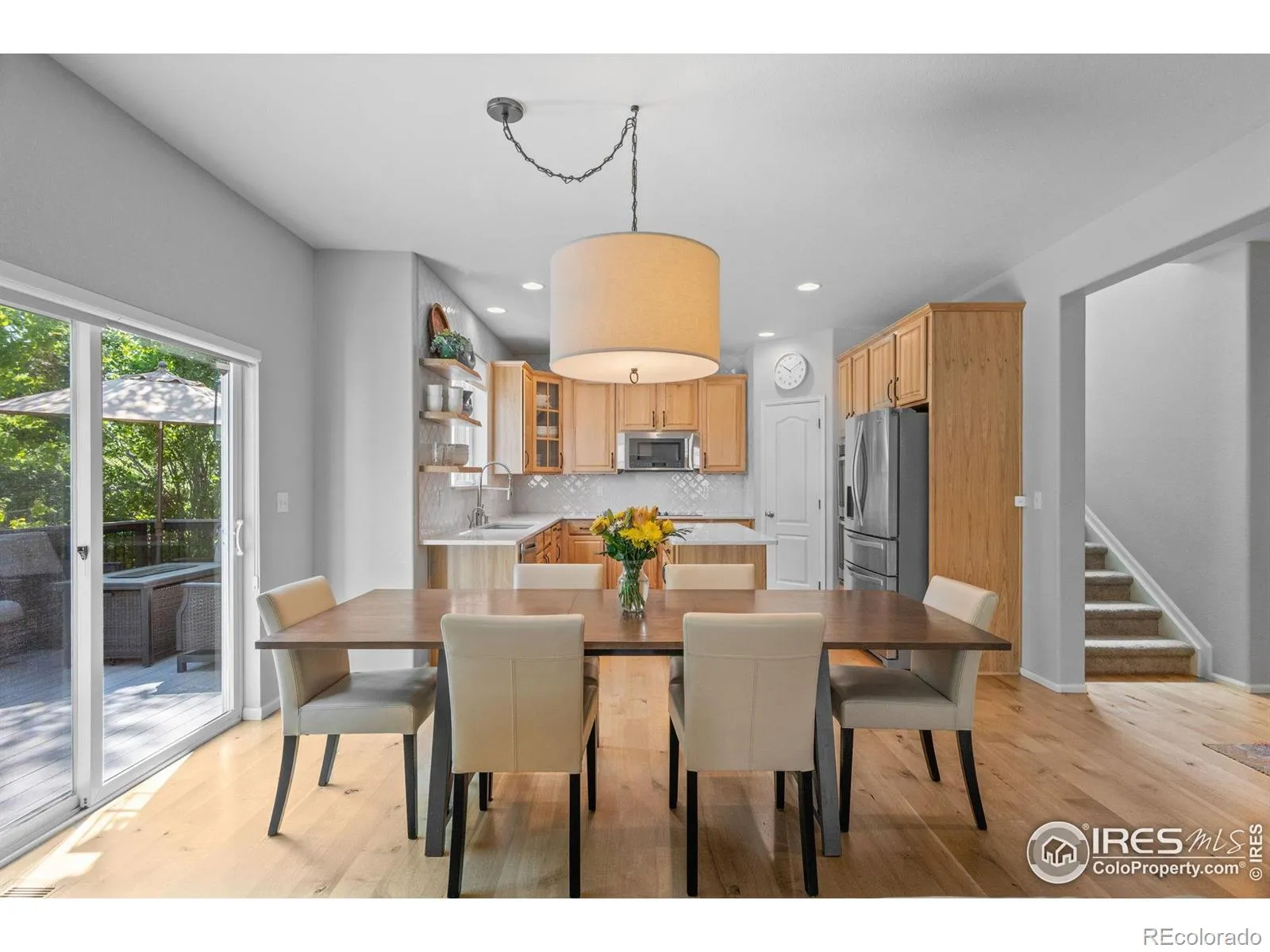 This lovingly maintained 4 bedroom, 4 bathroom Canyon Creek home features an updated kitchen with double wall ovens and beautiful moroccan style backsplash, white oak hardwood floors that span throughout the entire main level, a dedicated home office, EV charger in the two-car garage, durable concrete tile roof, low HOA, and no metro tax. Upstairs you’ll find the primary suite with custom walk-in closet and 5-piece bath, 2 additional bedrooms which share a full bathroom, and the laundry room conveniently located adjacent to the bedrooms. The finished basement offers a rec area for playing or watching TV, a 4th bedroom and additional full bathroom, along with a sweet creative space tucked away under the stairs. Step outside to the ultra private backyard retreat complete with a large Trex deck that’s perfect for entertaining, relaxing or enjoying quiet evenings. The home is situated less than a block from the neighborhood park and playground, and offers easy access to Thomas Reservoir, along with a number of nearby walking and biking trails connecting the entire Town of Erie. Pride of ownership is evident in this warm and inviting move-in ready home.