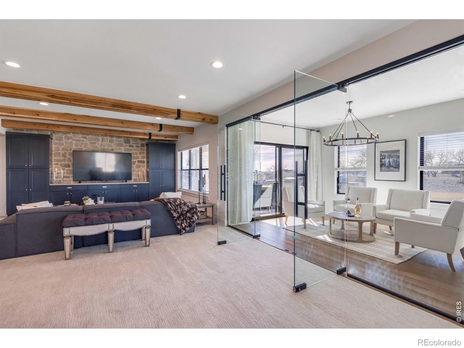 Experience contemporary farmhouse living with Colorado charm in the premier gated Eagle View Farms at Seeley Lake. Situated on just under 2 acres with expansive mountain views, this custom home offers flexible living spaces and high-end outdoor amenities. The Main level offers 2 bedrooms, a private office, a flex room, and 3 full baths. The finished walkout basement adds 2 additional bedrooms, 2 baths, a large rec room, game room, wine room, and wet bar – ideal for guests or entertaining. Outdoor living is exceptional: a spacious covered deck plus a covered lower patio featuring a custom-built-in grill, a Blackstone grill, and a pizza oven. Relax on the covered front porch, enjoy sunsets from the back patio or deck, or gather around the fire in the backyard pergola. Additional highlights include a massive heated four-car garage with an epoxy floor. No metro district taxes or fees. Don’t miss this exceptional opportunity – a turnkey mountain-view home designed for entertaining, comfort, and year-round Colorado living.
