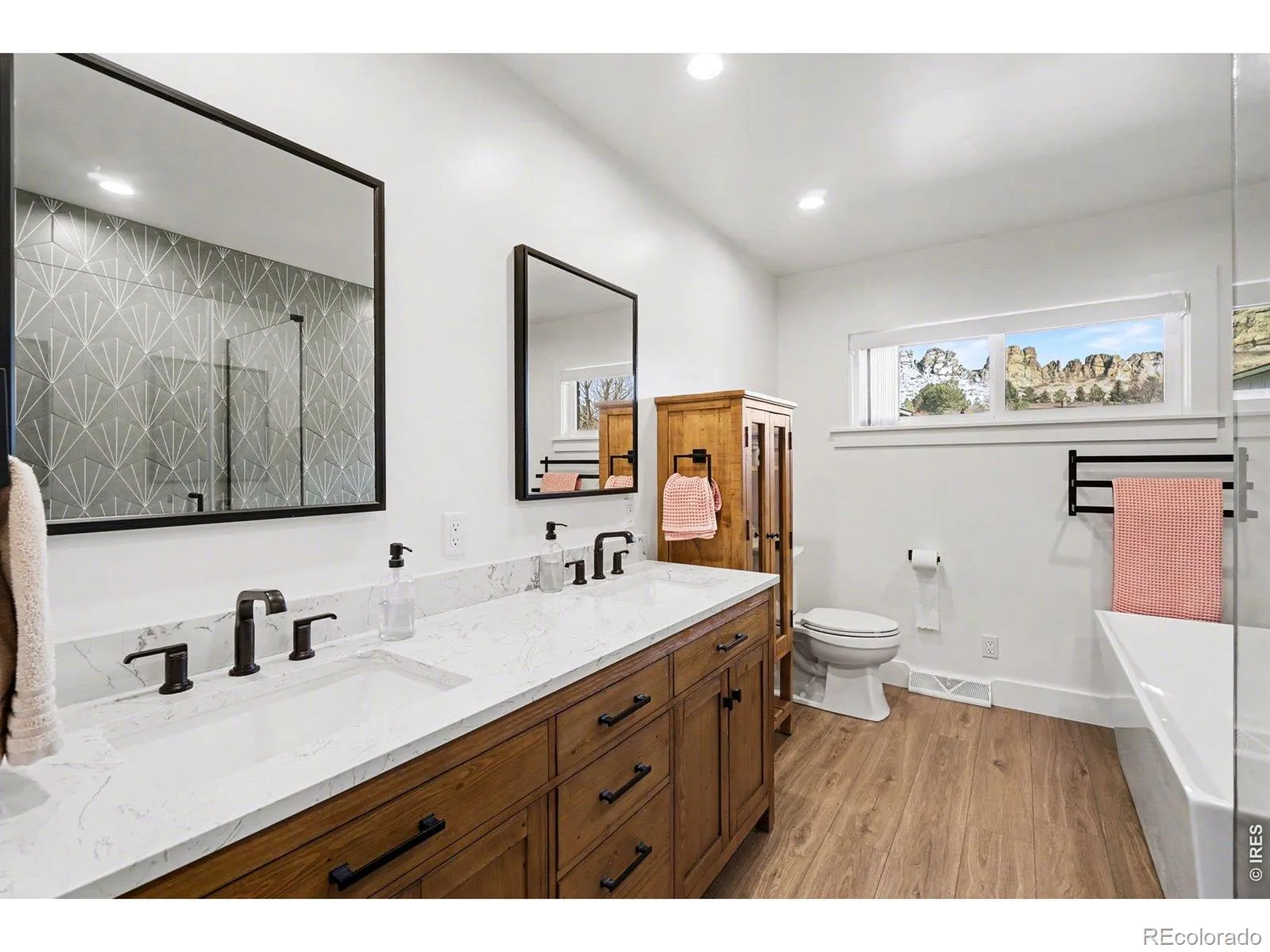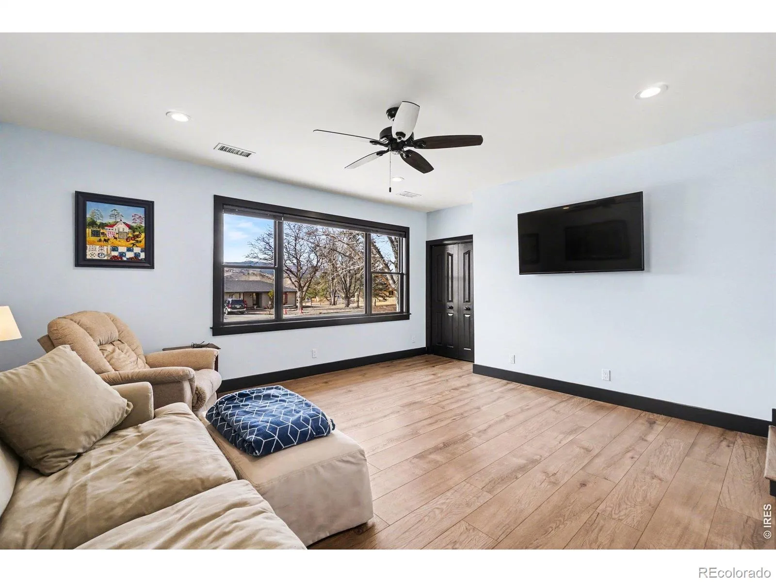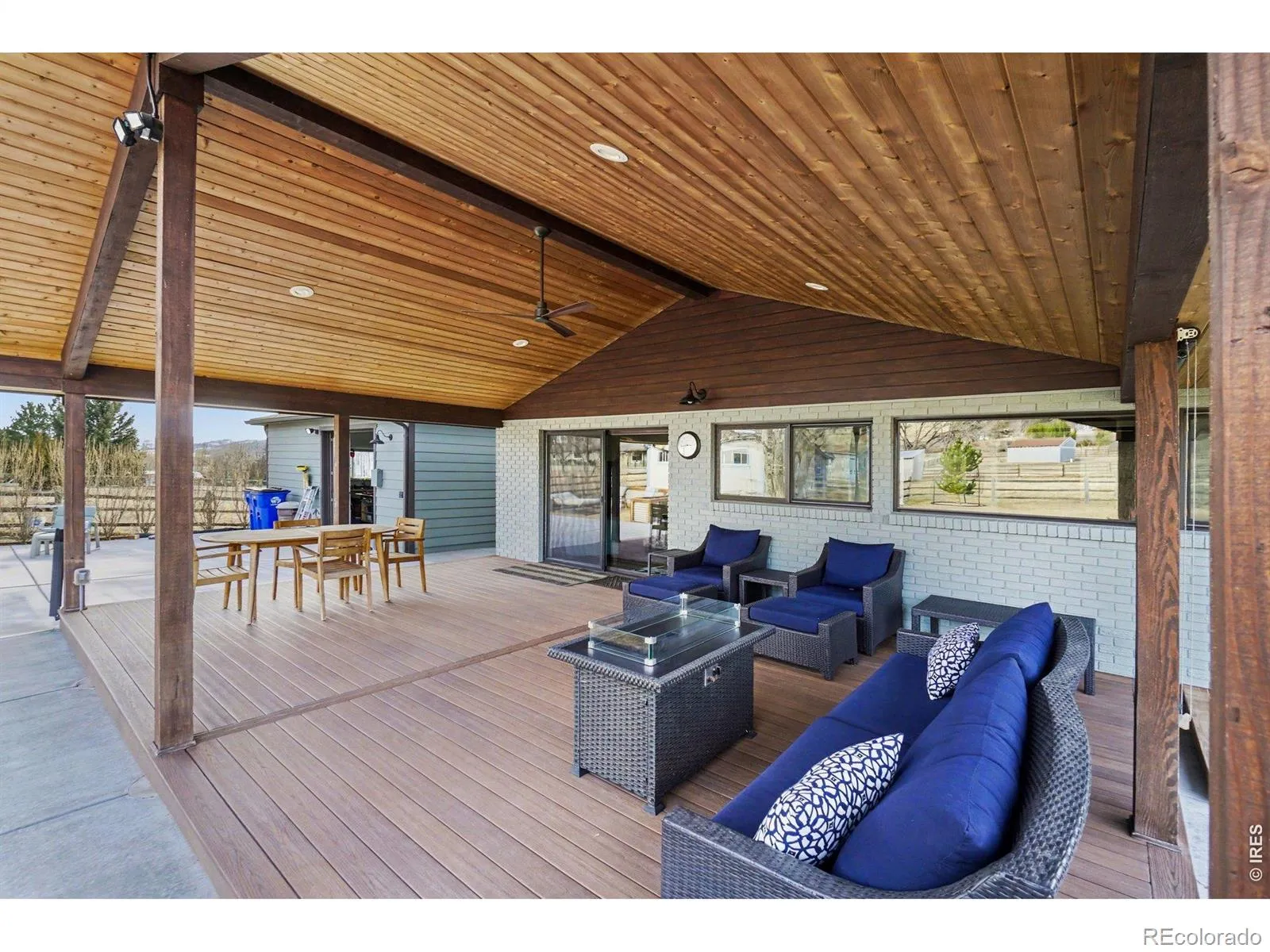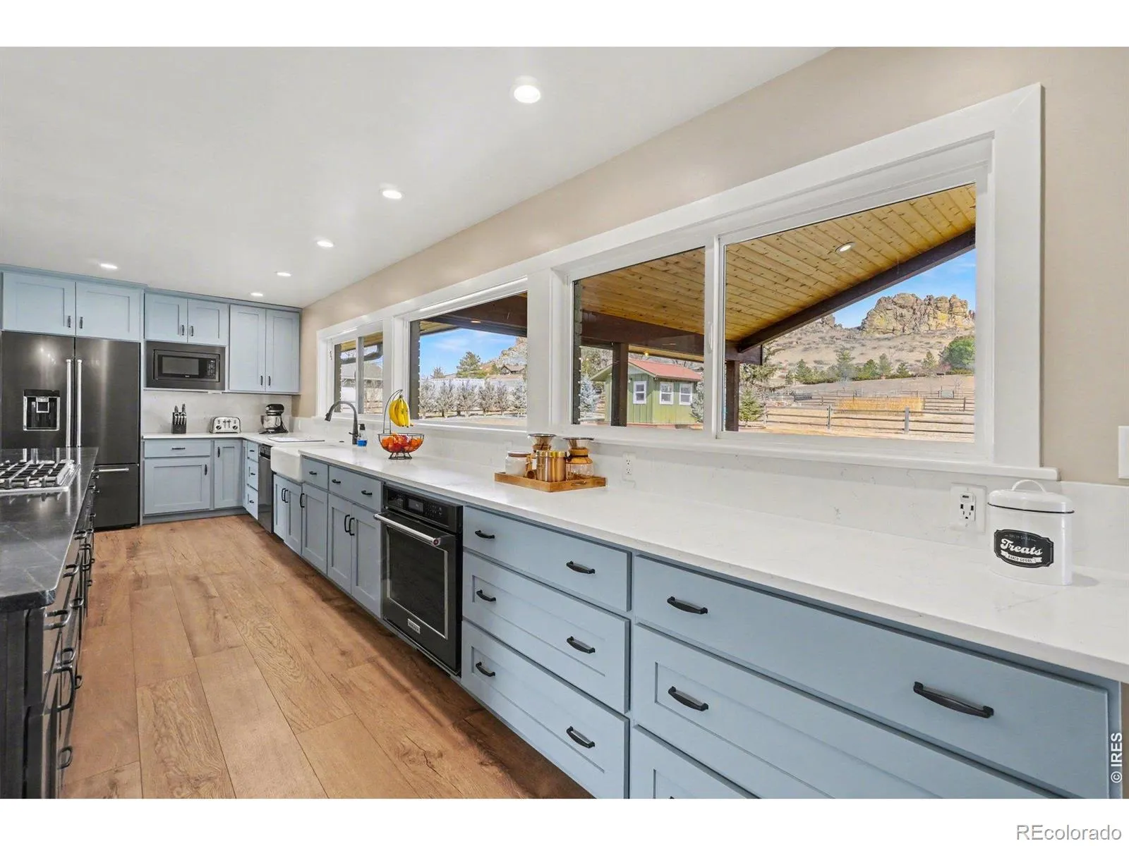 Mountain views from the front porch and unobstructed views of Devil’s Backbone from the backyard – this is the Colorado dream.Perfectly positioned to capture both sunrise mountain views and dramatic evening sunsets over open space, this fully renovated property blends lifestyle, quality craftsmanship, and functionality.Bring your horses – county allows up to two – with a fenced pasture, loafing shed, and tack room already in place.Inside, the home has been thoughtfully upgraded throughout. The kitchen features custom Tharpe cabinetry, quartz and soapstone countertops, and updated lighting. All walls and ceilings have a Level 5 smooth finish, complemented by high-grade LVP flooring and stained knotty alder interior doors.Major system improvements include all new windows, a new HVAC system with heat pump (less than one year old), tankless water heater, new recessed lighting, and fully remodeled bathrooms with updated electrical and plumbing.Natural light fills the home through two sun tunnels and a skylight.Outdoor living shines with a 450 sq ft covered deck, new concrete work, and a detached 10×12 office. Multiple storage structures provide flexibility, including an insulated 10×12 Tuff Shed and additional outbuildings equipped with solar lighting.The oversized garage is fully insulated and features triple-insulated doors and windows, LED lighting, a heater, and air lines for a compressor.This is not just a renovated home – it’s a turnkey Colorado lifestyle property with mountain views in front, Devil’s Backbone views behind, and infrastructure already in place.