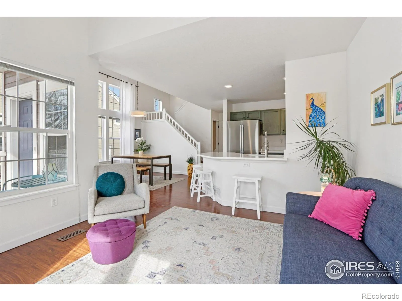 IMMACULATE, End Unit, South-facing 3 BR, 4 BA townhome tucked deep in the neighborhood and overlooking HOA open space… this has to be one of the best locations you’ll find. And this charming home will not disappoint. With a vaulted entry to capture the incredible sunlight, you’ll walk in to an open concept floorplan where the living room with cozy fireplace, dining room and upgraded kitchen complete with painted cabinets, quartz countertops and newer appliances all sit on lovely wood flooring. Venture upstairs past freshly painted walls to the generously sized 2 bedrooms, both with pristine ensuite bathrooms and vaulted ceilings. The finished basement is ideal as a 3rd BR or home office with a full bathroom along with a laundry room for fantastic flexibility. The major systems are buttoned up and ready to go with a new furnace and AC in 2025. With a 2 car attached garage, a nicely landscaped front yard and neighborhood trails, along with being just a quick drive from Boulder, downtown Louisville or Lafayette, this could be exactly what you’ve been waiting for. Let’s Get You Home!