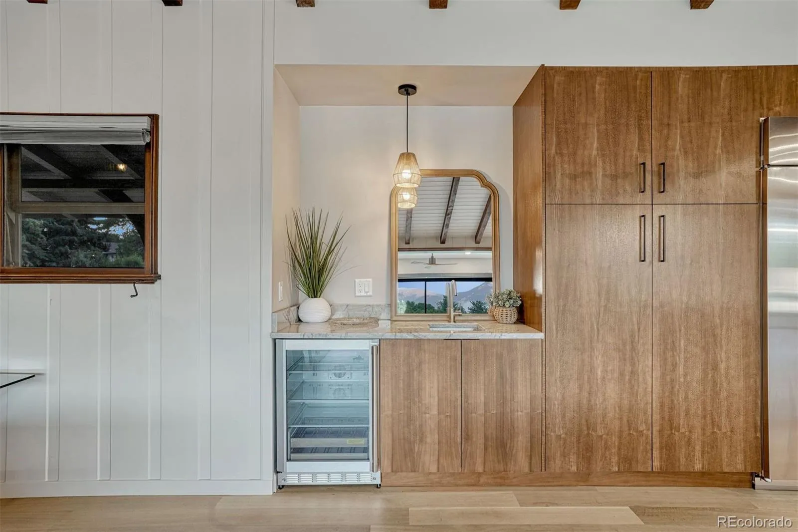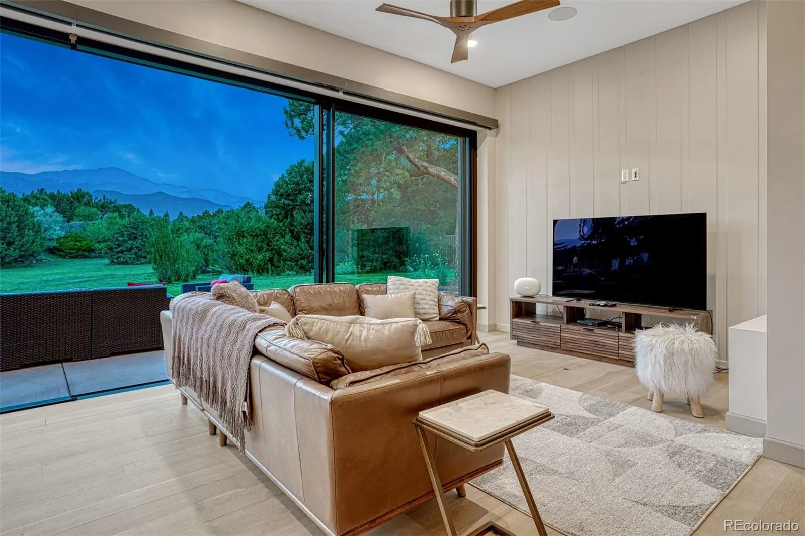 Situated on nearly an acre inside the gates of Kissing Camels, spanning two lots, this impeccably maintained Western mid century Ranch style residence, listed on the Colorado State Register of Historic Properties, offers what luxury buyers rarely find with main level living, exceptional privacy, and unmatched views of Pikes Peak and Kissing Camels. A thoughtful million-dollar renovation elevated the home while honoring its historic character, all set on a level, treed lot that provides both openness and seclusion. The renovation, led by Art C. Klein Construction, carefully preserved hallmark elements including the original sandstone fireplace while introducing significant upgrades such as Hardie Plank board-and-batten siding, exterior paint, upgraded insulation, a Class 4 impact-resistant roof, and standing-seam metal accents. Infrastructure upgrades include renovated electrical, plumbing, a Trane furnace and AC, AO Smith ProLine water heaters, and Lutron shades, delivering modern efficiency. Designed for both entertaining and everyday living, the ranch layout features open-concept living and dining spaces anchored by a gourmet kitchen with a dramatic 28-foot NanaWall that seamlessly connects indoor and outdoor living. White oak hardwood floors, quartz counters, and preserved architectural details create a refined yet relaxed aesthetic that feels timeless. All four bedrooms offer attached all-tile baths and there is a dedicated office. Outdoor living is equally compelling, with a rear patio centered around a custom corten steel 8-foot firepit and newly landscaped grounds featuring mature piñon, ponderosa, and bottlebrush pine trees. Appealing to full-time residents, second-home buyers, and golf enthusiasts, this exceptional property offers breathtaking mountain views, 24-hour community security, and the rare opportunity for future expansion. Experience resort-style living with easy access to downtown Colorado Springs, I-25, dining, shopping, and Garden of the Gods.
