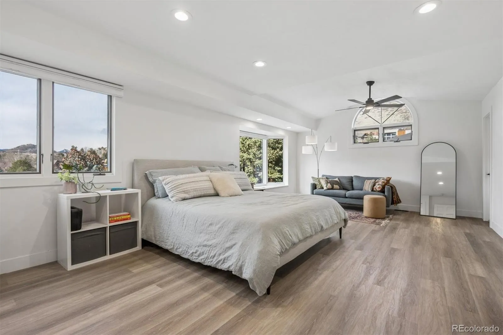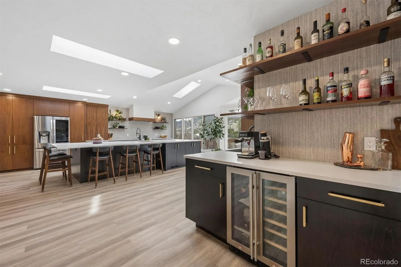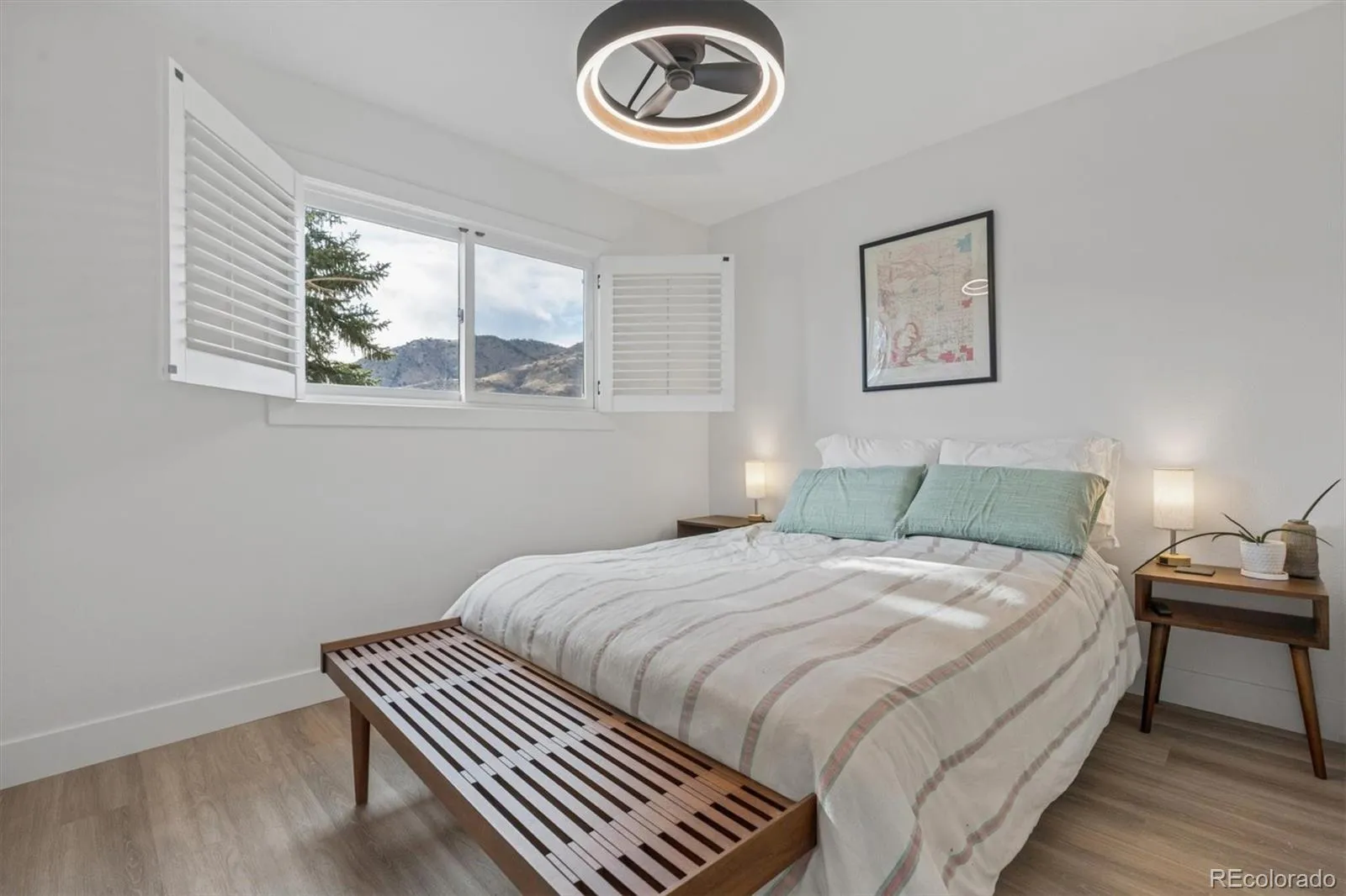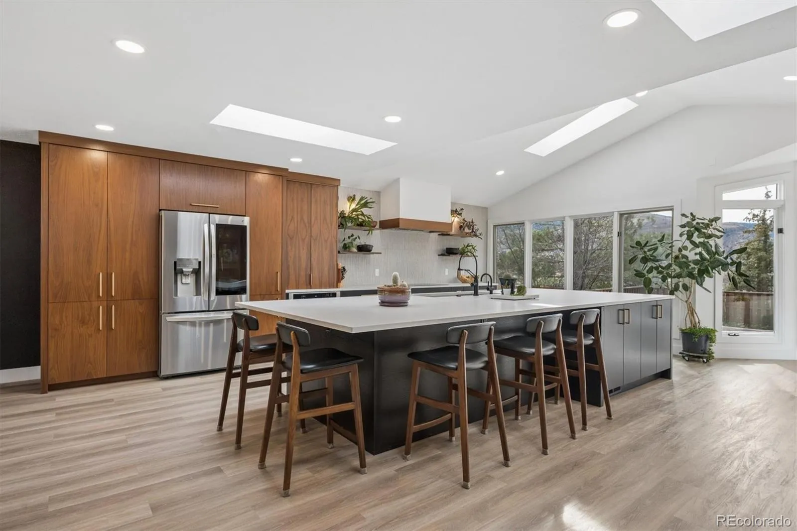 Nestled at the base of North Table Mountain, this newly renovated single-family home delivers front-row mountain views and elevated modern living in Golden. With 3 bedrooms, 3 bathrooms, and a thoughtful open-concept design, every detail has been curated for comfort, style, and connection to Colorado’s natural beauty. As you enter the home, you are greeted by a spacious, light-filled space with stunning views. The impressive chef’s kitchen features a generous island with seating, sleek finishes, warm wood cabinetry, and abundant natural light. It flows seamlessly into the living and dining space—perfect for entertaining and everyday living. Each bathroom feels like a private retreat, with a glass-enclosed shower, refined finishes, and a serene soaking tub that brings spa-level comfort into your daily routine. Expansive windows and vaulted ceilings flood the home with natural light while perfectly framing the surrounding foothills. Whether you’re hosting friends or enjoying a quiet morning coffee, the ever-changing mountain scenery becomes part of your everyday experience.