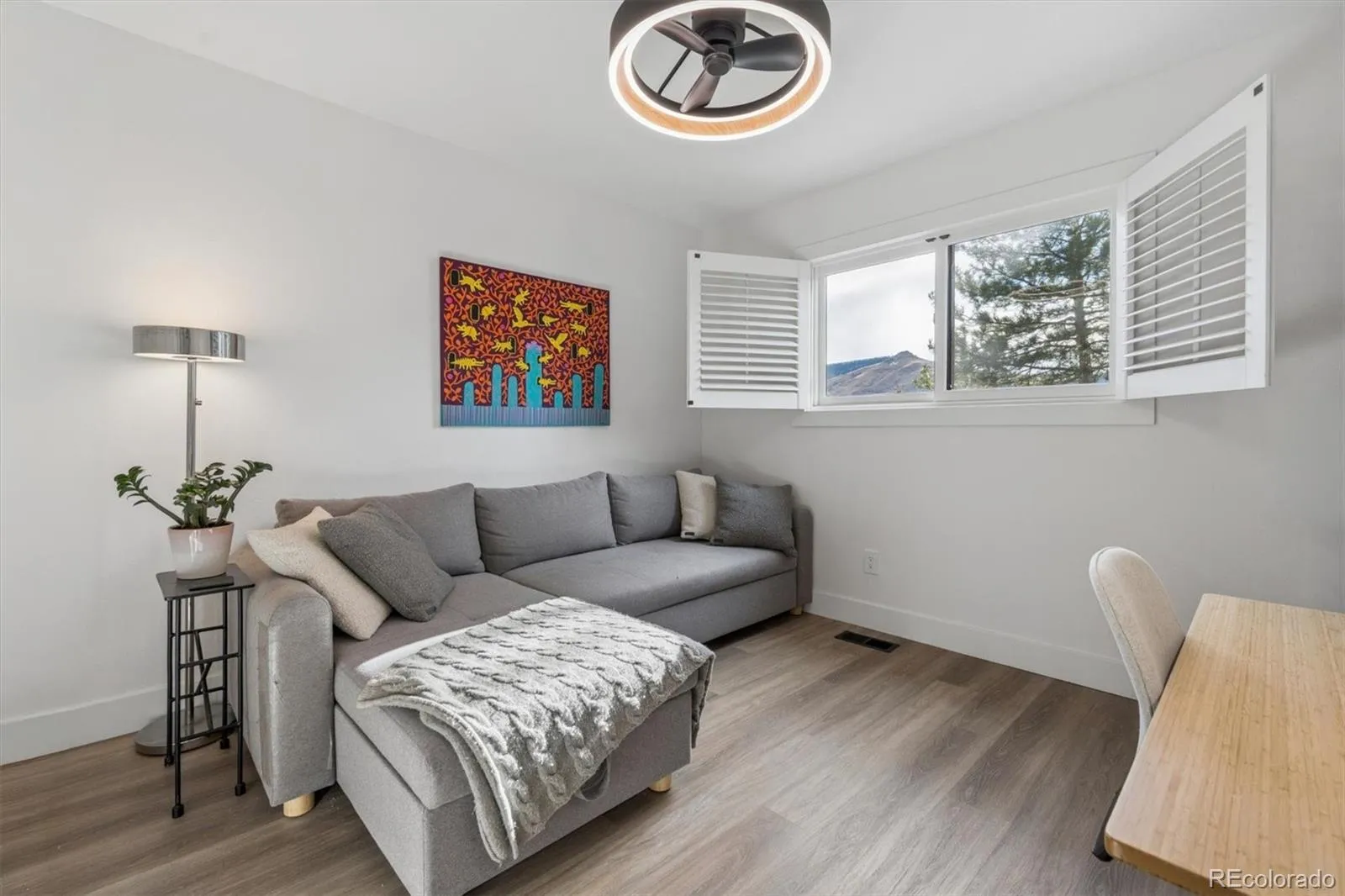 Features: Incredible mountain views right outside your windows, with a private yard. *There is an additional sloped part of the property which allows for unobstructed views, 3 spacious bedrooms & 3 beautifully updated bathrooms. The Primary suite has mountain views with a sitting area and luxurious newly renovated bathroom. The Kitchen offers an induction cooktop and filtered, instant hot water. Beautiful wet bar area, skylights, vaulted ceilings & open-concept living, new furnace, central air and humidifier in 2024. Prime Golden location near trails, downtown, Clear Creek, and I-70 for easy access to the mountains or downtown Denver.
