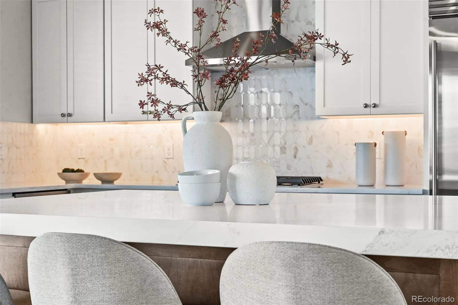 At the heart of the home is the gourmet kitchen with high-end appliances including a built-in Sub-Zero refrigerator, 42-inch custom cabinetry, a walk-in pantry, and a spacious center island. Entertaining flows seamlessly onto the oversized deck with breathtaking views.