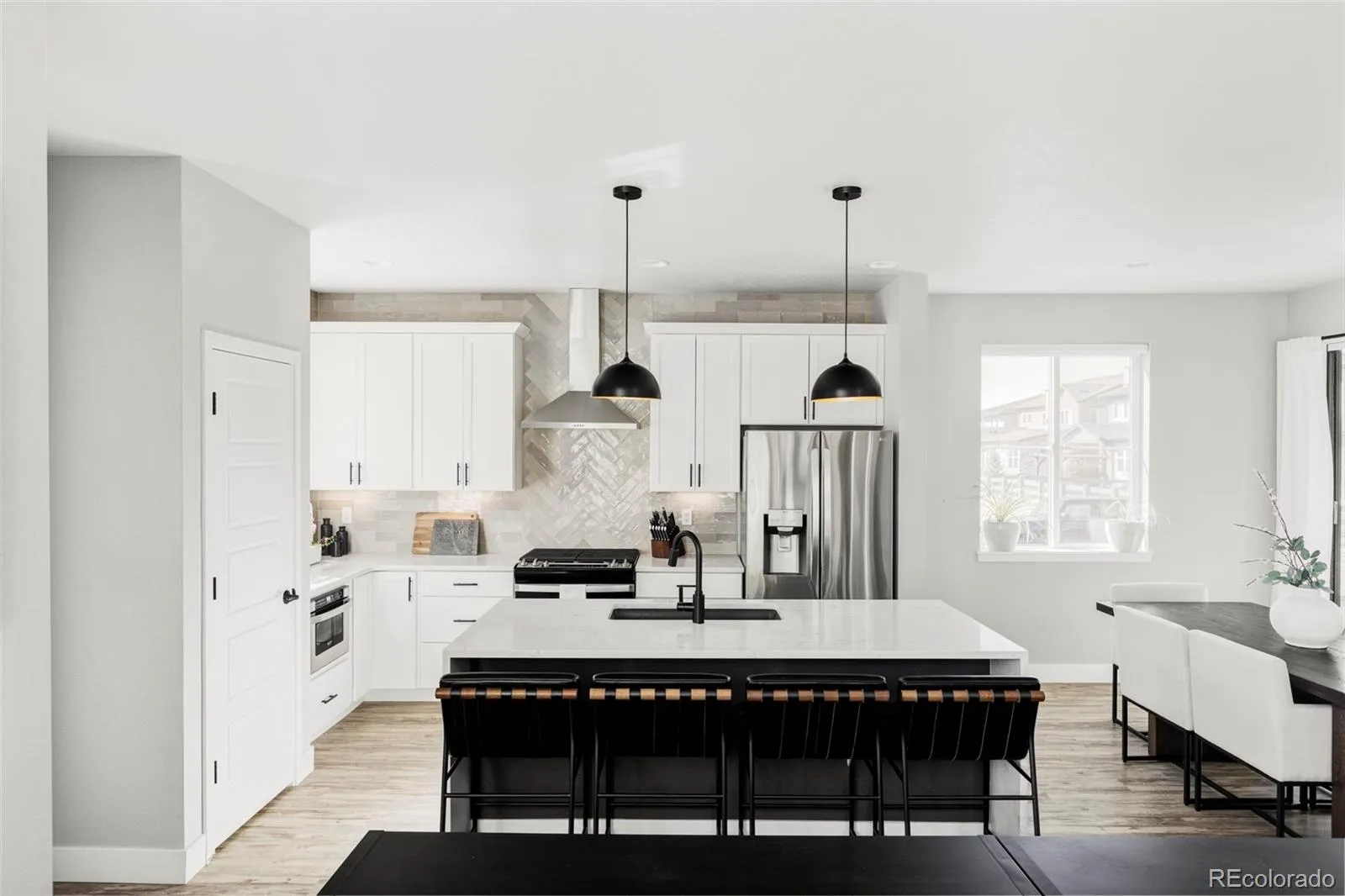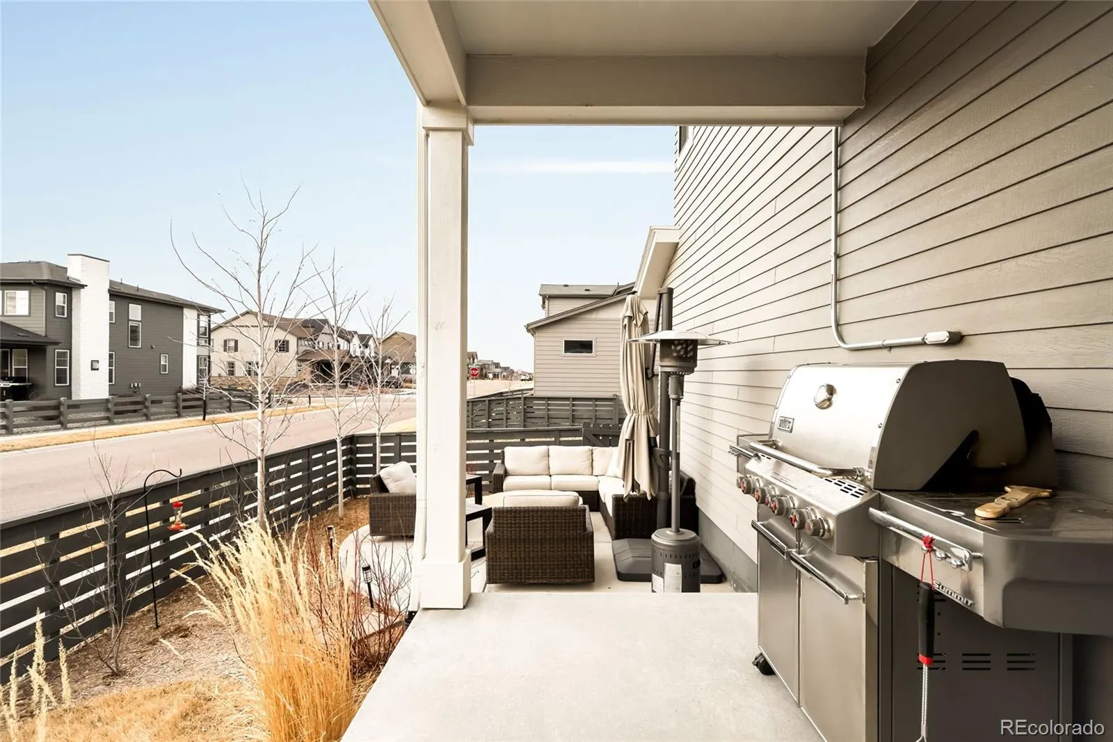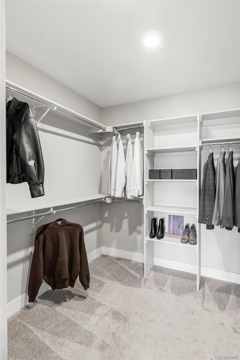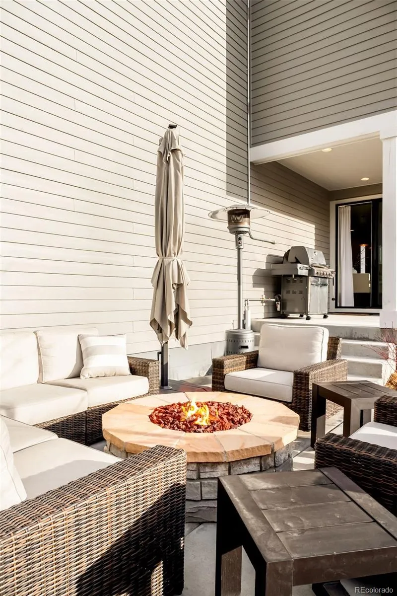 An enviable corner lot location and sleek, modern finishes come together within this sunlit Castle Pines retreat. The open-concept living room is characterized by soaring vaulted ceilings, a gas fireplace, and expansive windows. Adjacent to this space is a chef’s kitchen and dining space defined by herringbone backsplash, a waterfall island, and top-of-the-line appliances. Ascend the open stairwell to discover the primary suite, where a spacious walk-in closet, dual vanities, and a glass-enclosed walk-in shower offer convenience and solitude. Two light-filled secondary bedrooms and a shared bathroom complete the upper level. A finished basement awaits with tall ceilings, flexible recreation space, an additional bedroom, and a full bathroom. Both covered and uncovered outdoor patio spaces and direct access to open space make the most of this home’s end-unit privacy. With Tesla solar panels and a convenient EV charger this radiant home is a masterclass in modern living. Come find out why The Canyons isn’t just a neighborhood—it’s a lifestyle where residents enjoy a resort-style pool, pickleball courts, café, parks, and endless trail access.