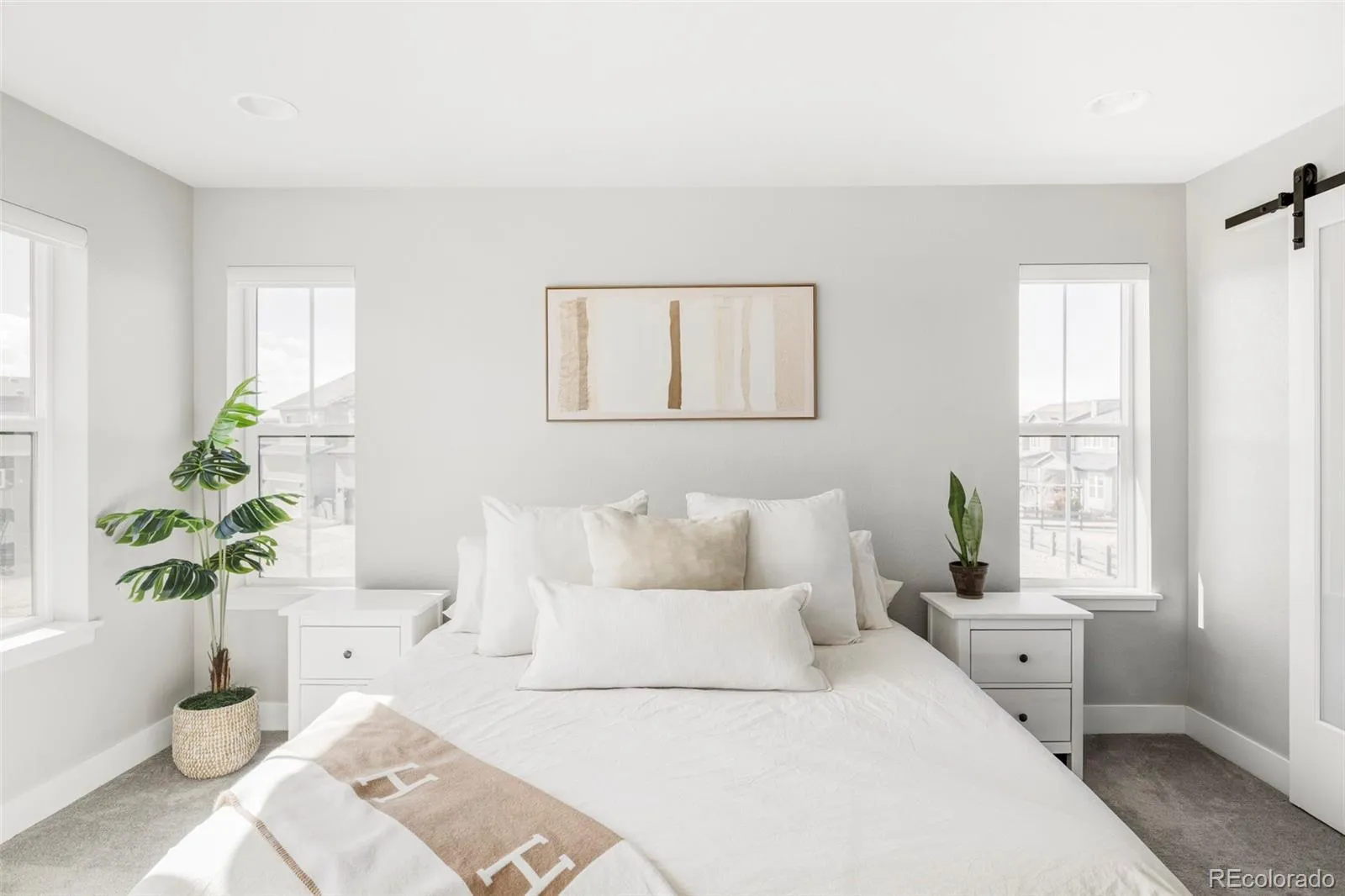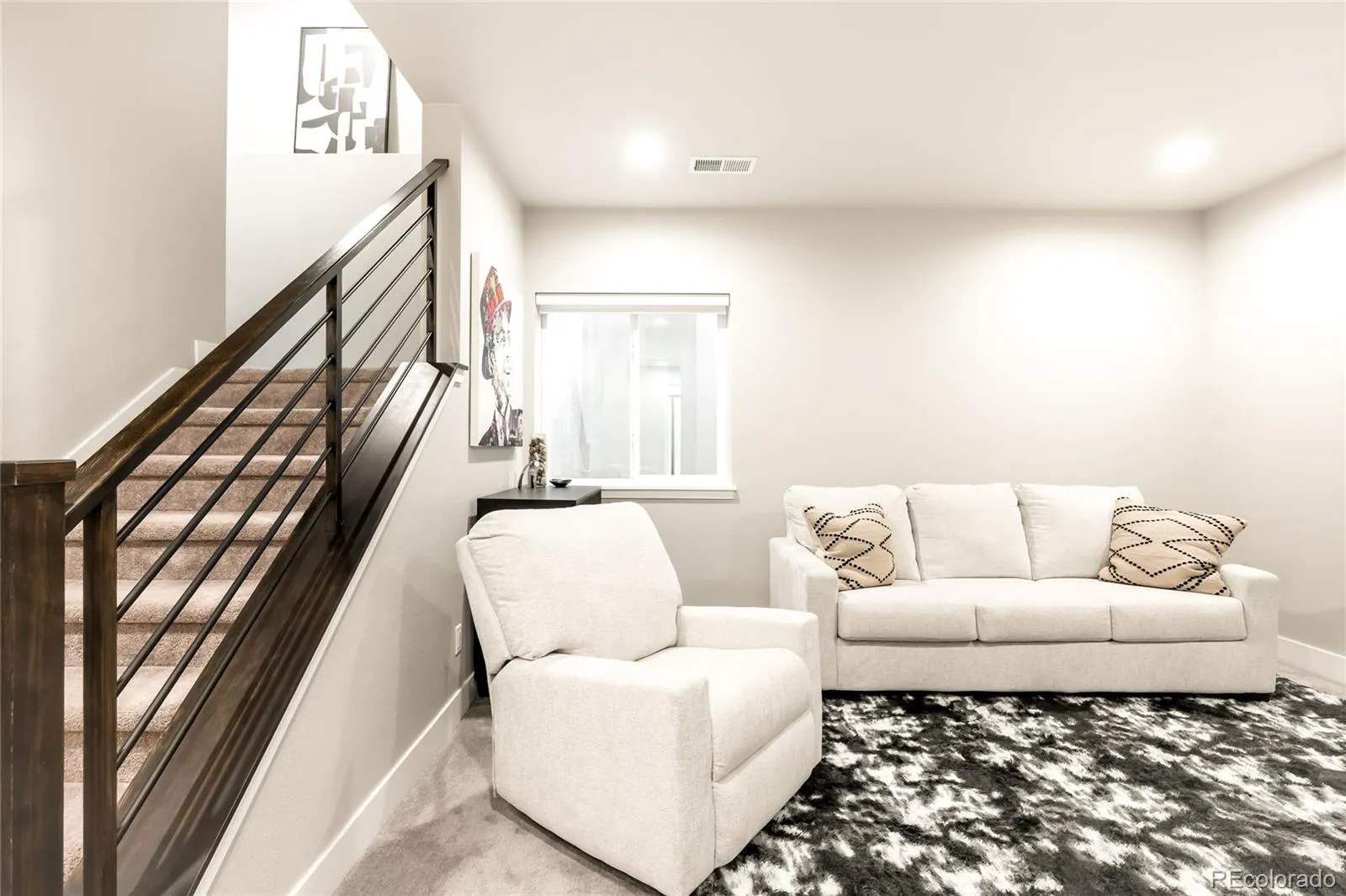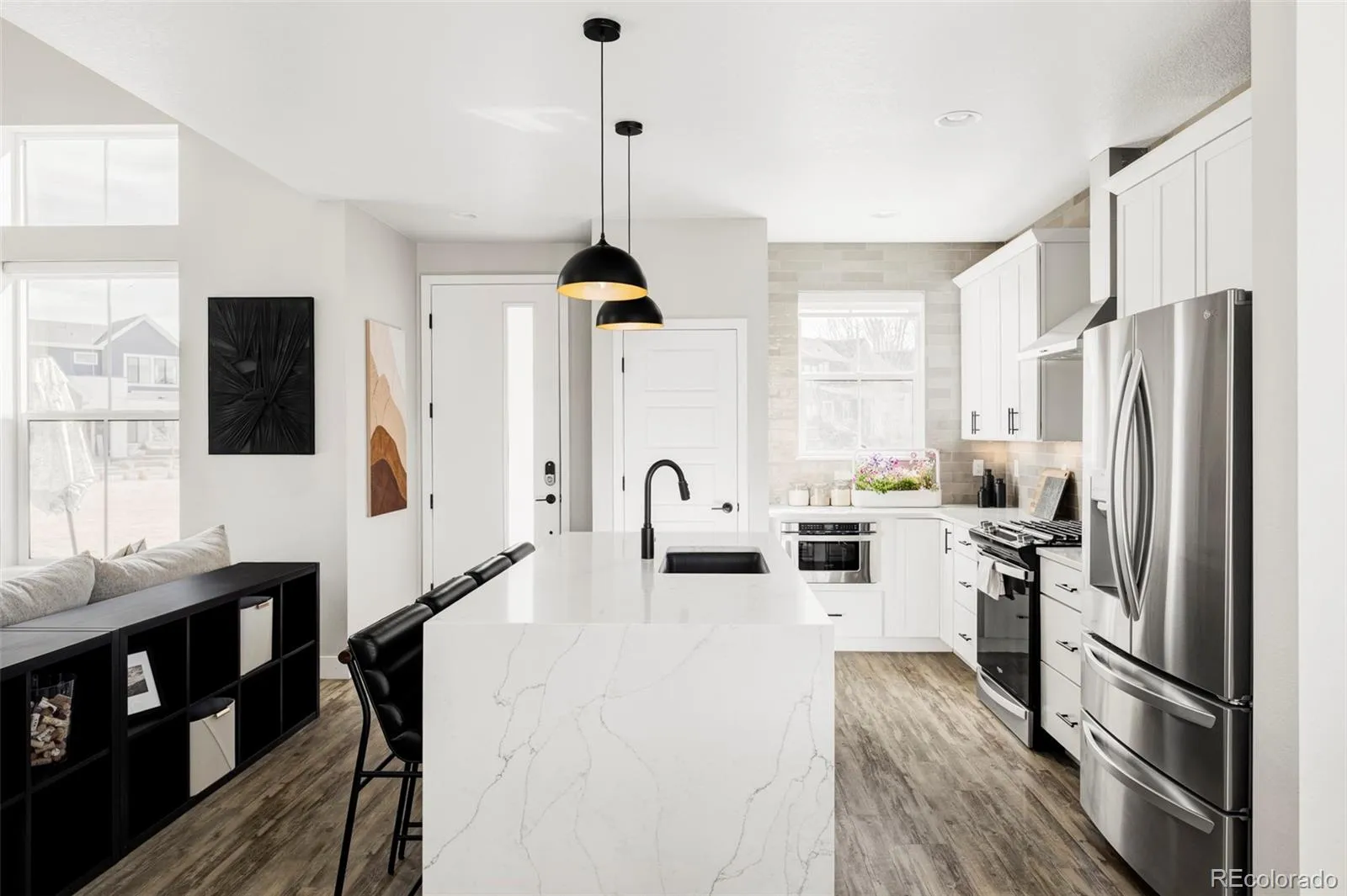 An enviable corner lot location and sleek, modern finishes come together within this sunlit Castle Pines retreat. The open-concept living room is characterized by soaring vaulted ceilings, a gas fireplace, and expansive windows. Adjacent to this space is a chef’s kitchen and dining space defined by herringbone backsplash, a waterfall island, and top-of-the-line appliances. Ascend the open stairwell to discover the primary suite, where a spacious walk-in closet, dual vanities, and a glass-enclosed walk-in shower offer convenience and solitude. Two light-filled secondary bedrooms and a shared bathroom complete the upper level. A finished basement awaits with tall ceilings, flexible recreation space, an additional bedroom, and a full bathroom. Both covered and uncovered outdoor patio spaces and direct access to open space make the most of this home’s end-unit privacy. With Tesla solar panels and a convenient EV charger this radiant home is a masterclass in modern living. Come find out why The Canyons isn’t just a neighborhood—it’s a lifestyle where residents enjoy a resort-style pool, pickleball courts, café, parks, and endless trail access.