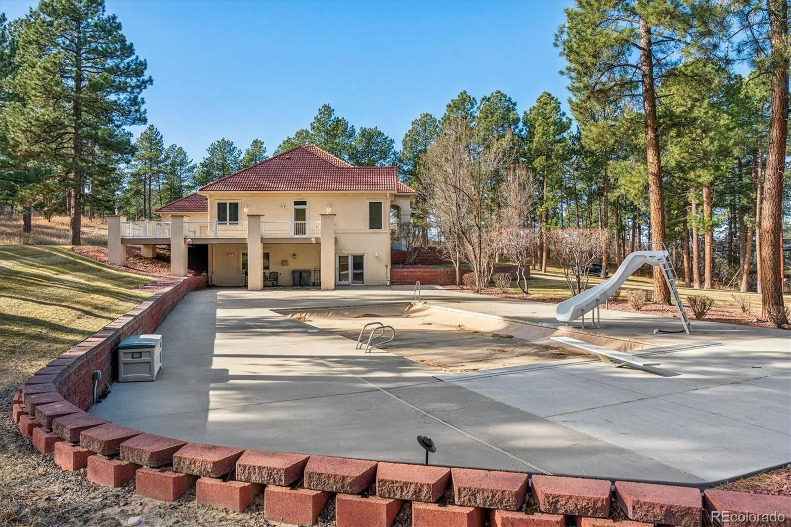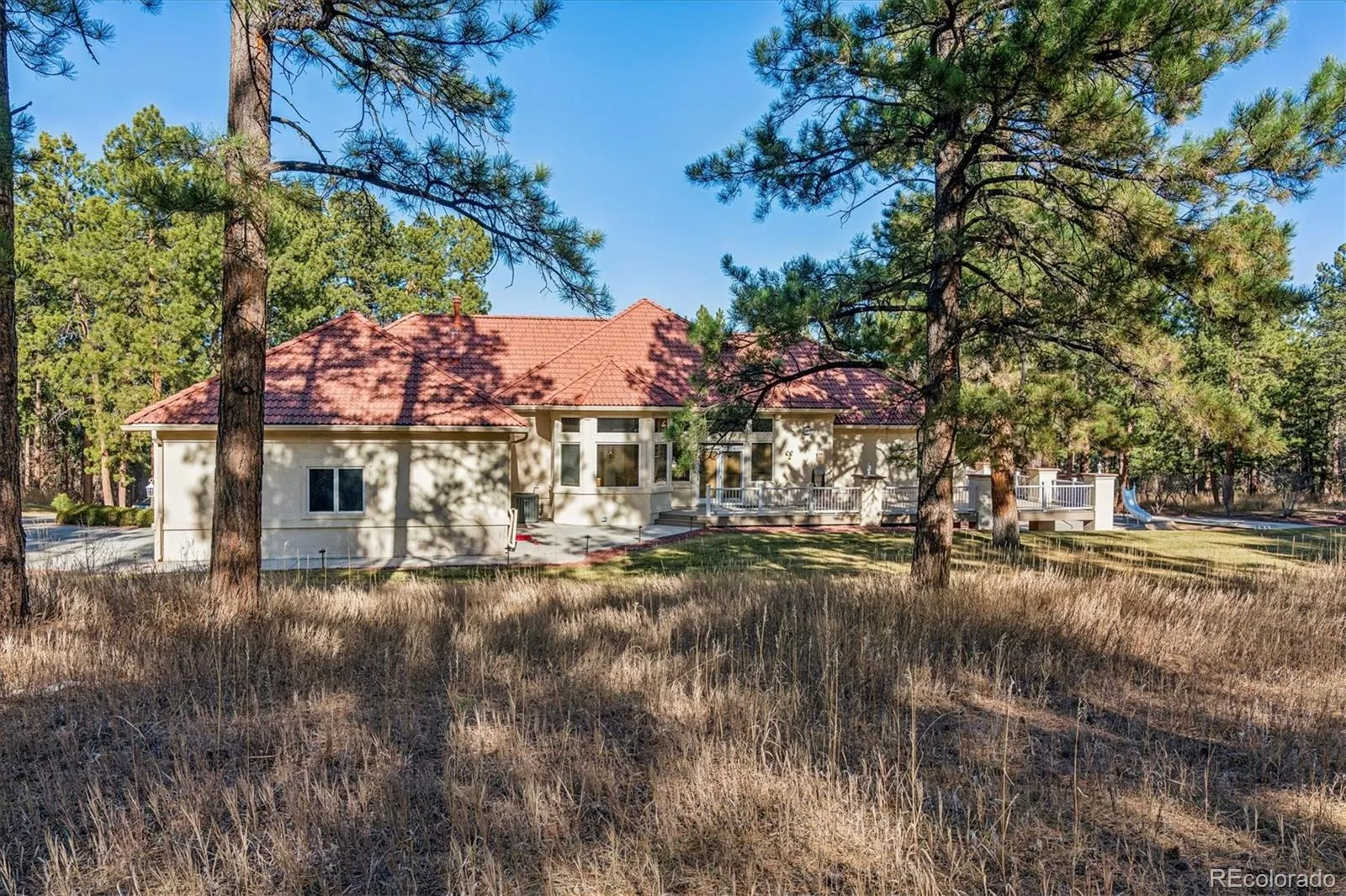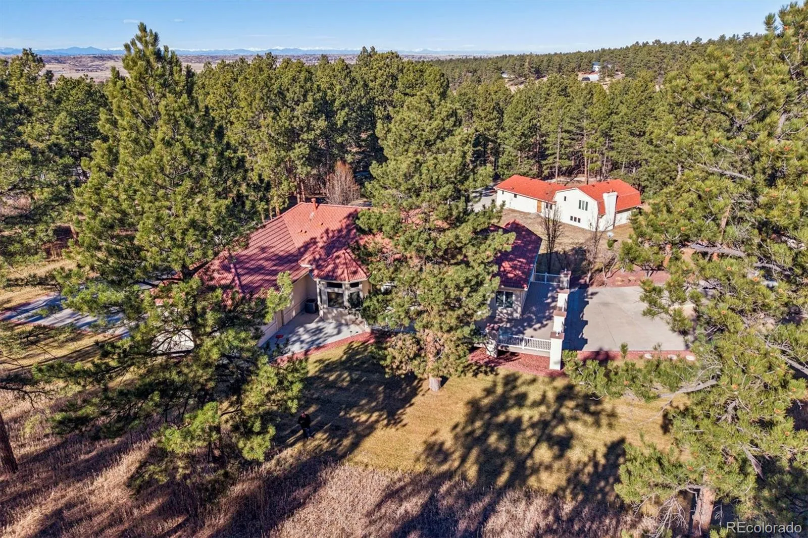 Set on 10 wooded acres with convenient access to Highway 86 and Highway 83, this Spanish-inspired ranch offers privacy, space, and long-term potential just minutes from shopping and dining in Franktown and Parker, with easy access to the greater Denver and DTC areas.