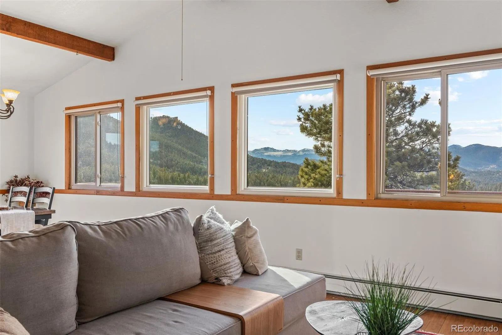 You just have to check out 24170 Matterhorn Dr. in the sneaky escape of Indian Hills. This stunning 3 Bed/2 Bath mountain retreat has views that will make your glow-up phase a permanent state. If you’re tired of boring backdrops and cookie-cutter kitchens, this Evergreen-adjacent gem delivers panoramic, jaw-dropping views of Mount Blue Sky (that majestic 14er formerly known as Mt. Evans) right from your living room—because who needs art on the walls when Mother Nature painted a masterpiece outside every window? No joke, you’ll walk through the front door and there she is, framed out of the large windows off the living room and kitchen!