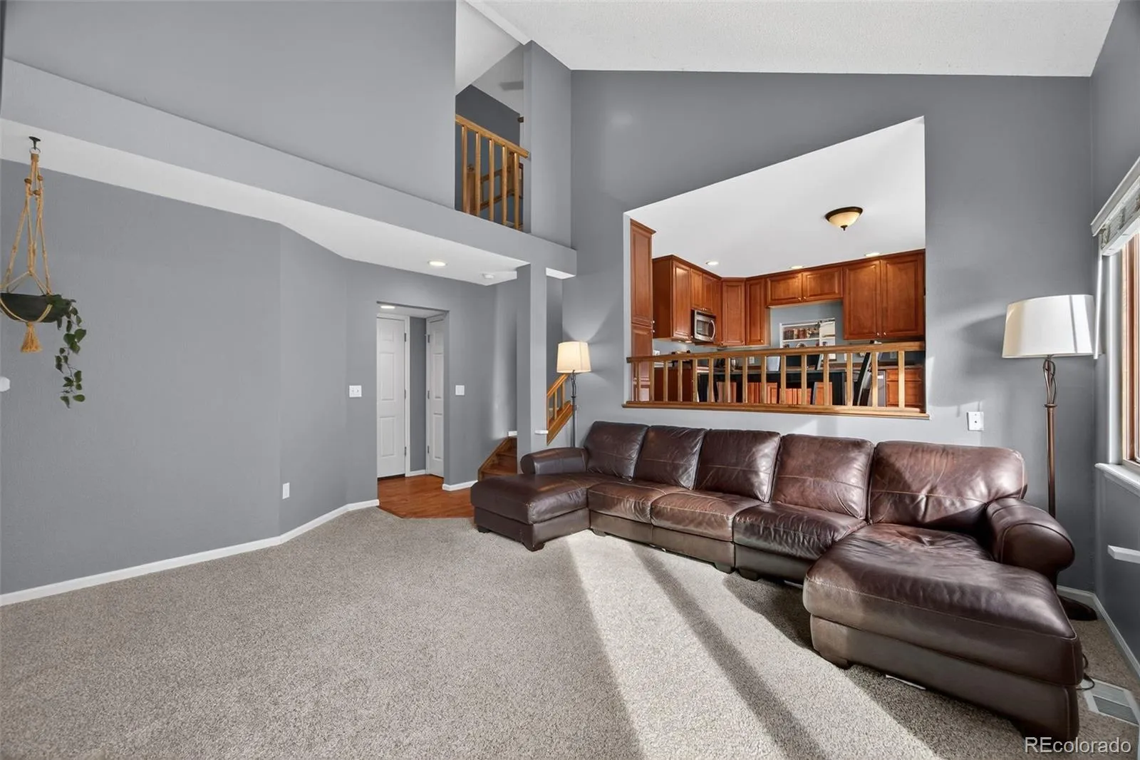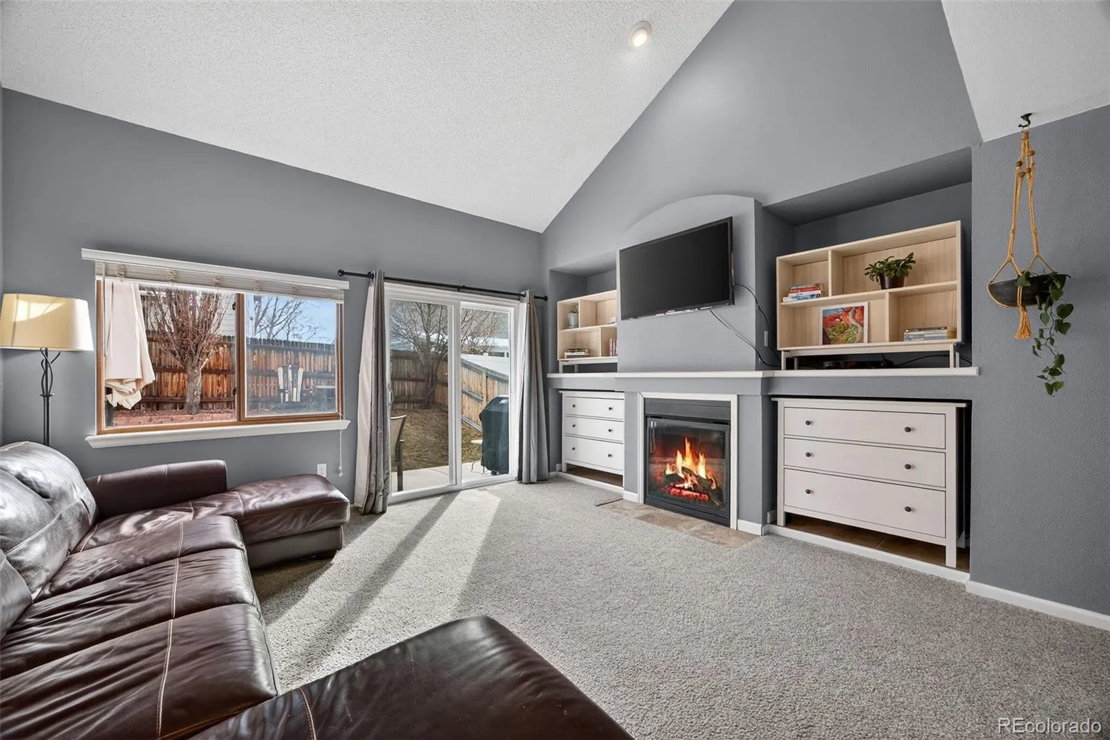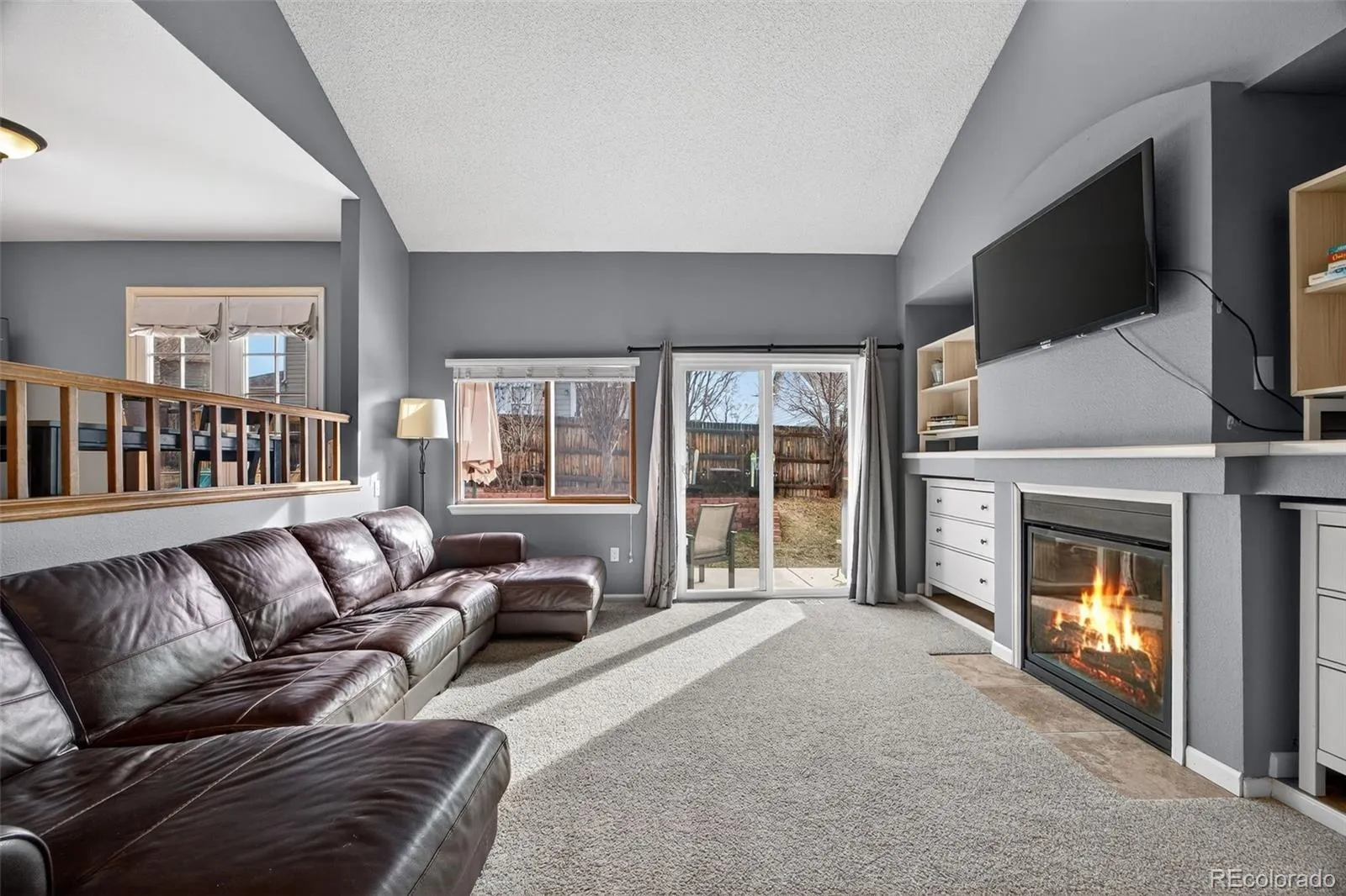 The spacious family room features a cozy fireplace, perfect for Colorado evenings. French doors from the kitchen and sliding glass doors from the family room flood the main level with natural light and provide easy access to the backyard, blending indoor and outdoor living beautifully.