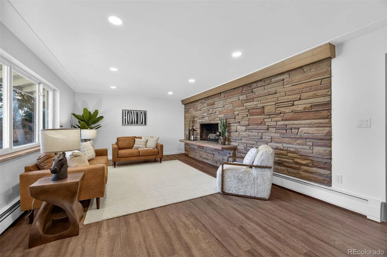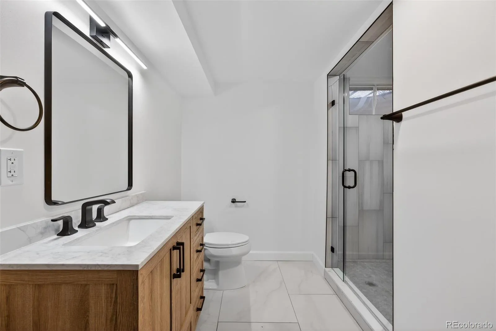 Fully remodeled 5 bedroom home with finished basement, large fenced yard, and prime location close to restaurants, shopping, and trails. This home stands out the moment you walk in with a bright, open floor plan, tons of natural light, and a cozy gas fireplace that makes the main living space feel warm and inviting. The completely updated kitchen features new cabinets, quartz countertops, stainless steel appliances, and a large island perfect for entertaining, daily living, and gathering with friends and family. The kitchen flows directly to the covered back patio, making BBQs and outdoor living easy. The main level primary suite offers two closets and a private bathroom with double sinks. Two additional bedrooms and a full bathroom on the main level provide flexibility for family, guests, or a home office. The finished basement adds valuable living space with a large second living room, bar area, two additional bedrooms, and a bathroom. Perfect for entertaining, guests, multi generational living, or working from home. Step outside to a large fenced backyard with room to play, relax, garden, and enjoy Colorado’s outdoors. Storage shed included. Located within walking distance to popular local restaurants, shopping, and everyday conveniences, plus easy access to nearby trails and outdoor recreation.