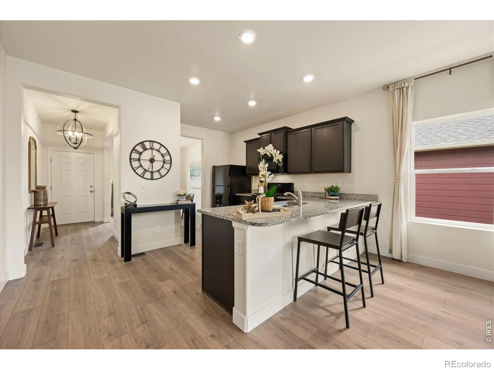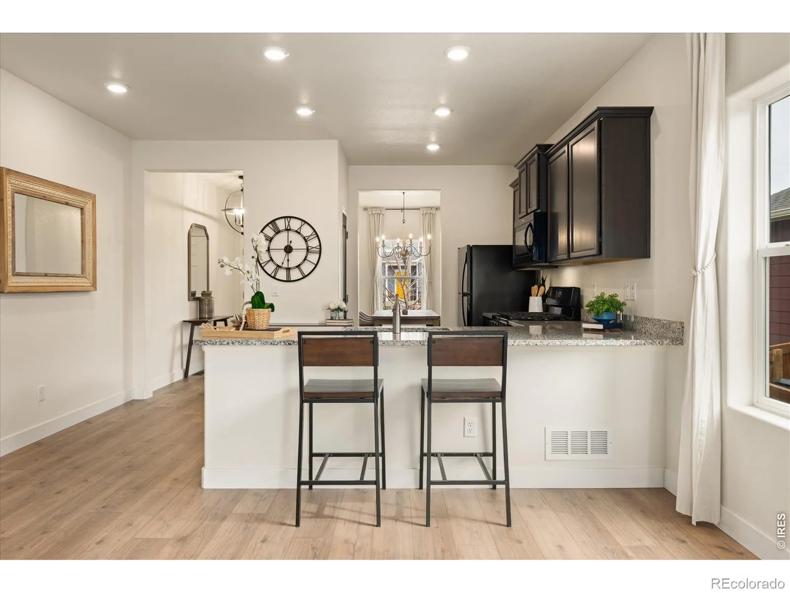 Move-in ready ranch home near Windsor under $500K with modern updates, main-level living, and low-maintenance yard. This 3-bedroom, 2-bath home offers true single-level living with luxury vinyl plank flooring, updated lighting, and abundant natural light throughout.The primary suite includes a fully updated bathroom with double vanity, quartz countertops, and a walk-in shower, along with an oversized walk-in closet designed for maximum storage. The kitchen features a gas range, eat-in dining space, and additional flex/dining area, ideal for everyday living or entertaining. Additional highlights include a fully lined crawlspace for extra storage, smart sprinkler system, and low-maintenance landscaping. Enjoy a fully fenced backyard with a large patio, perfect for outdoor living, pets, or entertaining. Located less than 10 minutes to downtown Windsor and near the Great Western Trail, with easy access to Fort Collins, Loveland, and Greeley, this home offers convenience, functionality, and updated finishes in one of Windsor’s most accessible price points.