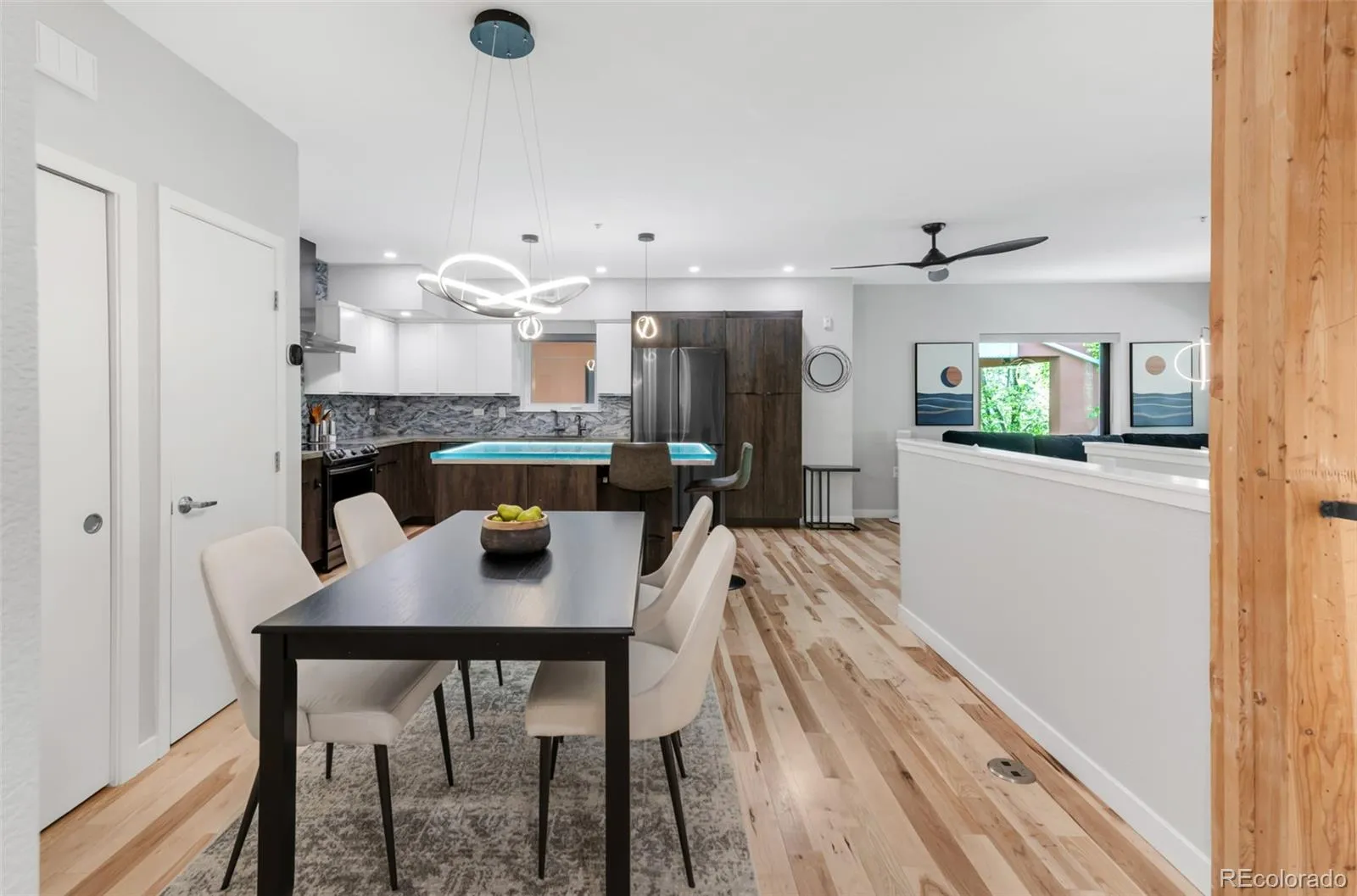 Positioned in the heart of RiNo, this meticulously updated live/work residence presents a rare opportunity within Denver’s most vibrant arts district. Mixed-use zoning meets elevated design, creating a space that balances creative flexibility with refined living. Rich hardwood floors ground the interiors, while custom concrete countertops and a glass-topped kitchen island anchor the culinary space with sculptural presence. Designer Samsung appliances, a wine fridge, and a plumbed coffee station elevate daily rituals, while an instant hot water line adds quiet convenience. Walls and ceilings have been refreshed with recessed, dimmable lighting and smart switches that allow ambiance to shift effortlessly. The lower level is wired for sound, and integrated Wi-Fi and networking ensure reliable connectivity throughout. Updated systems include air conditioning, heating, a new water heater, and upgraded electrical. Motorized shades, new windows, sliding glass doors, and symmetrically placed ceiling fans complete the transformation. This is a residence reimagined with intention, where live/work versatility and modern comfort converge.