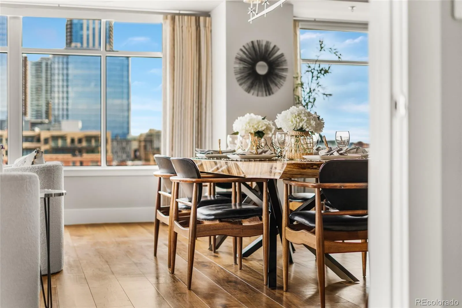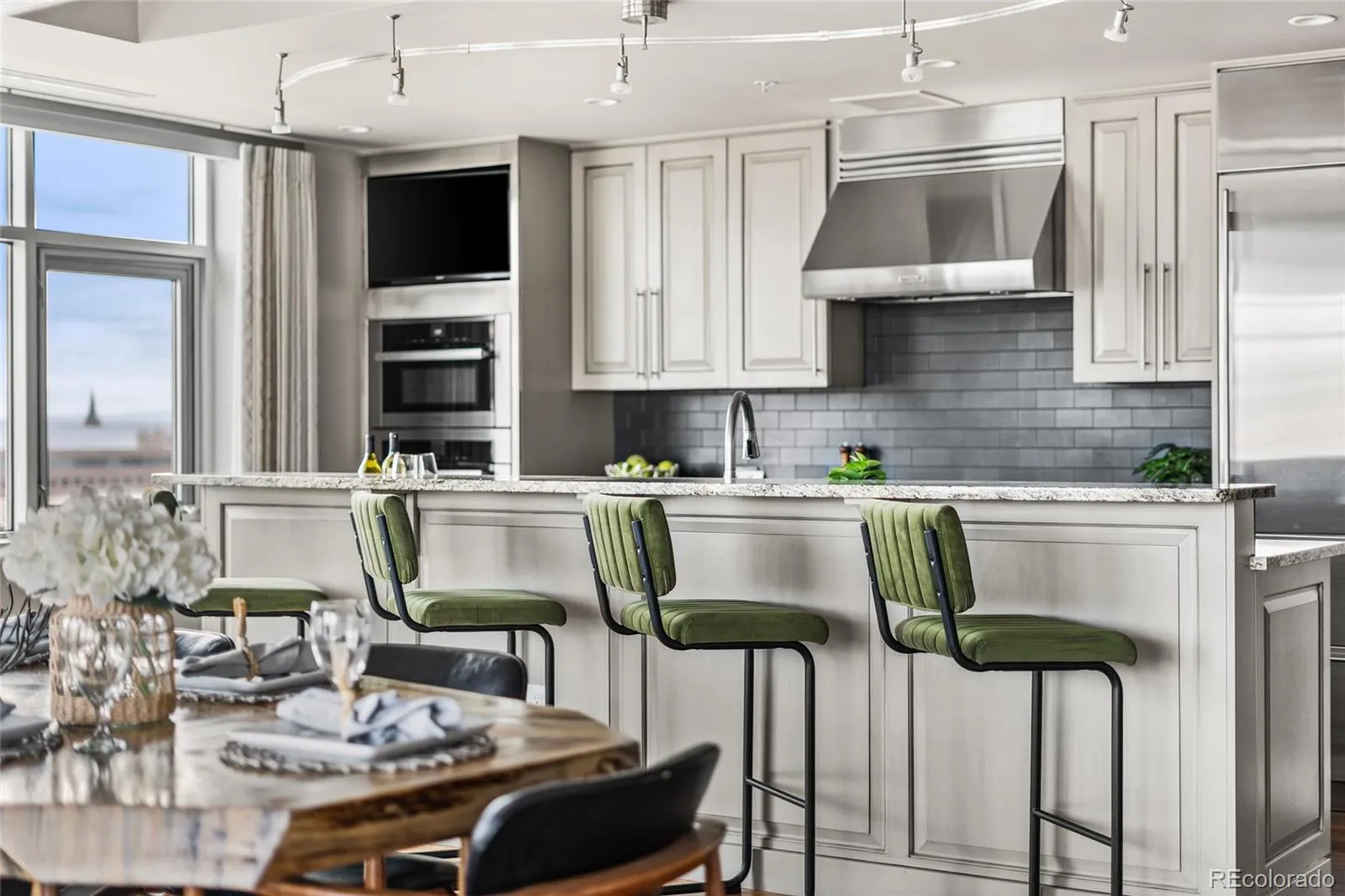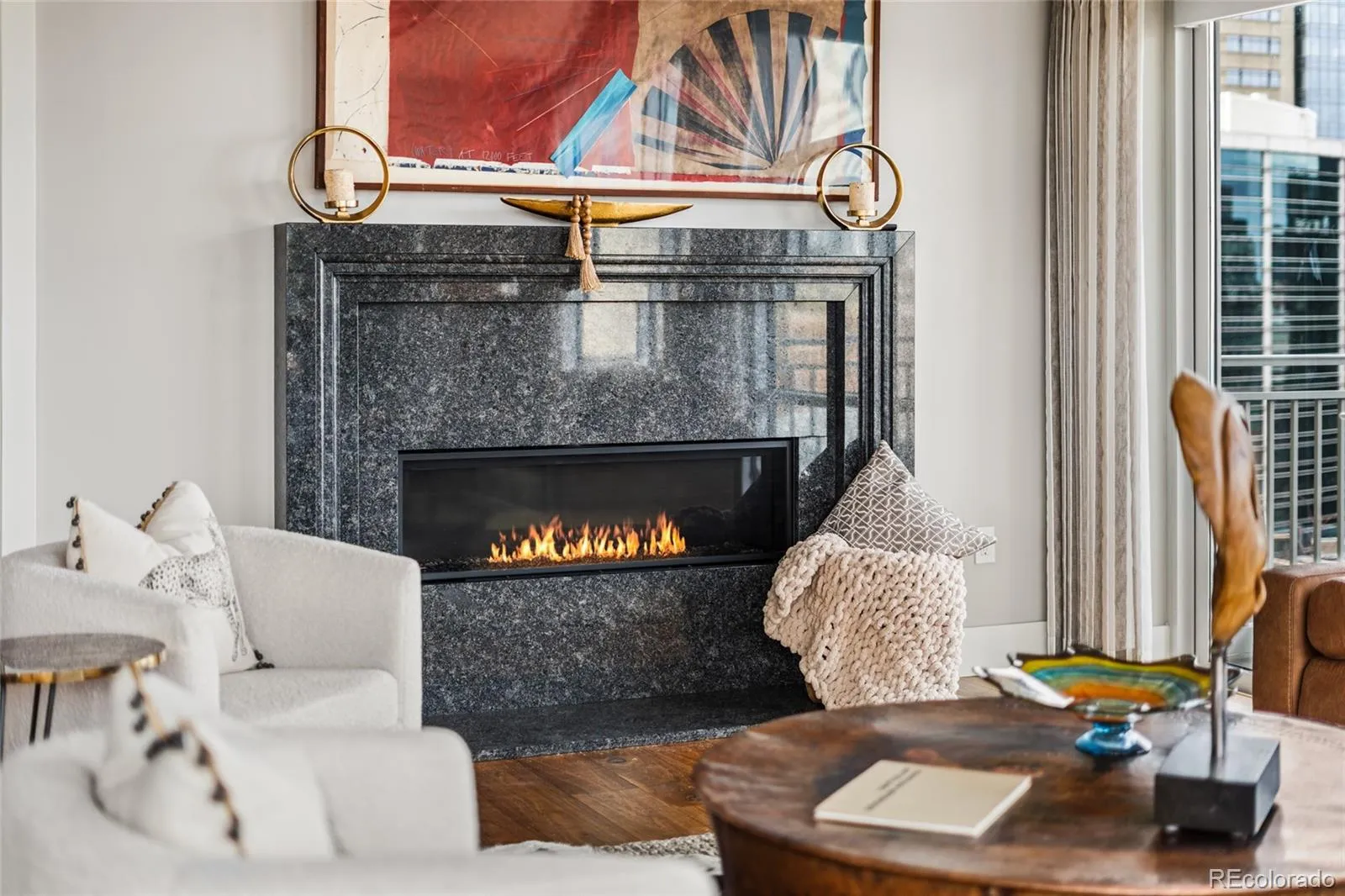 Elevated above the energy of downtown, this exceptional luxury residence delivers panoramic views of the Denver skyline and the Rocky Mountains from not one, but two private balconies. Windows frame breathtaking sunsets, sparkling city lights, and snowcapped peaks, a true front row seat to the best of Denver. Designed for both refined entertaining and everyday comfort, this 2-bedroom, 3-bathroom, plus an office home offers two spacious suites, each capable of serving as a primary retreat. The main primary ensuite is a spa-like escape featuring a steam shower and elevated finishes throughout. The chef’s kitchen is appointed with premium Miele appliances, sleek cabinetry, and thoughtful design details. A dedicated coffee and drink bar with a Sub-Zero beverage refrigerator adds an extra touch of luxury for hosting. Remote-controlled window shades, in-unit washer and dryer, and impeccable craftsmanship throughout ensure effortless living. High end wool carpet in bedrooms, custom lighting, built-ins, and a stunning custom marble fireplace create warmth and sophistication at every turn Enjoy the convenience of two private garage parking spaces, a storage unit, a fitness center, and the security of a well appointed building. And the location? Truly unbeatable. Just steps to Denver’s most iconic destinations including Union Station, Riverfront Park, Ball Arena, Larimer Square, 16th Street, Coors Field. Plus, the city’s best restaurants, cafés, and shopping. This is downtown Denver luxury living at its finest, where views, location, and design align.