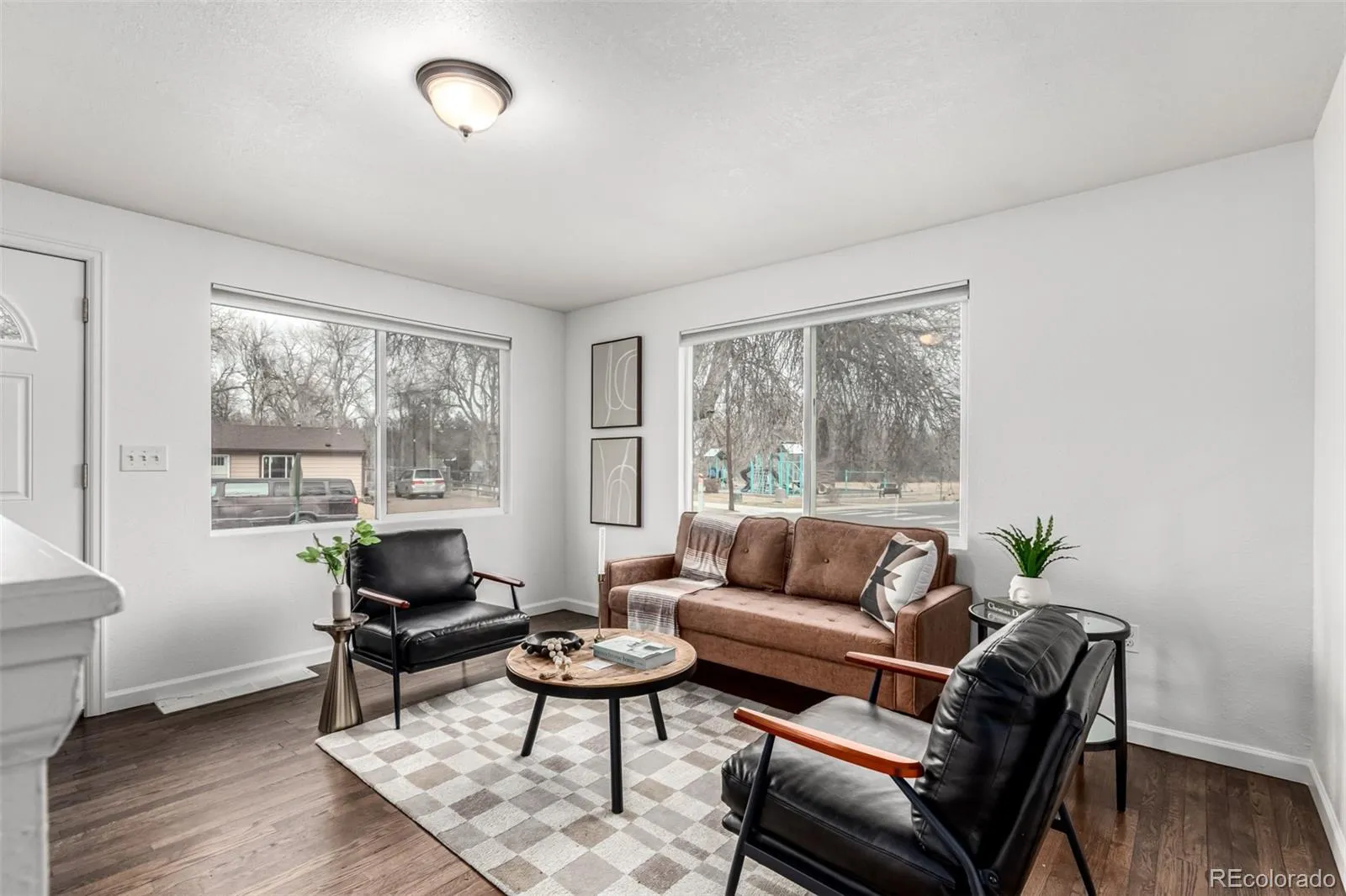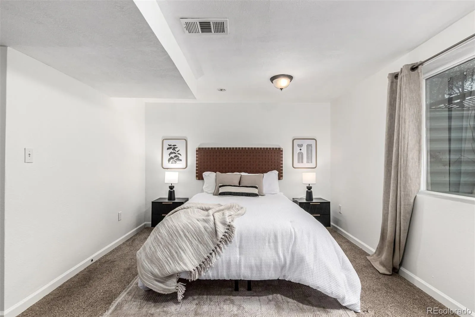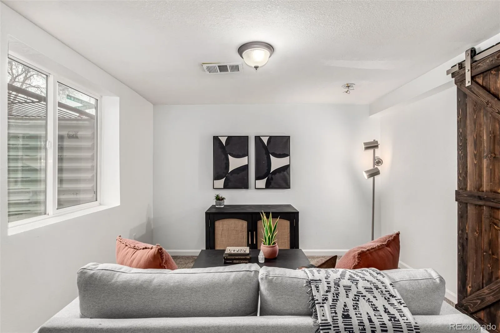 Fall in love with this delightful home on a highly desired corner lot! Featuring a convenient garage + extended driveway for your vehicles. The welcoming living room sets the tone for relaxed evenings, while the dining area is ready to host everything from casual breakfasts to festive dinners. Galley kitchen shines with wood cabinetry, generous counter space, mosaic backsplash, fluorescent lighting, and SS appliances. You’ll find two sizable bedrooms and a full bathroom on the main level! Downstairs, the spacious primary suite has a barn sliding door opening to a private bath with dual sinks and a tiled shower. The basement also includes a family area perfect for entertaining! Enjoy the CO weather all year round in the fantastic sun room boasting wood ceiling and walls. The peaceful yard offers a fence throughout the perimeter, a convenient storage shed, green grass, and so much play space. Ideally located near popular dining spots, everyday conveniences, and freeway access for effortless commuting, this home delivers charm, comfort, and connection all in one. Welcome home!