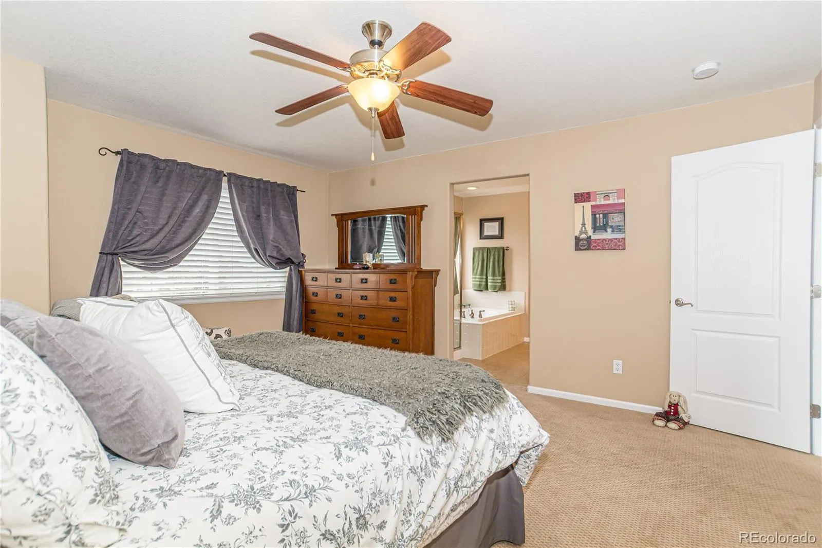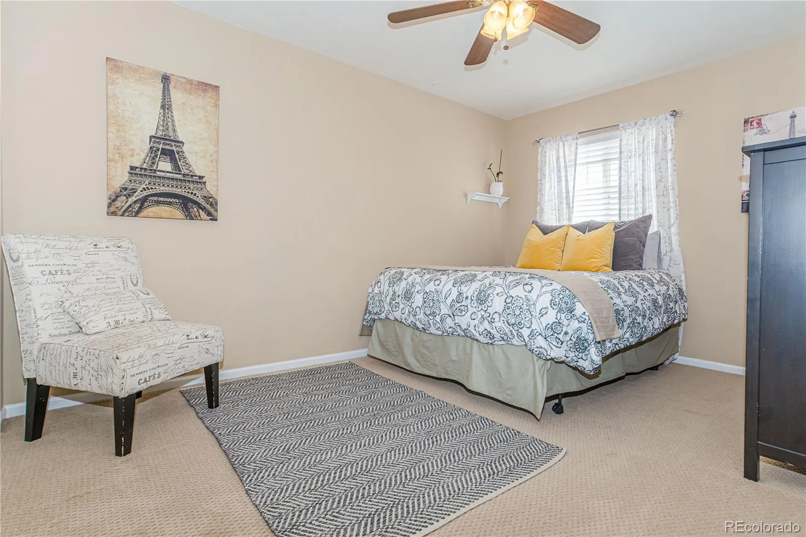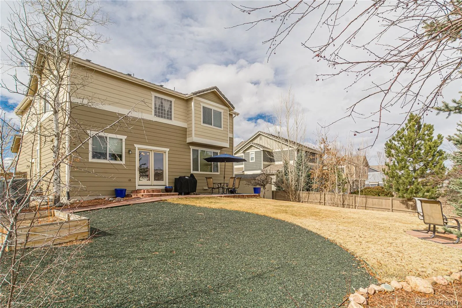 Welcome to this Elegant two-story home nestled on a quiet cul-de-sac in Castlewood Ranch! This refined 4 bed, 4 bath residence features vaulted ceilings, designer paint, newer carpet and wood flooring, and a seamless blend of formal and casual living spaces. The gourmet kitchen boasts 42″ cherry cabinets, granite countertops, travertine subway tile backsplash, and a built-in desk, opening to a warm and inviting family room with a beautiful gas fireplace. The upper level includes a spacious primary suite, with a luxurious five-peice bathroom featuring a large soaking tub and spacious walk-in closet. There are also two additional bedrooms, a full bath and a large versatile loft. The fully finished basement adds exceptional livability with a great bonus space with a custom built-in entertainment center, large bedroom, and full bath. Outdoor living shines with French doors leading to a lush backyard complete with sprinkler and drip system, plus a generous storage shed and fenced gravel side yard for secure storage or a large dog run. Additional highlights include a durable tile roof, west-facing driveway for natural snow melt, and built-in garage cabinetry. Ideally located within walking distance to Flagstone Elementary and Mesa Middle School, with easy access to parks, trails, shopping, dining, and I-25.