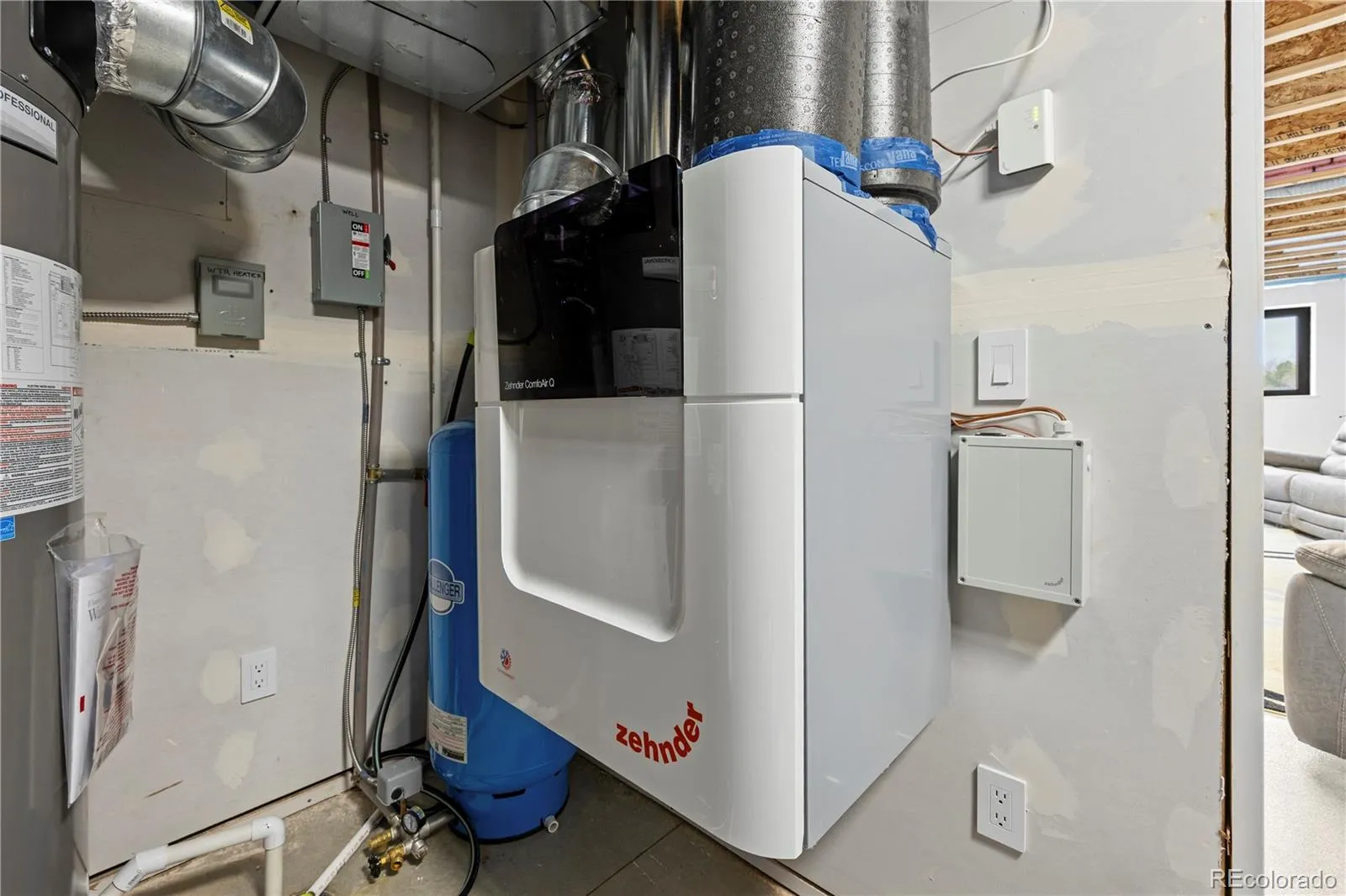 Welcome to a modern Colorado homestead built for the future. Rooted in European-inspired design and passive house principles, this high-performance, all-electric residence was crafted with intention: to thrive in Colorado’s evolving climate while providing a healthier, cleaner, and dramatically more efficient way to live. Sunlight floods the single-level interior, where 3 bedrooms and 2 baths are all warmed by radiant in-floor heating powered by a Bosch geothermal heat pump. When Colorado’s weather knocks out power to the neighbors, you may not even know it. A ground-mounted solar array, paired with battery storage and a smart inverter, allows the home to keep running smoothly even during local power outages. Everyday essentials continue without interruption… lights, cooling, and heating all carry on seamlessly.