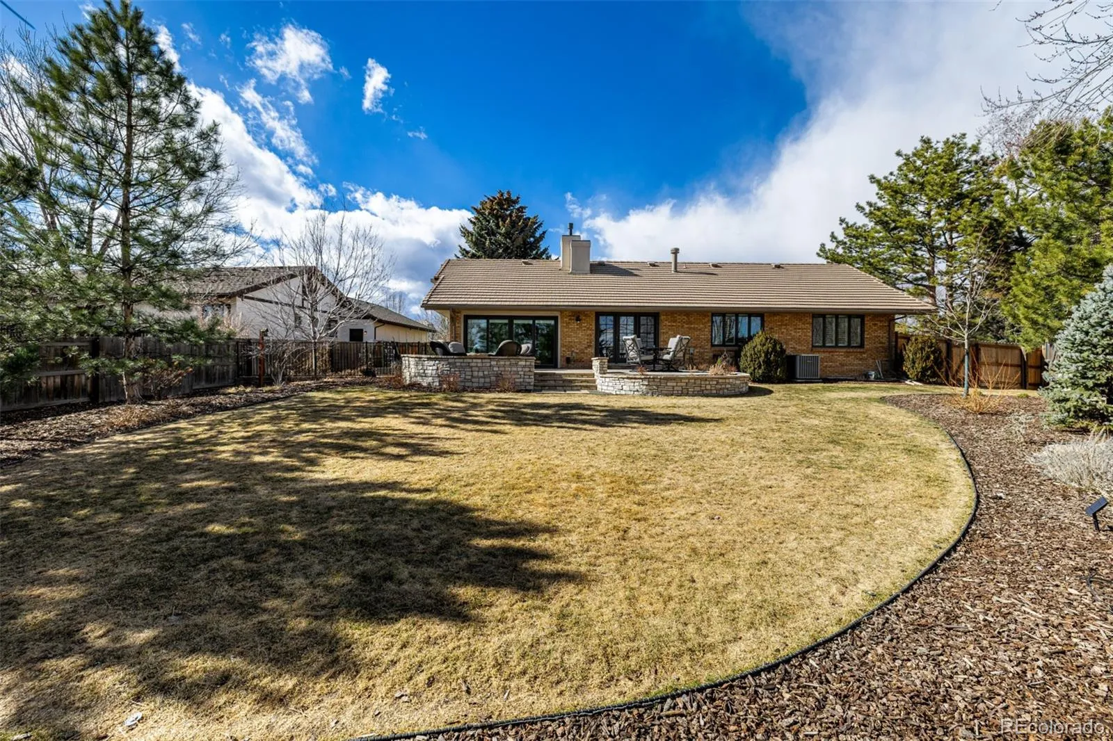 Discover unparalleled luxury and expansive living in this fabulous 5-bedroom, 4-bathroom ranch home. Perfectly situated on a generous nearly half-acre lot in the prestigious West Wood Estates community complete with a neighborhood playground this property blends elegance with modern comfort. The home’s curb appeal is enhanced by new Pella windows and custom plantation shutters throughout. Step inside the grand main level, featuring an impressive entrance that opens to a huge great room with soaring vaulted ceilings. The focal point of this space is one of two thermostatically controlled gas log fireplaces, allowing the homeowner to set the perfect temperature with ease. The exquisite, newly remodeled kitchen is a chef’s dream, boasting a distinctive barrel ceiling, a large island, and Wolf double ovens alongside a gas range, wine cooler, and pantry. The spectacular primary suite serves as a private retreat, featuring a newly remodeled 3/4 primary bath and a custom walk-in closet. Adding to the luxury is a spacious 12′ x 14′ enclosed Sun Room adjacent to the suite. The main level is completed by two secondary bedrooms separated by a full, newly remodeled bath, and a main-floor laundry room organized with a utility sink and radiant in-floor heating. Modern mechanical updates ensure year-round comfort and efficiency: a new furnace and AC, a whole home humidifier, and a tankless water heater. Downstairs, the finished basement provides flexible living space with two bedrooms, a family room, an office/study, a 3/4 bathroom, and ample storage. The exterior showcases a professionally landscaped, fenced lot with a full front and rear sprinkler system, which was completely redone in 2025. Outdoor entertaining is effortless with a covered front patio, a charming courtyard, and a rear patio. A large, attached 3-car garage offers extensive space for vehicles and storage.