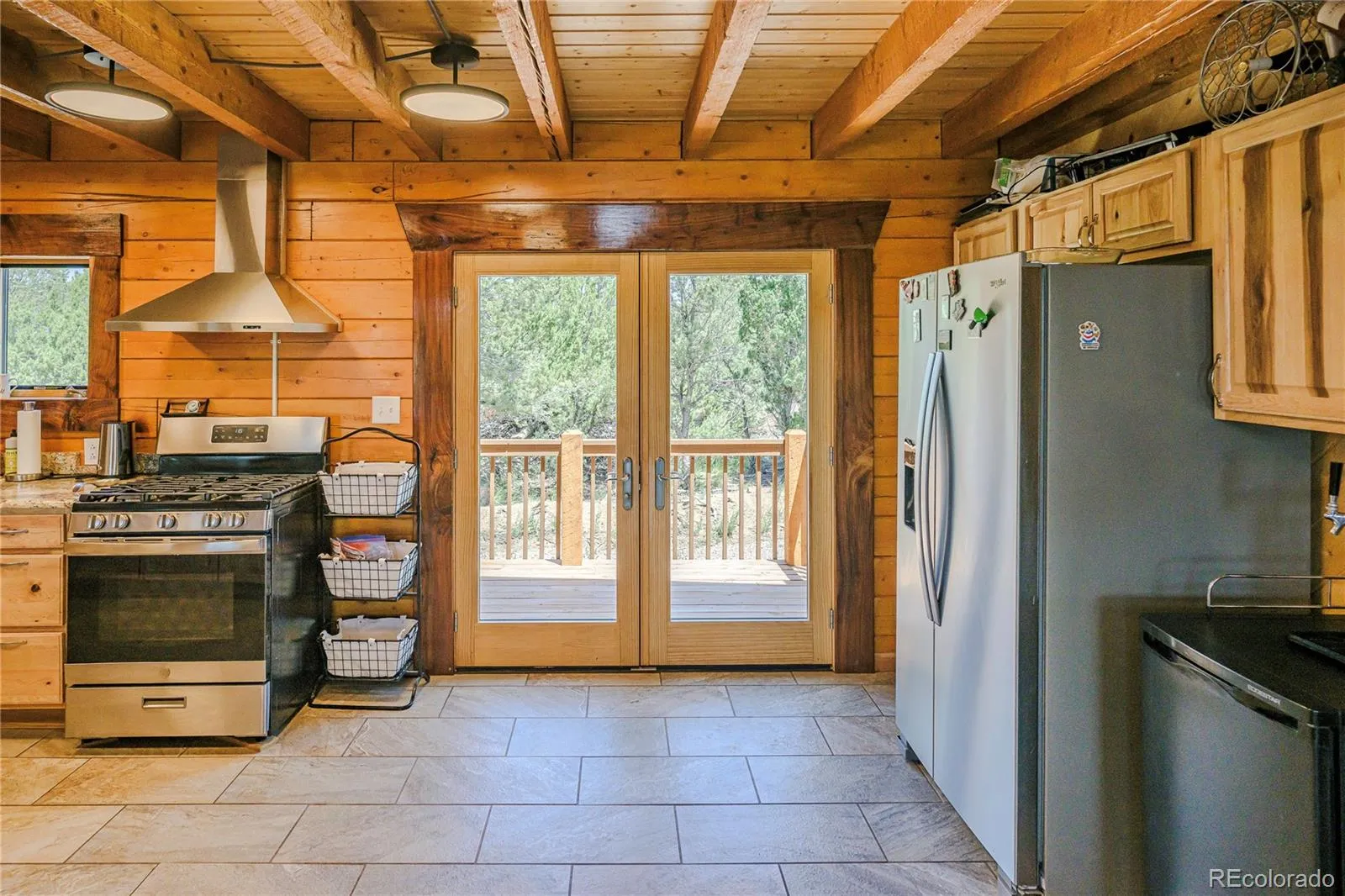 Escape to 35 serene acres with sweeping views of the Spanish Peaks and surrounding mountains. This custom 2 bed, 2 bath log home offers gently rolling meadows, scattered trees, and expansive windows that capture the scenery from nearly every room. Interior highlights include walnut trim, hickory cabinets, a durable metal roof, and a full unfinished walkout basement with a built-in walk-in safe. The property features a fenced garden with water spigot, dog kennel, and three included shipping containers (one 40′ and two 20′). RV guests enjoy dedicated septic, water, and power hookups. The well is equipped with a premium three-stage filtration system valued around $100K. Select bedroom furniture and additional furnishings are negotiable, making this private mountain haven ready for its next chapter.