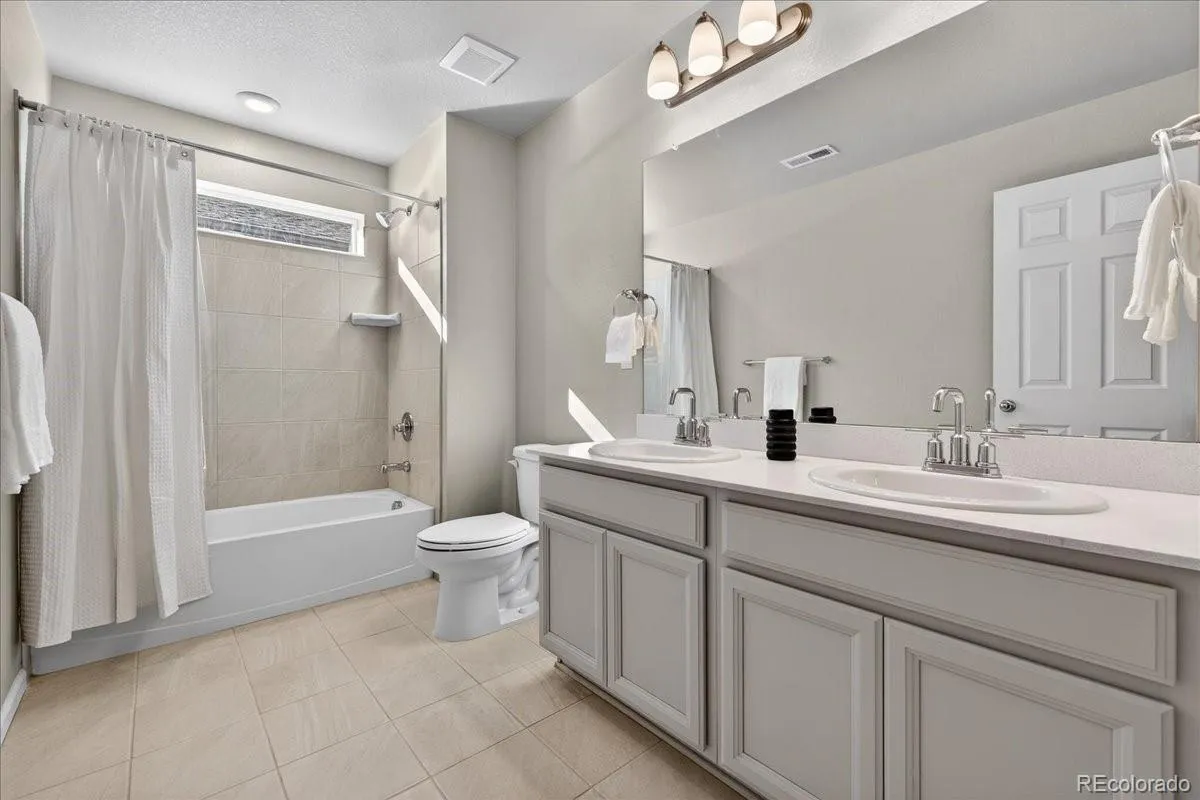 Installation includes grading to create approximately 670 sq ft of lawn to enhance lifestyle and long-term value. Honey-toned wood floors and a gas fireplace with stone surround anchor the living area, while large windows fill the home with natural light. The main level includes a private bedroom and full bath plus a separate flex room currently staged as an office, ideal for guests, remote work, or multigenerational living. Upstairs are three additional bedrooms, a versatile loft, and a generously sized laundry room. The spacious primary suite features a ¾ ensuite bath with walk-in shower, private water closet, and large walk-in closet. Two secondary bedrooms share a full bath. The unfinished basement offers abundant storage, future expansion potential, and plumbing stubbed for a future bath. Just minutes to Historic Downtown Castle Rock, trails, shopping, dining, community pools, and convenient I-25 access.