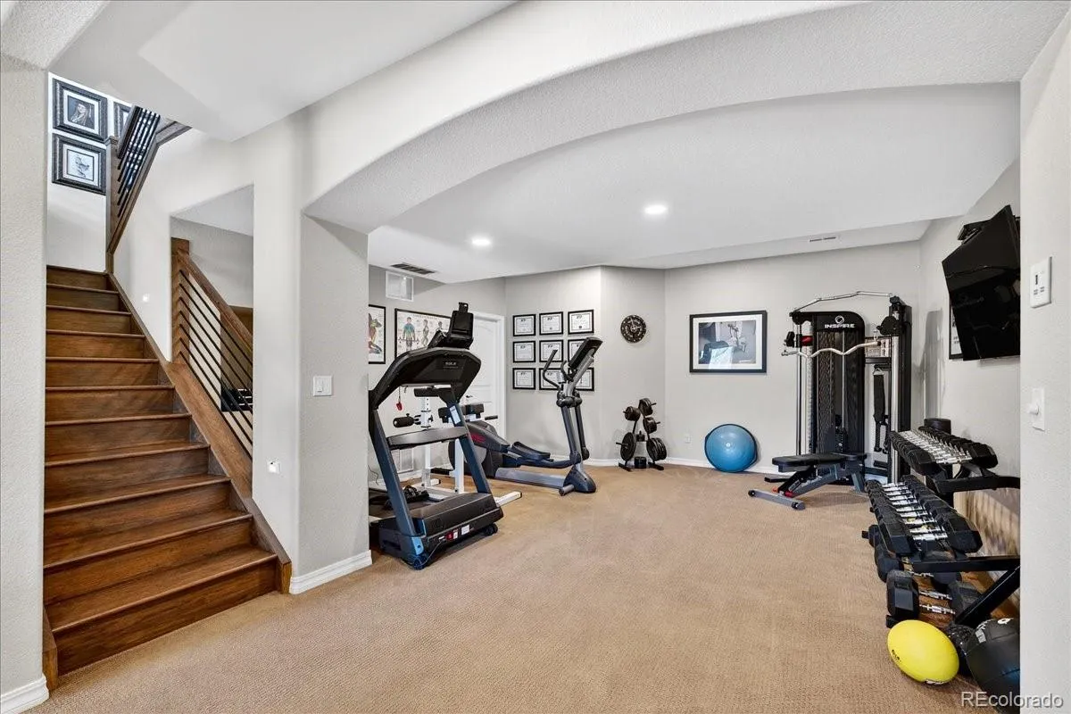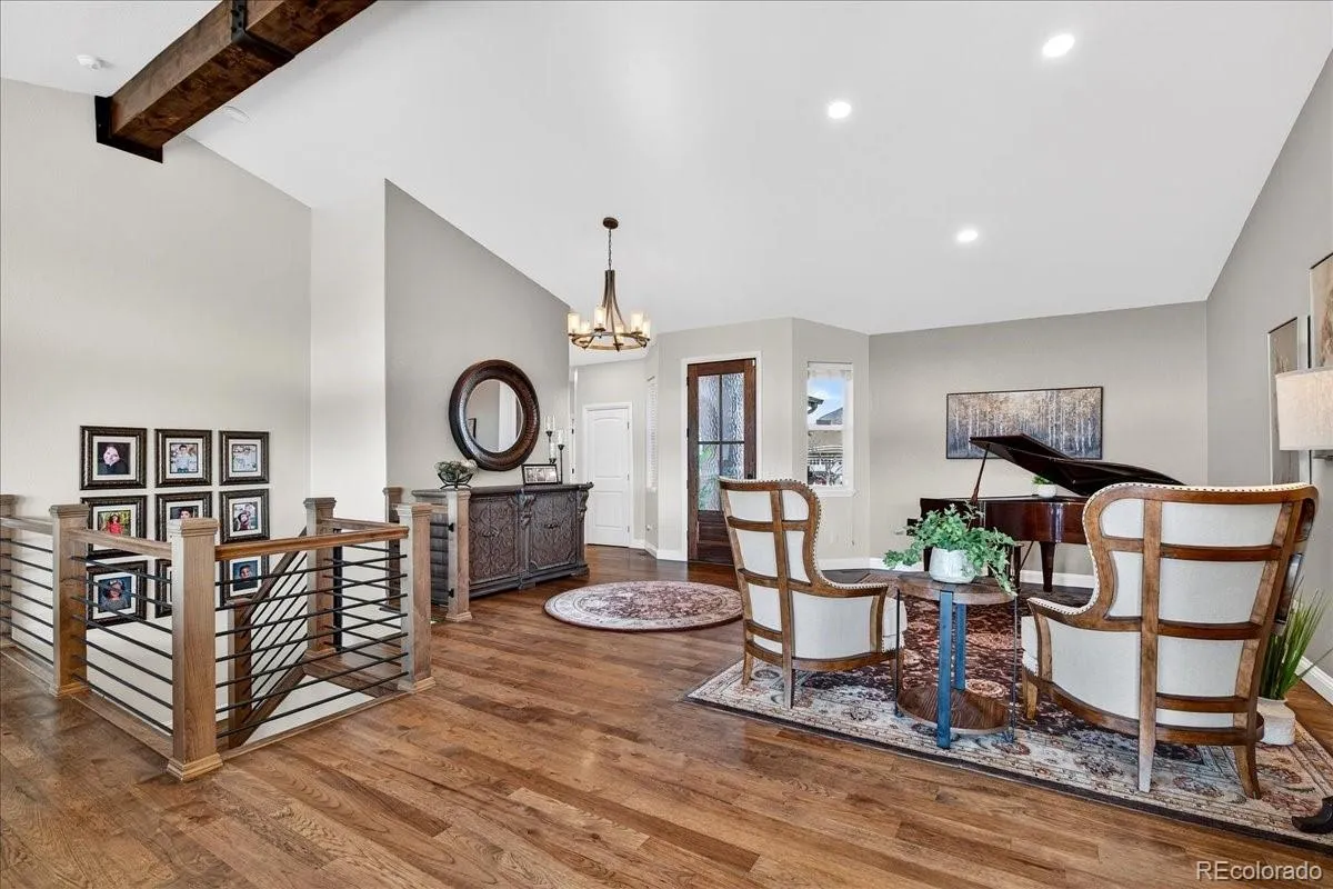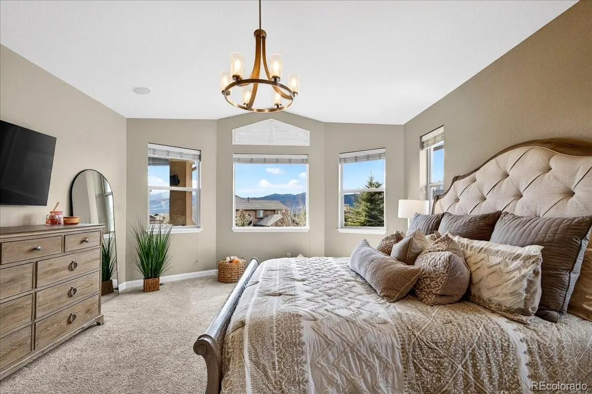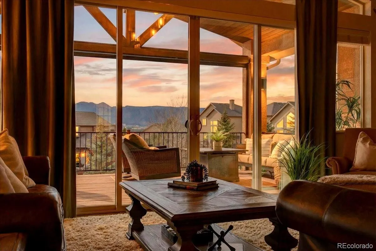 Perched on a premium ¼-acre lot in one of Colorado Springs’ most exclusive golf course communities, this exceptional semi-custom home offers breathtaking views of Pikes Peak and the Front Range along with luxury upgrades at every turn. Built in 2014 and ex,tensively remodeled since 2021, the home showcases premium Hickory hardwood floors on the main level and staircase, a stunning great room with beamed ceiling a new stone fireplace feature wall and custom cabinetry, and a fully reimagined chef’s kitchen by Plush Cabinets featuring Quartzite countertops, a 48” paneled SubZero refrigerator/freezer, Wolf 36” commercial 6-burner range, and WiFi-enabled Wolf double ovens. The main level also boasts high-end new carpet, updated light fixtures, a remodeled hall bath and powder bath with Quartzite countertops, a beautifully redesigned laundry room and mudroom with custom cabinetry, and expanded primary closets with Closet Factory organizers. Cherry cabinetry enhances the primary and lower-level baths, and the entire interior was repainted in 2021. Designed for seamless indoor-outdoor living, the oversized upper deck includes a natural gas hookup with grill included and an electric solar shade with automatic wind sensor (2023), while the walk-out lower level features a flagstone patio with gas firepit and wiring for a future hot tub. Additional highlights include two gas fireplaces, two 50-gallon water heaters, a new furnace (2021) with AprilAir humidifier, whole-house music system including the deck and patio, surround sound wiring with speakers and subwoofer, monitored alarm system, 6-inch exterior walls with blown-in insulation, switched soffit outlets for holiday lighting, fully drywalled garage with two extra refrigerators, new washer and dryer (2025), and freshly painted exterior trim, soffits, and gutters (2024), huge storage area. This is refined Colorado living at its finest—luxury, efficiency, and unforgettable mountain views in a premier golf course setting.