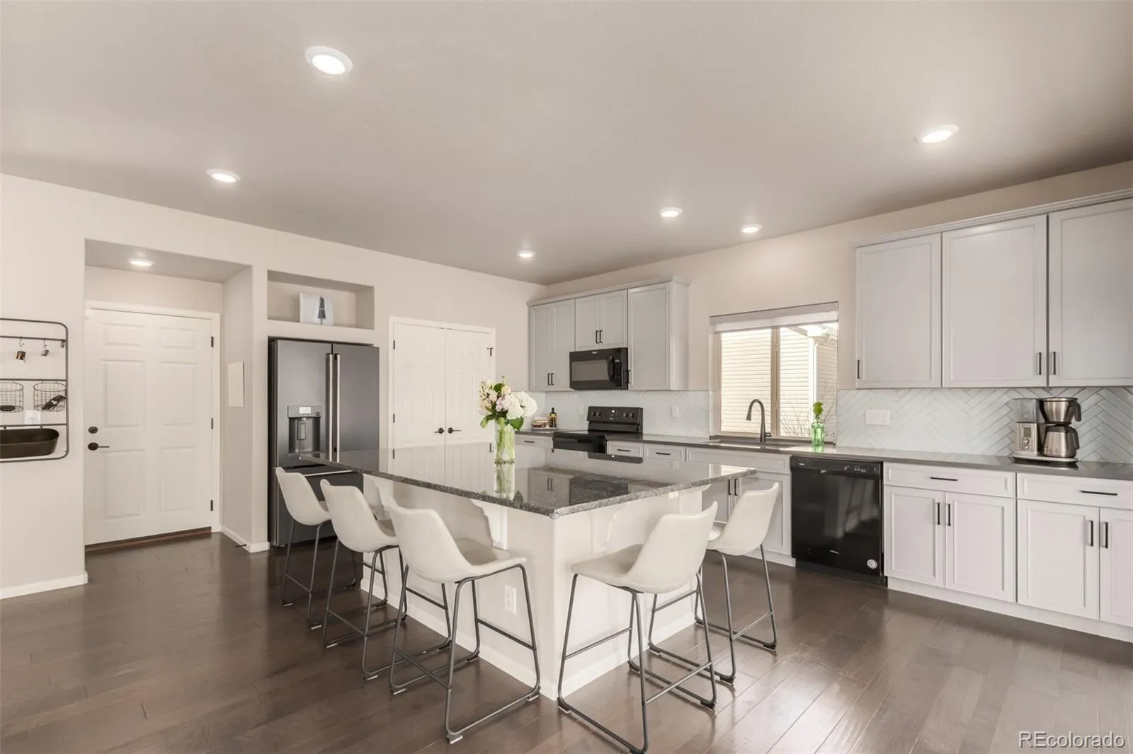 Skip the wait for new construction and move right into this beautifully finished home by Oakwood Homes. Featuring 4 bedrooms, 3.5 bathrooms, a finished basement and a 3-car garage, this home is truly move-in ready and thoughtfully designed for the way you live! Whether you’re working from home, entertaining friends, or simply relaxing at the end of the day, this home is functional in all aspects. The bright, open floor plan offers a welcoming great room with fireplace, spacious dining area, and a modern kitchen that blends style and function. Enjoy a large island with quartz countertops, abundant natural light, high end finishes and generous pantry space—perfect for everyday meals or hosting gatherings. Upstairs features your spacious owners’ suite with spa style en-suite bathroom, 2 additional bedrooms, guest bathroom a versatile loft that provides the perfect setup for a media area, playroom or office. The finished basement adds even more versatility with additional living space, a bedroom, and a full bath—ideal for guests or multi-generational living. Enjoy entreating in your back yard oasis with a covered patio and professionally landscaped yard. Residents enjoy access to the award-winning Reunion Recreation Center, featuring a fitness center, outdoor pool, and community events year-round. With miles of trails, parks, and convenient access to both downtown Denver and DIA, Reunion combines suburban comfort with easy city connectivity. Hurry and make this home yours today!
