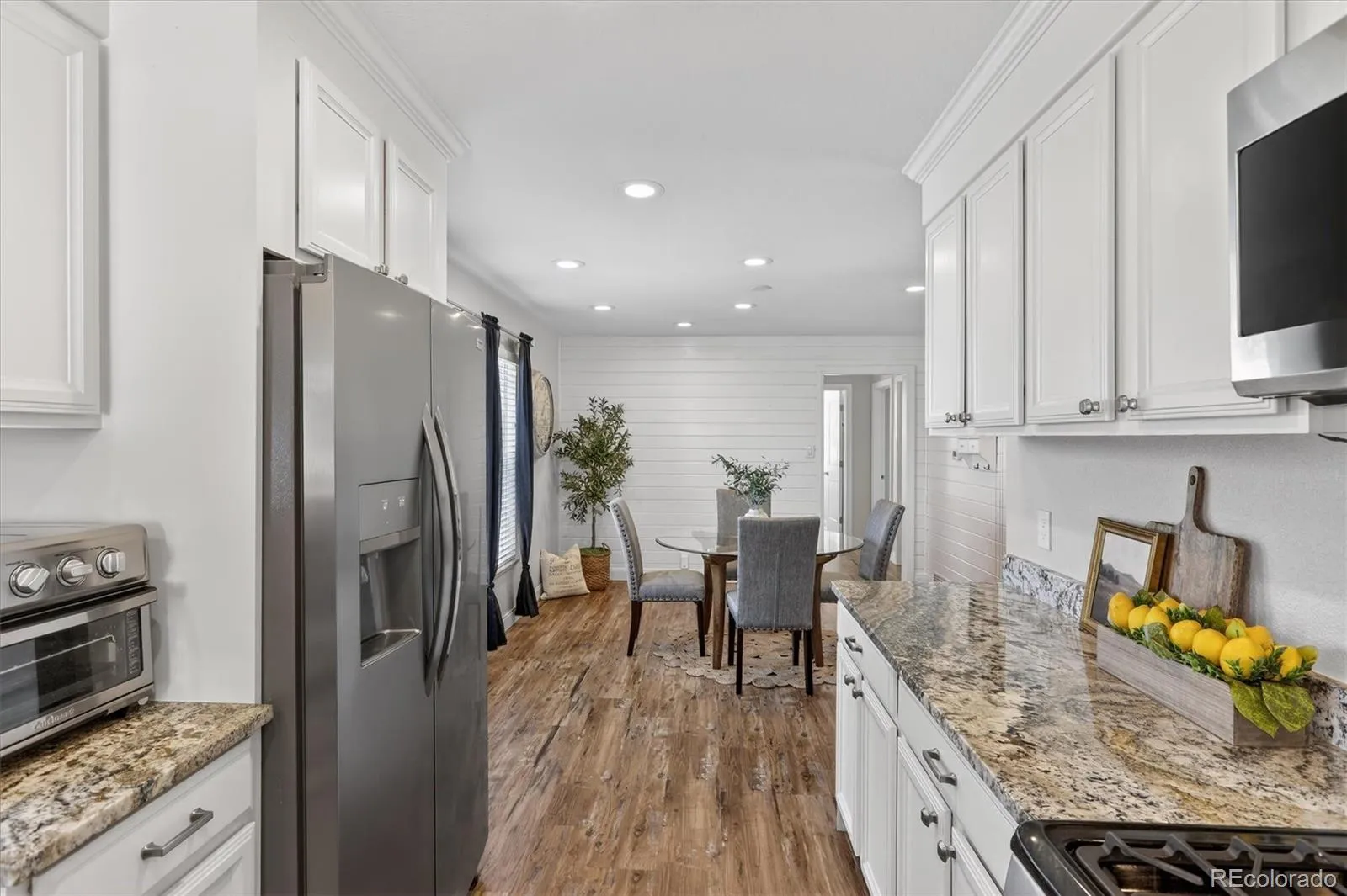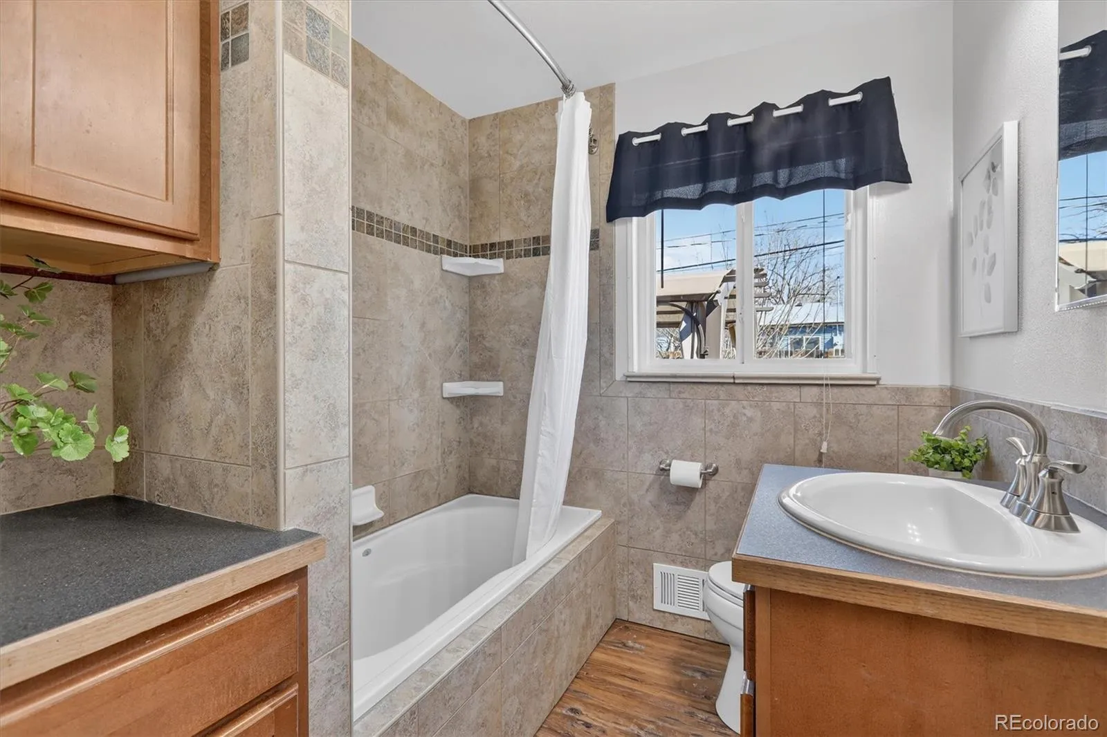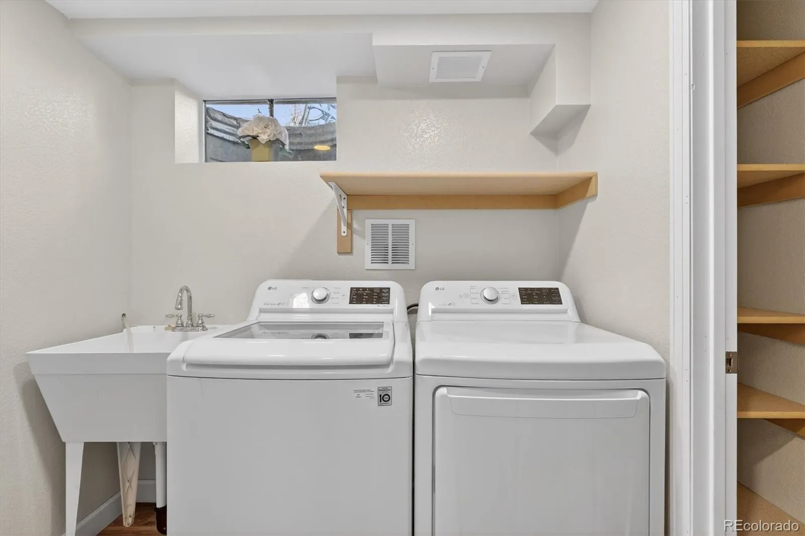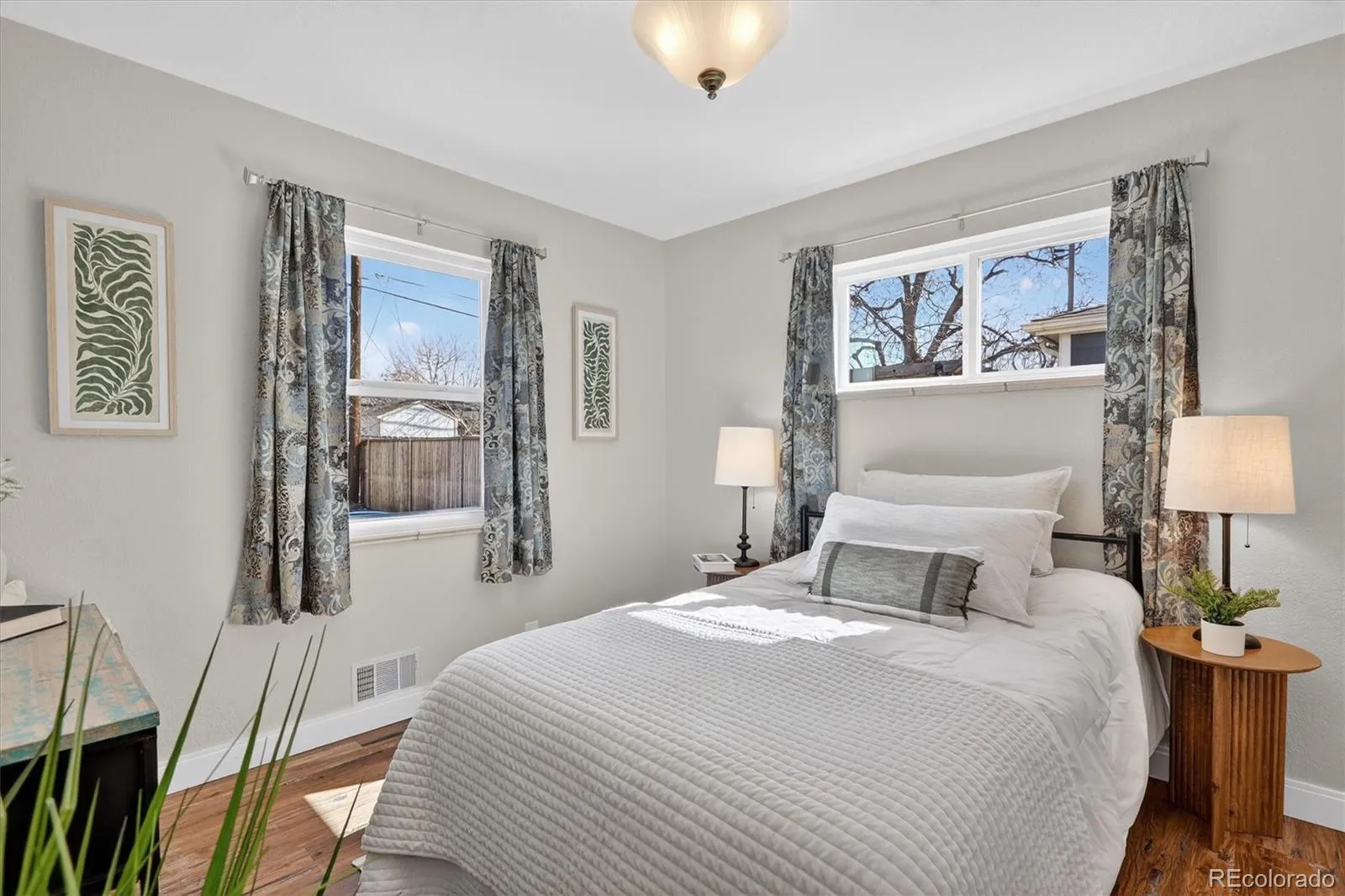 Light, bright, and beautifully updated, this home in the highly sought-after Virginia Village neighborhood blends modern style with timeless warmth—cherished by the same owners for over 30 years! The welcoming main level features three comfortable bedrooms and a full bath, along with a light-filled living room highlighted by a large picture window that fills the space with natural light. The updated kitchen is both stylish and functional, complete with granite countertops, stainless steel appliances, a gas range, and a generous dining area perfect for everyday living and entertaining. The finished basement expands the home’s versatility with a spacious great room, a fourth bedroom featuring a large egress window, and a newer ¾ bath—creating an ideal retreat for guests, work, or recreation. A dedicated laundry room with utility sink and included washer and dryer adds everyday convenience. Step outside to enjoy a flat, usable backyard designed for relaxation and enjoyment, featuring a patio, pergola, garden boxes, a large electrified storage shed, and an expanded driveway with double gates providing RV parking and off-street parking for several vehicles. Solar is already installed and ready for the new owner to take over, offering energy efficiency and long-term savings. With multiple off-street parking spaces and a prime location just minutes from shopping, dining, and easy access to I-25, this home offers classic appeal, meaningful updates, and the rare opportunity to own a property that has been truly cherished—now ready to welcome its new owners home.