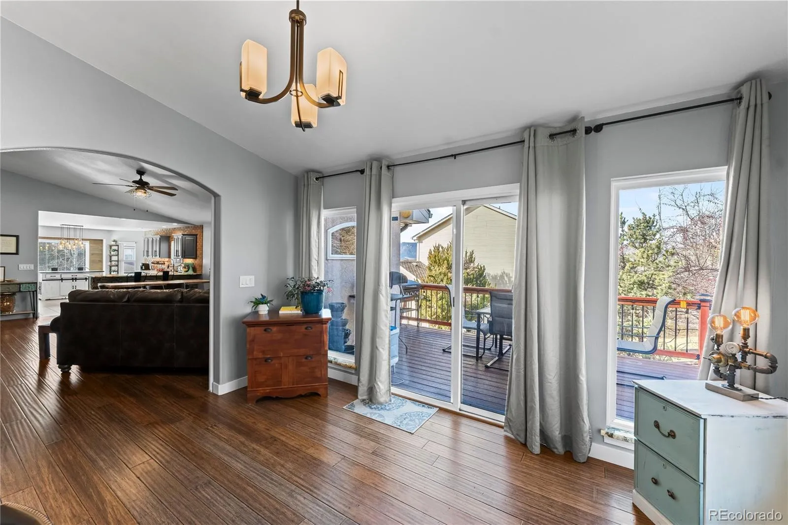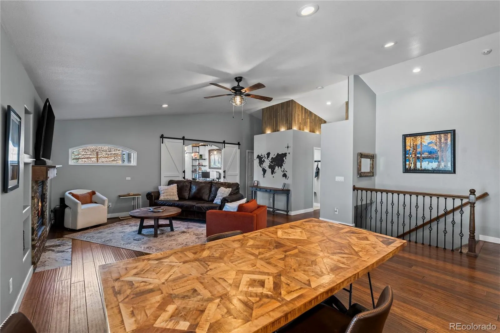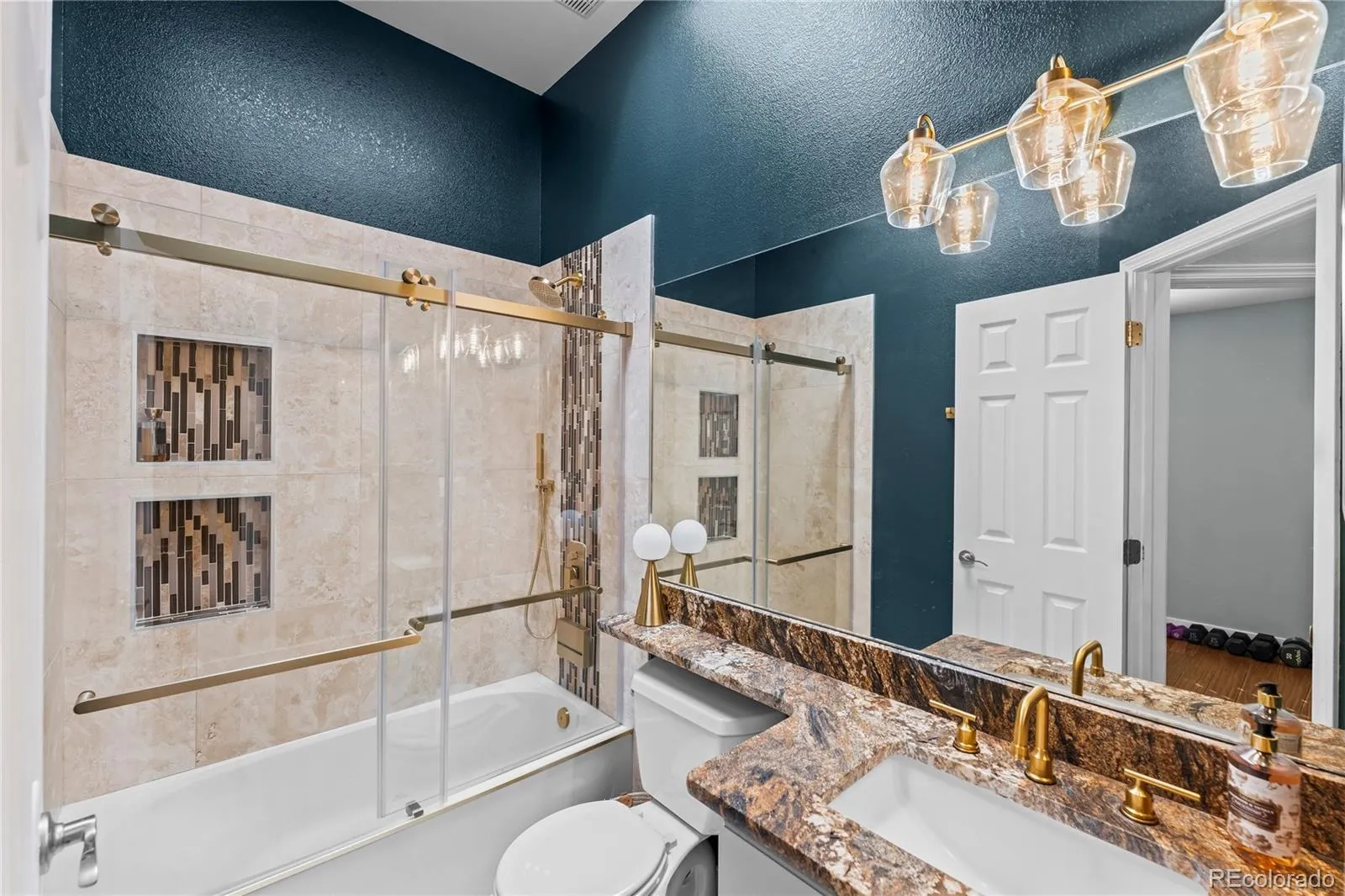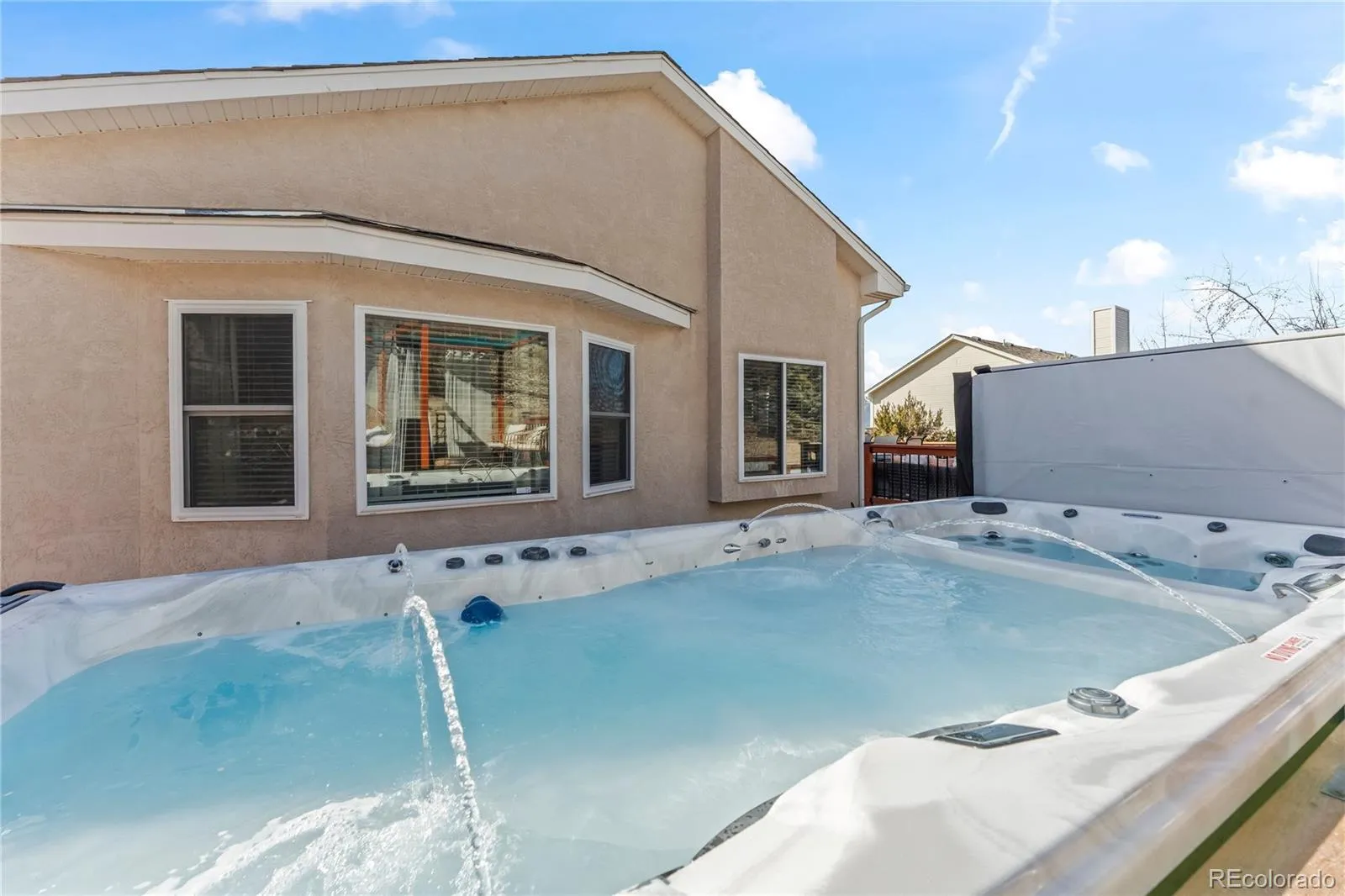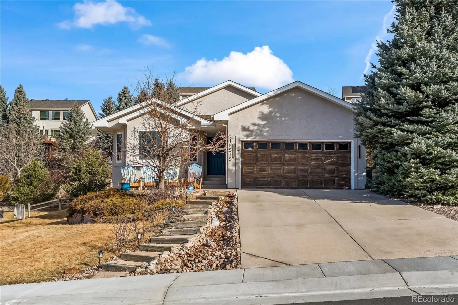 Located in the Northgate area, this property offers breathtaking views of Pikes Peak and the United States Air Force Academy from multiple areas of the home and outdoor living spaces. Since purchase, the property has received numerous upgrades, including a 200-amp electrical panel (2024), an additional new electrical panel (2024), and a Class 4 impact-resistant roof. The main level features engineered hardwood flooring in the living room and office, a gas fireplace in the living room, and built-in bookshelves in the office with walk-out access to deck space. The kitchen includes stainless steel appliances, granite countertops, and a built-in sink glass rinser. The primary suite includes an electric fireplace and a remodeled bathroom with granite countertops, a large walk-in shower with dual showerheads, heated tile flooring, a bidet smart toilet with heated seat, and a custom closet featuring built-in storage, backlit shelving, and cedar flooring. The guest bathroom has been remodeled and includes heated tile flooring, a granite vanity, and updated hardware. The basement level includes new carpet (2025), custom ceiling details, a natural gas fireplace, and a pool table. One guest bedroom features a hidden bookcase door and views of Pikes Peak. The basement also includes a sauna with backlit Himalayan salt accents and two additional bedrooms with large closets. Additional features include:* Heated tile floors * White faux wood blinds throughout * Garage with built-in cabinets, workbench, and basin sink* Two composite decks * Natural gas grill hookup * Raised garden beds* Front yard creek water feature* 19-foot dual-zone swim spa (2024) is negotiable.