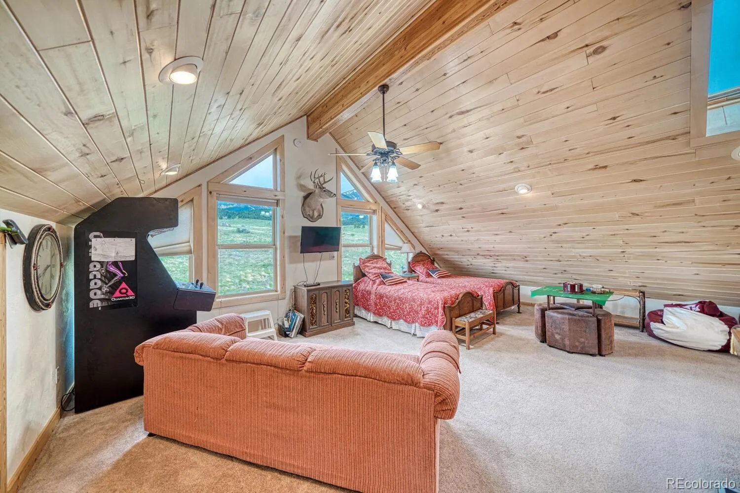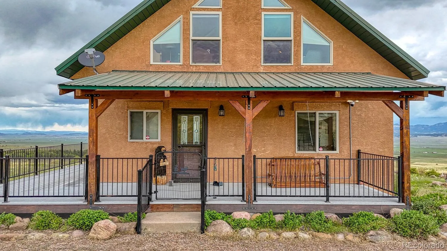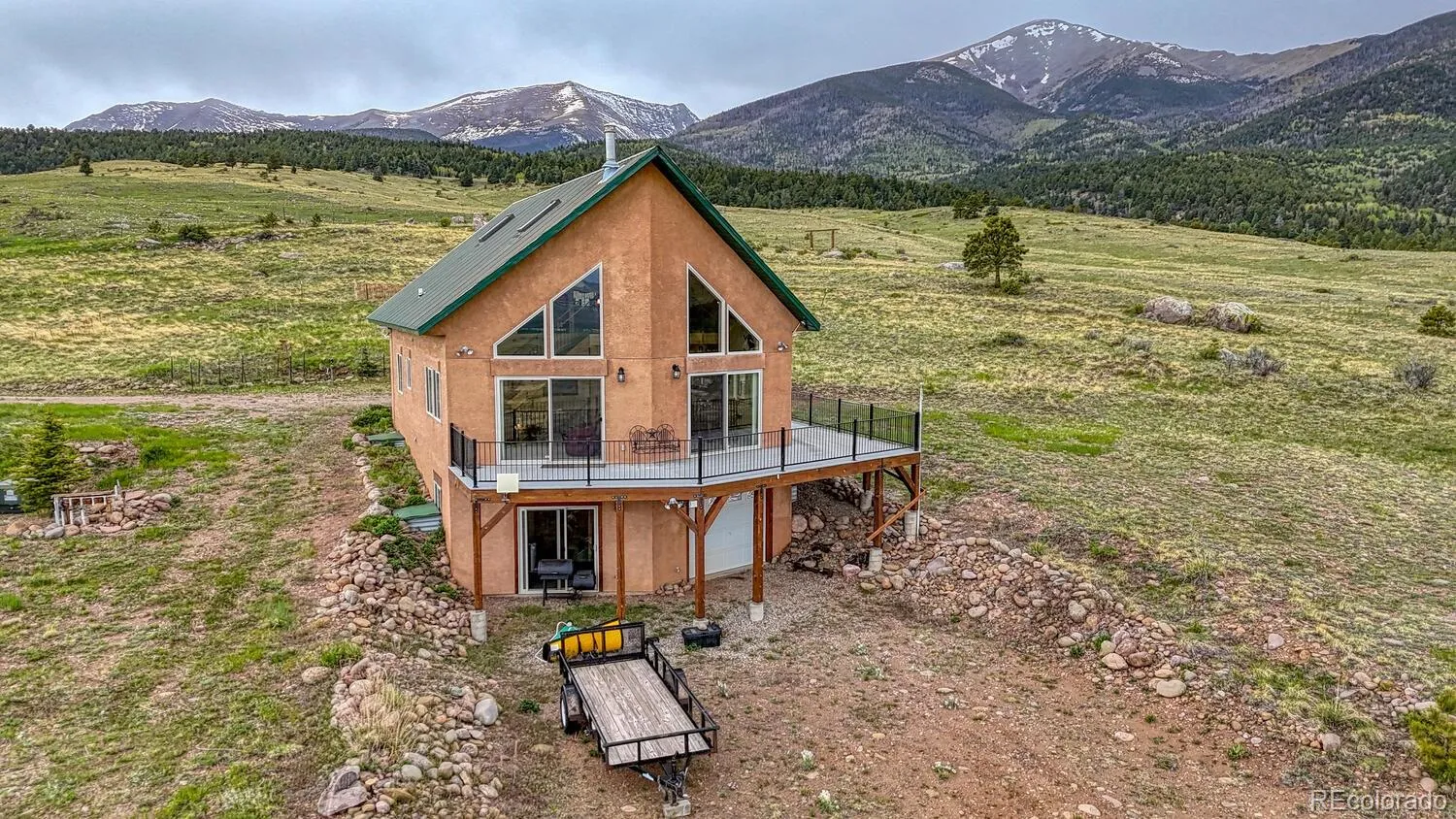 Premium West Side Property with Sweeping Mountain and Valley Views. Located on the desirable west side, this well-crafted home sits at the base of the Sangre de Cristo Mountains and offers panoramic 360-degree views of the valley and beyond. The setting is private, quiet, and truly impressive. Built for both comfort and performance, the home features a highly efficient Steffes heating system and a two-car tandem garage. A large composite deck and covered front porch create seamless outdoor living spaces to enjoy the stunning surroundings.Inside, the open-concept kitchen and living area is flooded with natural light from large windows that perfectly frame the views. The upper-level loft offers a flexible space for a home office or media area. A walkout basement adds additional room and functionality with two bedrooms and a bathroom. This is a rare opportunity to own a well-designed home in a prime location with unmatched views and solid, efficient construction.