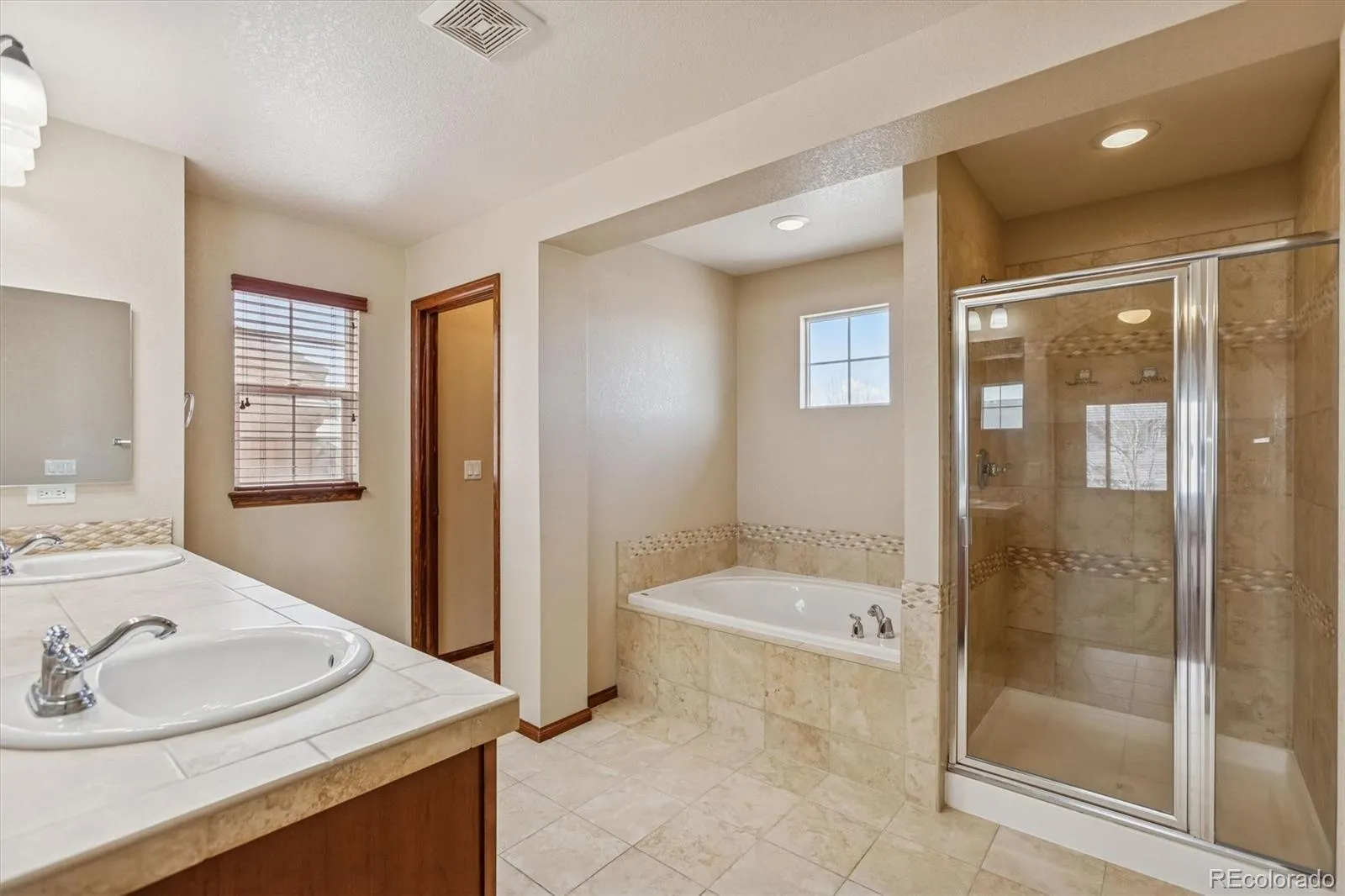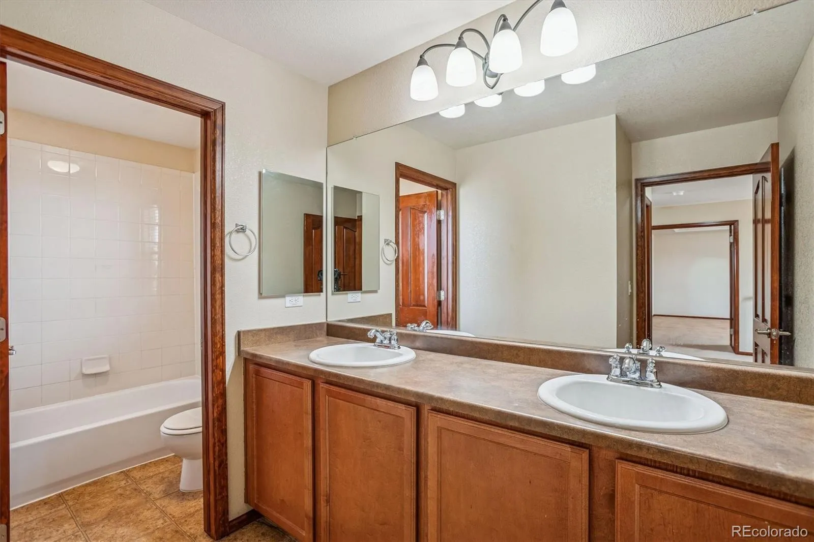 This spacious 5 bedroom, 3 bath home offers approximately 3,646 total square feet of well-designed living space, including a fully finished basement and flexible floor plan perfect for today’s lifestyle. The open main level features soaring 10’ ceilings, abundant natural light, a cozy gas fireplace, and a beautifully appointed kitchen with granite countertops, stainless steel appliances, double ovens, and counter seating that is ideal for entertaining. A main-floor bedroom and bath provide great flexibility for guests or a home office. Upstairs, the generous primary suite includes a walk-in closet and 5-piece bath, along with two generously sized additional bedrooms and a convenient upper-level laundry room. The finished basement expands your options with a large rec room, conforming bedroom, and additional bath — perfect for multigenerational living or extra entertaining space. Enjoy a private backyard patio, mountain views from the front, and access to Reunion’s incredible amenities including a rec center, pool, parks, lakes, and miles of trails. Conveniently located near DIA, E-470, shopping, and dining.