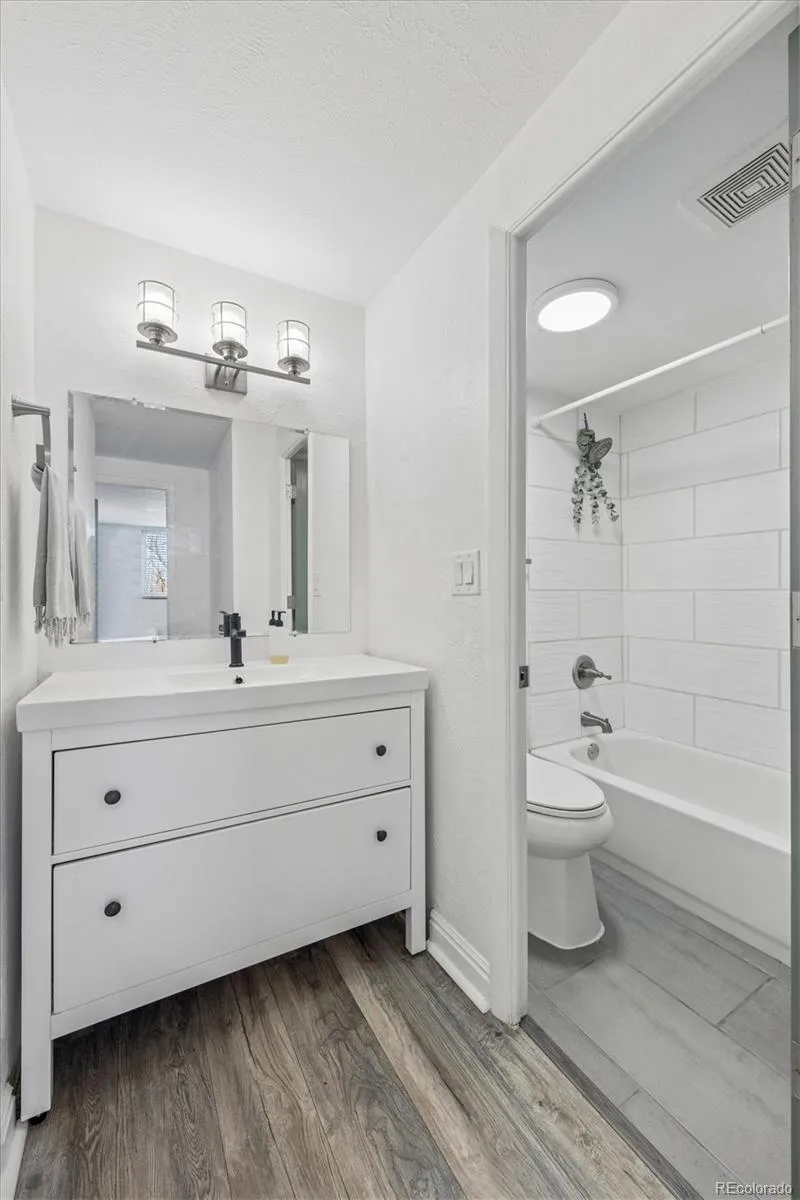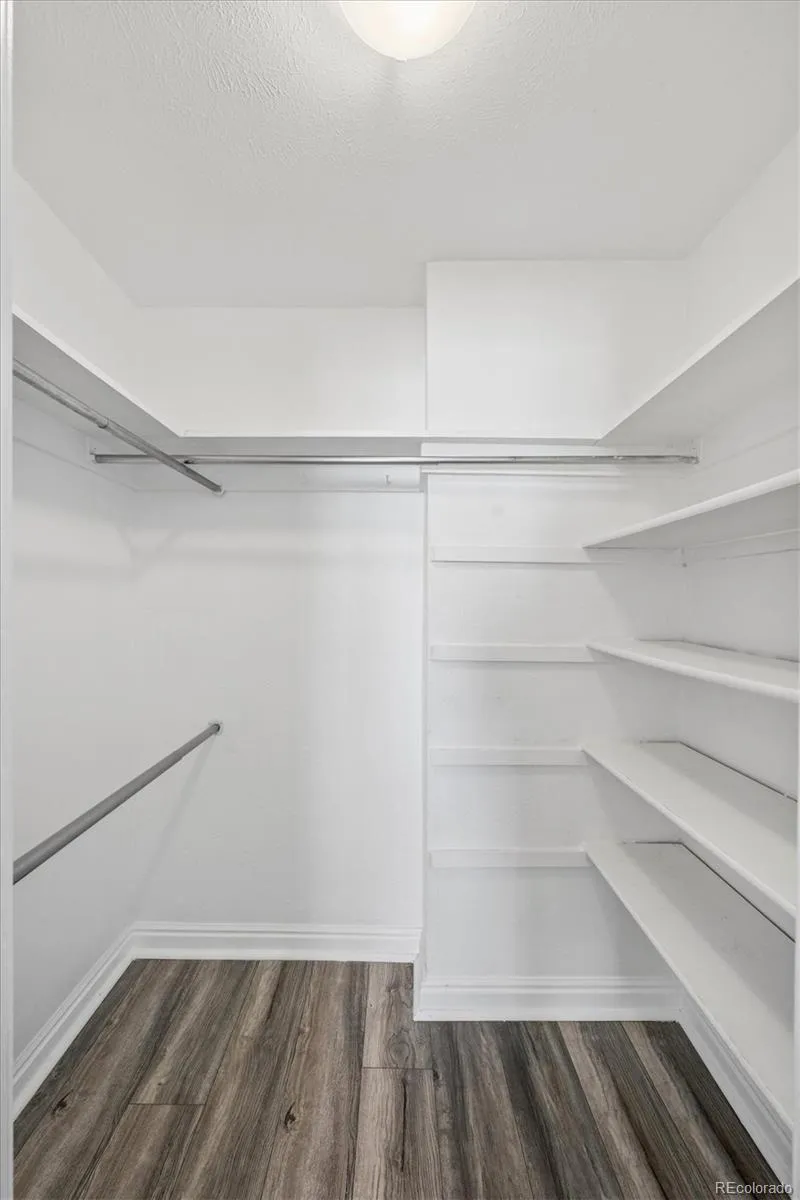 Beautifully updated 5th floor unit with deeded parking spot, orange peel texture walls and ceilings, Luxury vinyl plank flooring throughout, soft close kitchen cabinets, granite counter top with bar seating, tile back splash, stainless appliances, updated sink and faucet, remodeled bath tile, flooring and vanity, accent painted panel doors throughout, updated base board and trim throughout and updated lighting fixtures. The bedroom has a large walk in closet and separate vanity from the bath area. The bedroom illuminates with natural northern light. The building has secure entry lobby, updated windows, workout facility, sauna, laundry facility and storage room with private locker #30. Included in the HOA payment is high speed internet and all utilities with the exception of electricity Close to all that Cap Hill has to offer including Cheeseman Park, grocery shopping and dozens of restaurants, bars and coffee shops all with in a few blocks.