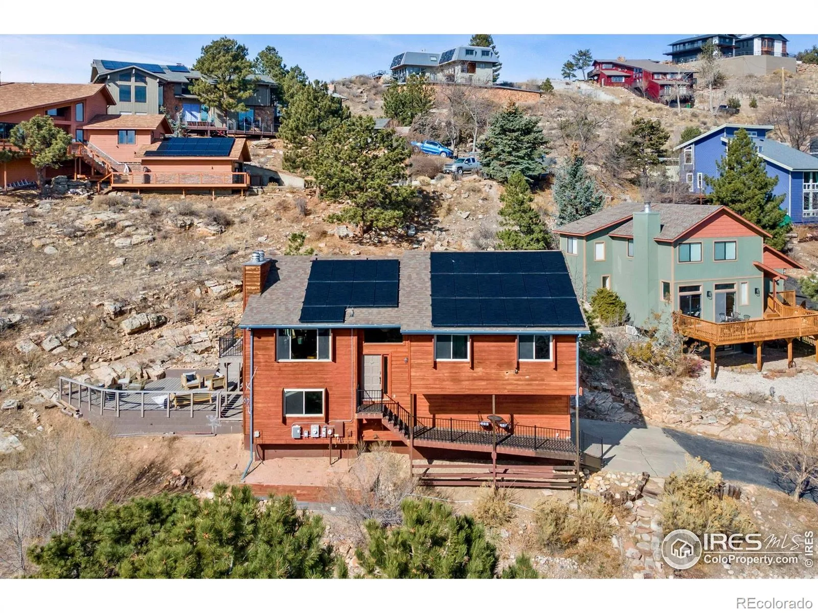 Foothills retreat with sweeping views and thoughtfully updated living spaces at 1601 Cliff Side Drive Loveland. Perfectly positioned among rock outcroppings and mature pines, this private mountain-inspired residence offers expansive decks for outdoor entertaining, quiet morning coffee, and spectacular Colorado sunrises. Inside, warm natural light fills an open, inviting layout. The updated kitchen offers generous prep space, quartz countertops, butcher block mobile island, custom cabinetry pull outs and all appliances included providing seamless flow to indoor-outdoor living areas, ideal for hosting or everyday comfort. Spacious bedrooms with carpet new in 2025 provide peaceful retreats, while flexible living areas support remote work, guests, or hobby space. Multiple tiered decks extend the home into nature-perfect for dining under the stars, wildlife watching, or simply enjoying the foothills serenity. Perennial garden beds have been planted around the decks. Recent improvements include Lennox heat pump with gas furnace back up, 10 kW solar system offsets electrical bills and EV plug in garage provides move-in-ready conveniences. Located just minutes to Loveland amenities, hiking trails, and an easy drive to Fort Collins, Estes Park, and Rocky Mountain National Park, this property offers the rare combination of privacy, views, and accessibility. Experience Colorado foothills living with space to relax, entertain, and recharge. Assumable loan with 4.25% interest rate available to qualifying buyers-inquire with listing Brokers for more information.