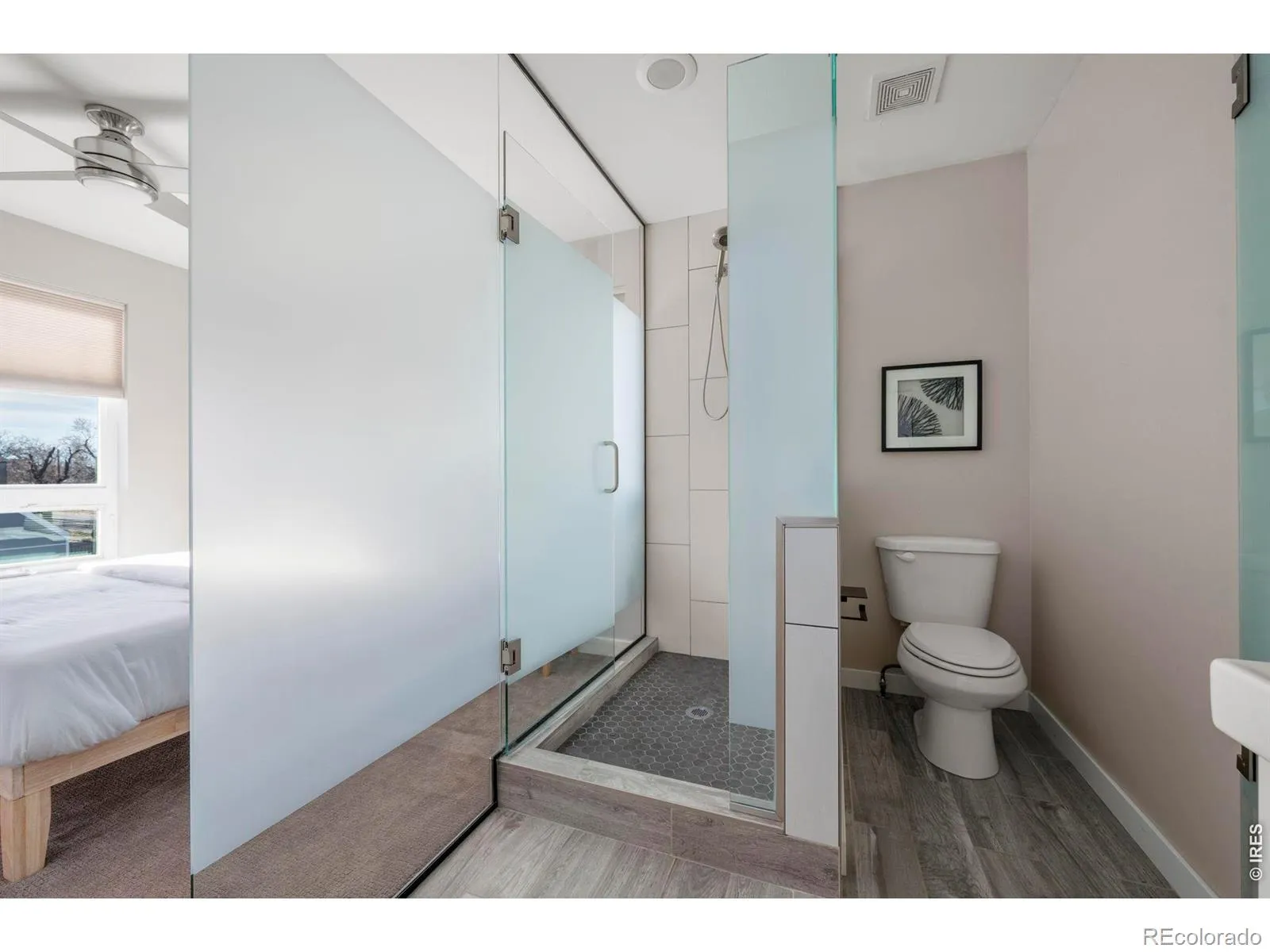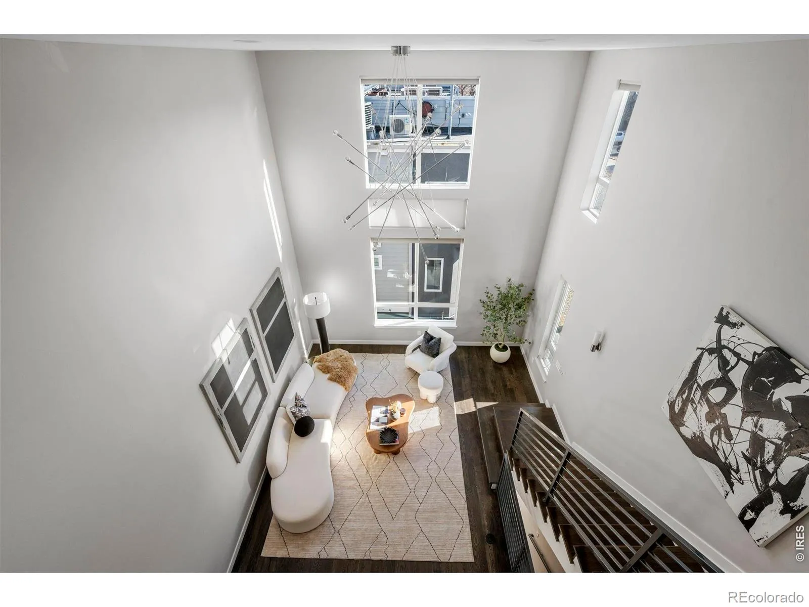 Stunning contemporary end unit townhome in the heart of desirable Sunnyside, showcasing breathtaking city and mountain views. This exceptional residence features a brilliant three-story floorplan with a dramatic main-level great room offering more than 375 square feet of open living space, highlighted by soaring 30-foot ceilings and expansive windows that flood the home with natural light. The ultra-modern chef’s kitchen is designed for both function and style, featuring crisp white shaker cabinetry, quartz countertops, a classic subway tile backsplash, and high-end stainless steel appliances. A spacious breakfast bar overlooks the great room, creating an ideal setting for entertaining and everyday living. The upper level hosts a private primary suite complete with a sleek three-quarter bath and a glass wall for a modern architectural touch. On the entry level, a secondary bedroom and full bath provide flexible space that can easily function as a guest suite, home office, or additional living area. Upscale urban living is evident throughout with premium hardwood and tile flooring, modern lighting, and hand-troweled walls. Additional highlights include a convenient powder bath, tankless water heater and a one-car heated garage with built-in storage and a space-saving laundry closet. Crowning the home is an extraordinary rooftop deck, featuring a built-in projector screen and sweeping city and mountain views, creating the perfect backdrop for relaxing or entertaining. Ideally located in sought-after Sunnyside, directly across from Huckleberry Roasters and just steps from parks, restaurants, and vibrant LoHi. Enjoy easy access to Tennyson Street, downtown Denver, light rail, I-70, and I-25. This is a rare opportunity to own a truly special Sunnyside home.
