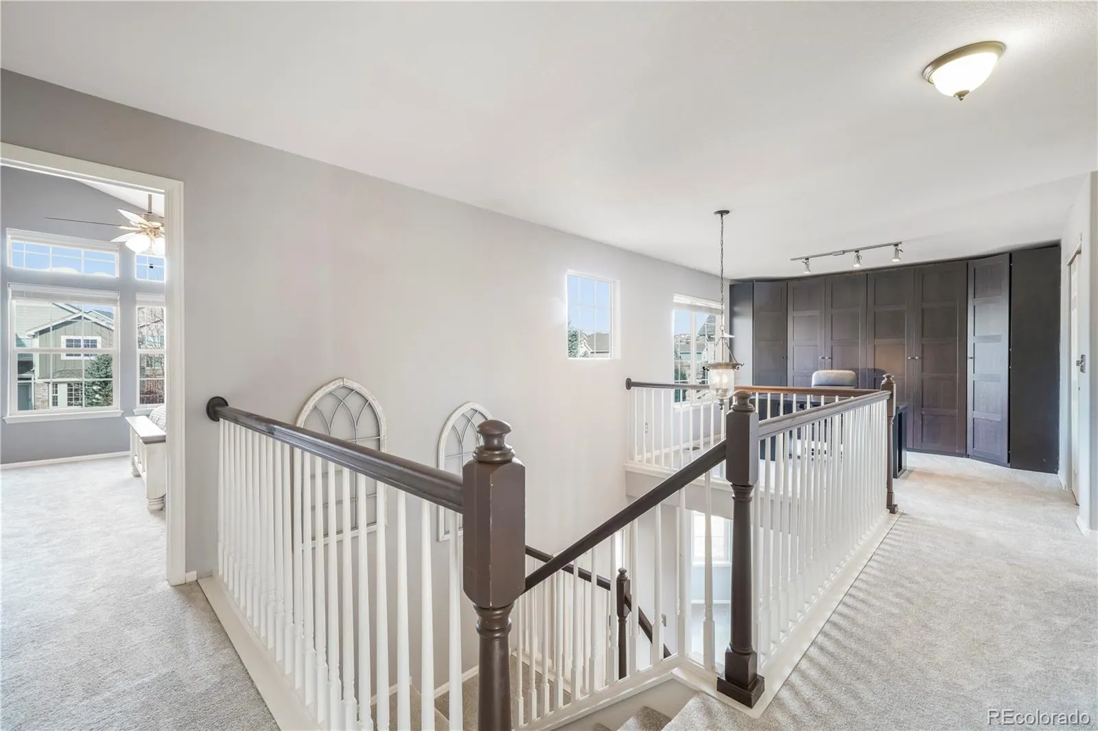 Discover this stunning two-story home in highly desirable Northgate Highlands offering 5 bedrooms, 3.5 baths, and a 2-car garage in an unbeatable location. Vaulted ceilings and rich hardwood floors create an inviting first impression. Just off the entry is a bright formal living room (also perfect as a dining room) filled with natural light and connected to the kitchen. The beautifully appointed kitchen features stainless steel appliances, granite countertops, a large pantry, and a striking wood-top island. A window over the sink captures incredible views while the eat-in dining area walks out to the covered composite deck. The kitchen flows seamlessly into the soaring living room highlighted by a stone-surround gas fireplace with built-in shelving and large windows showcasing scenery from nearly every angle. Upstairs is a versatile loft with built-in cabinetry ideal for an office, study, or additional living space. The spacious primary suite includes a five-piece bath w/ heated flooring and a walk-in closet. Two additional bedrooms share a full bathroom with dual vanities. The finished basement offers two more bedrooms, a ¾ bath, recreation room pre-plumbed for a future wet bar and a large storage room—perfect for guests, hobbies, or multi-generational living. The true showstopper is the backyard. Enjoy panoramic views of the U.S. Air Force Academy, Cheyenne Mountain, and the entire Front Range from the expansive 440 ft.² covered deck complete with fireplace, Mounted TV, included patio furniture, and hot tub. The beautifully landscaped yard is ideal for relaxing or entertaining. Additional features include custom lighting, epoxy garage flooring, new water heater in 2023, new carpet throughout, included hot tub, backyard TV and patio furniture & central A/C. Located within walking distance to all the amazing amenities Northgate has to offer including the amphitheater, Topgolf, restaurants, shopping, and easy I-25 access. Location and views truly say it all.